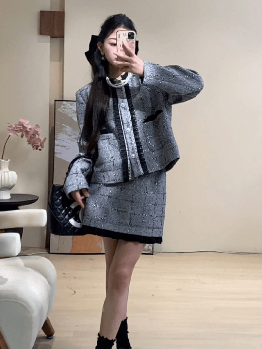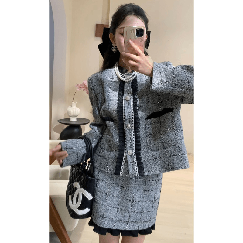 *o-ha-you*【FLKD5095】千金歸來套裝半身裙外套小香風法式優雅兩件式秋季小眾設計感