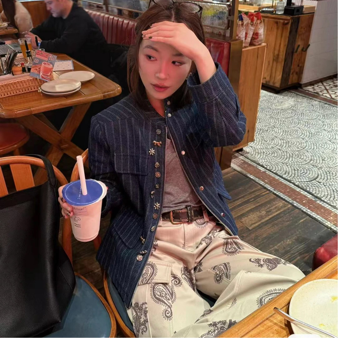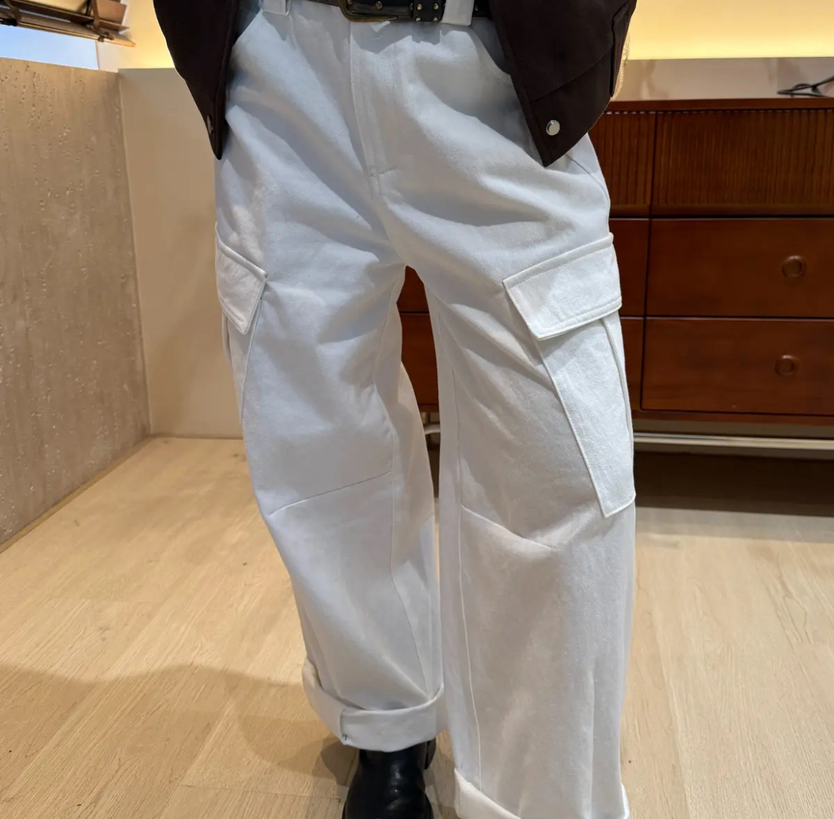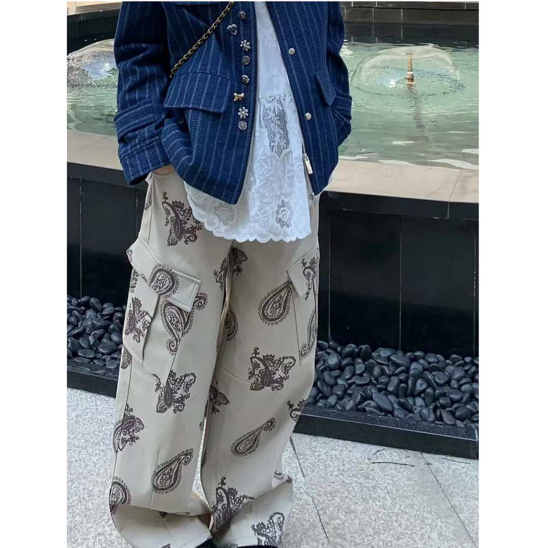 *o-ha-you*【FLKDD2025008】2025春休閒韓版小眾時髦洋氣工裝設計感復古街頭印花直筒闊腿褲長褲-2色