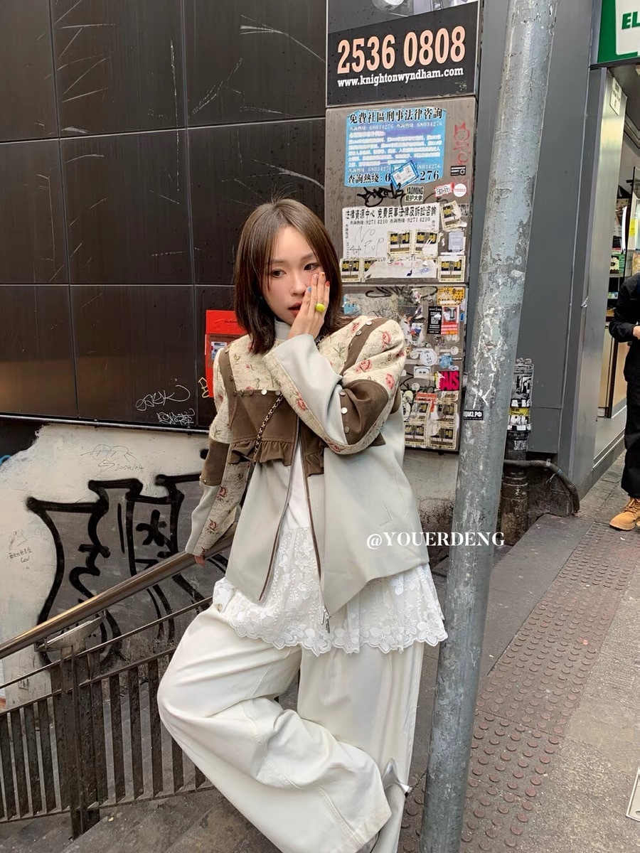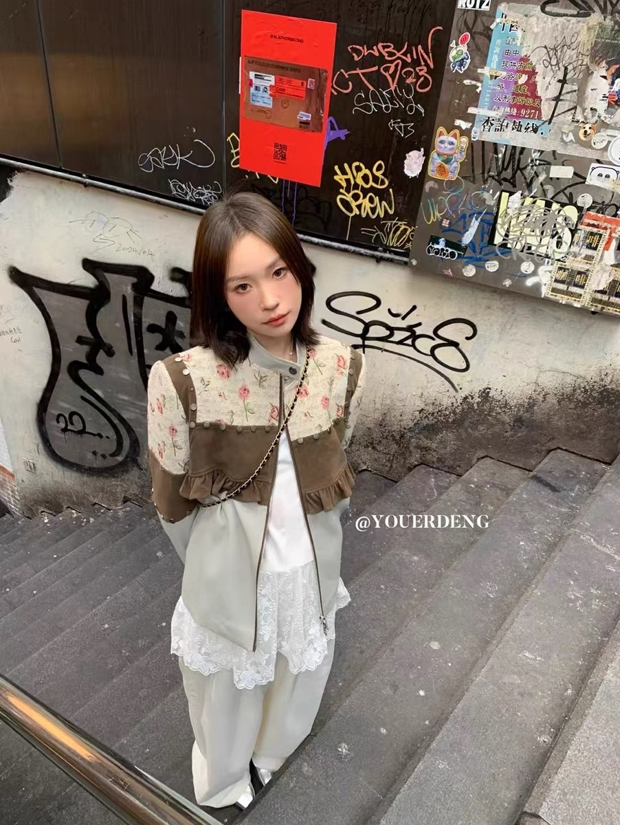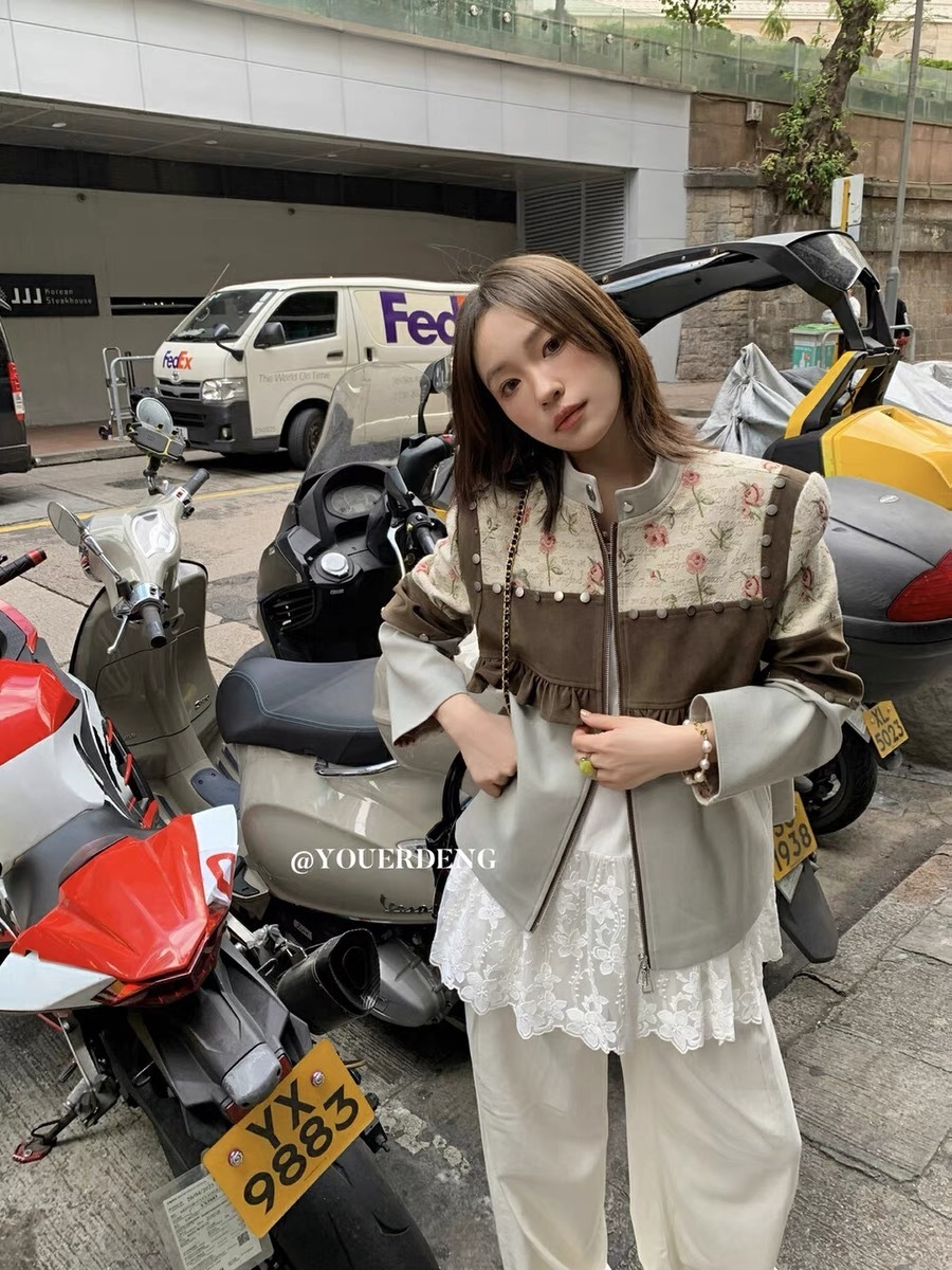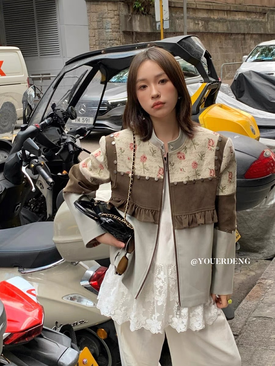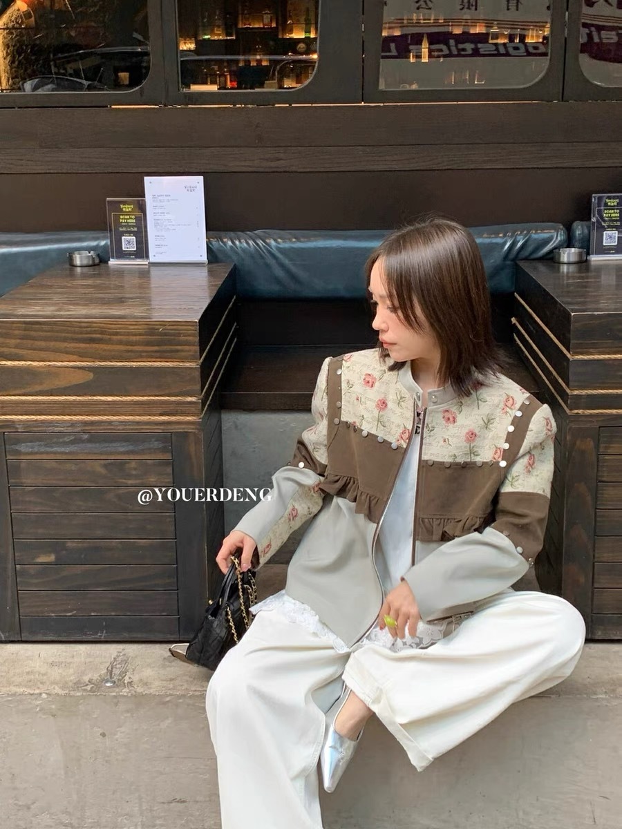 *o-ha-you*【FLKDD2025010】【里約日落外套】2025春季新款復古小眾設計感拉鍊夾克拼接復古拼接韓版寬鬆外套