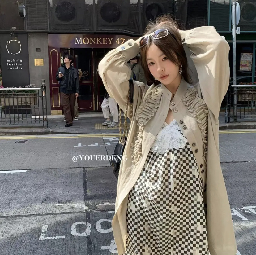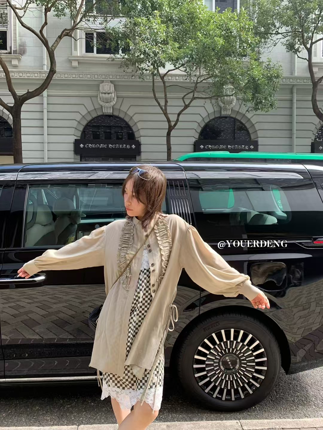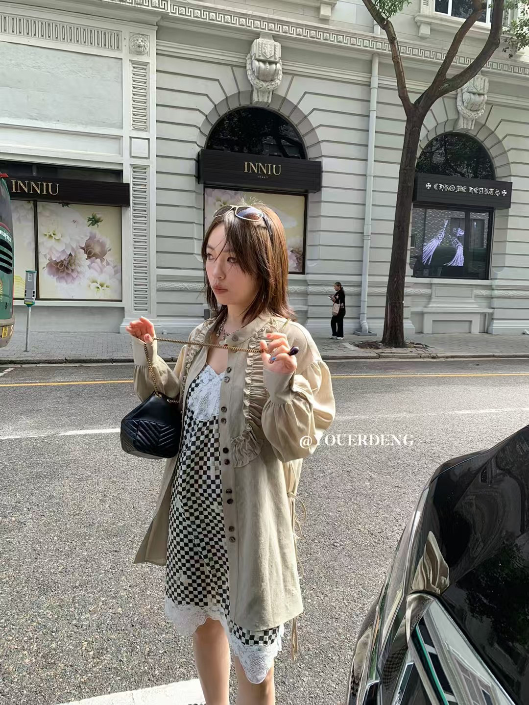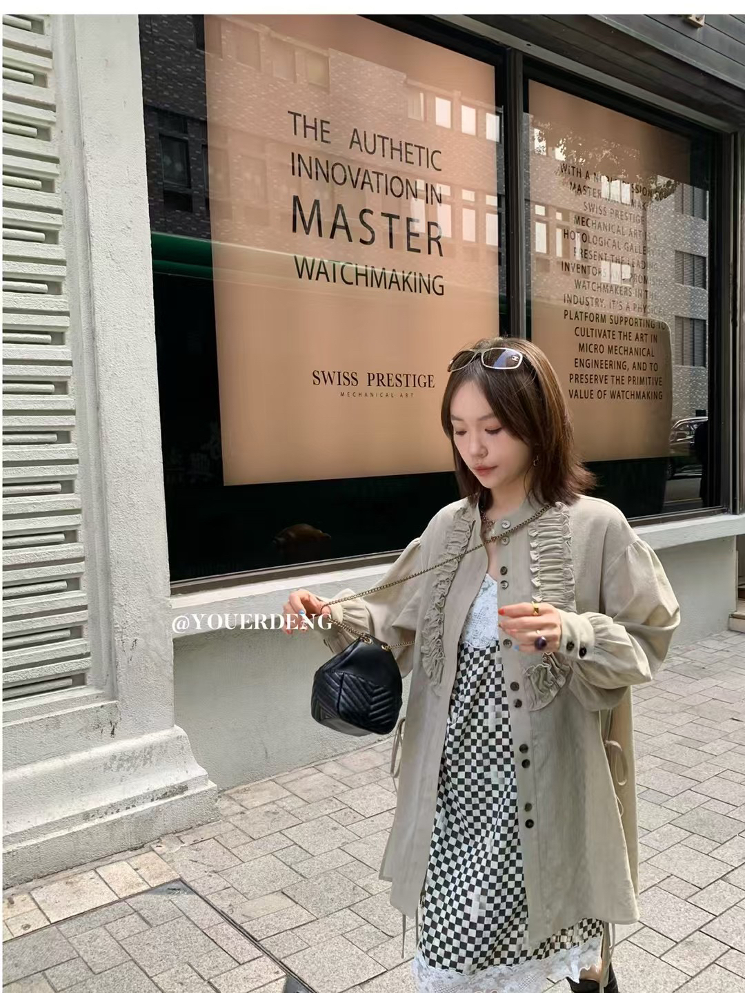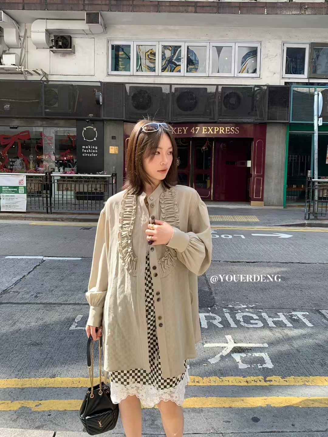 *o-ha-you*【FLKDD2025021】2025早春新款韓版復古甜美氣質時尚襯衫上衣襯衫裙小眾立體木耳工藝襯衣中長款