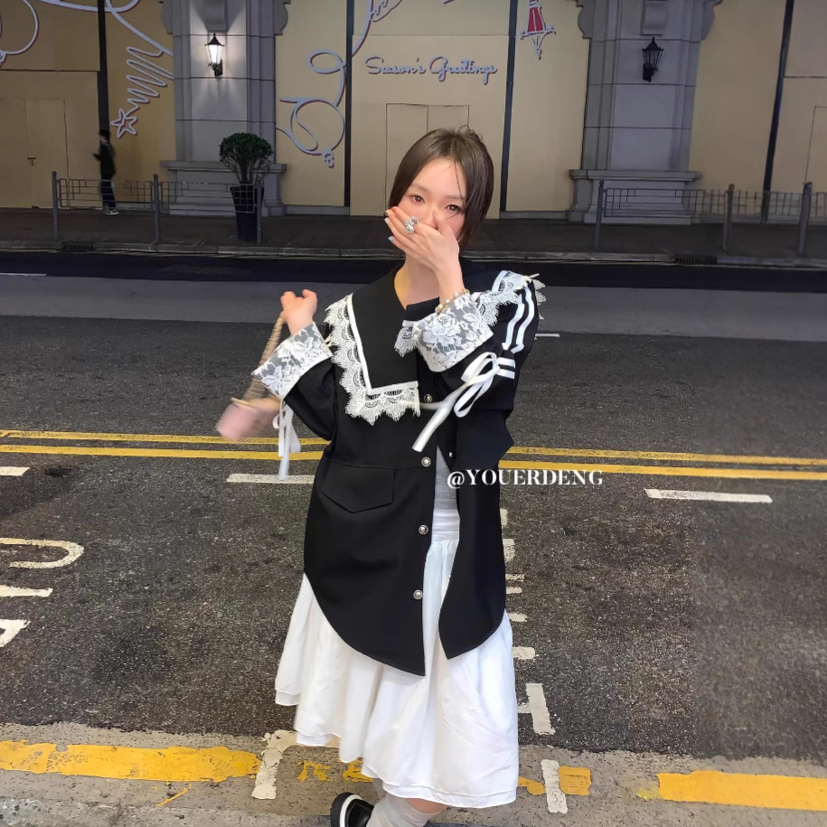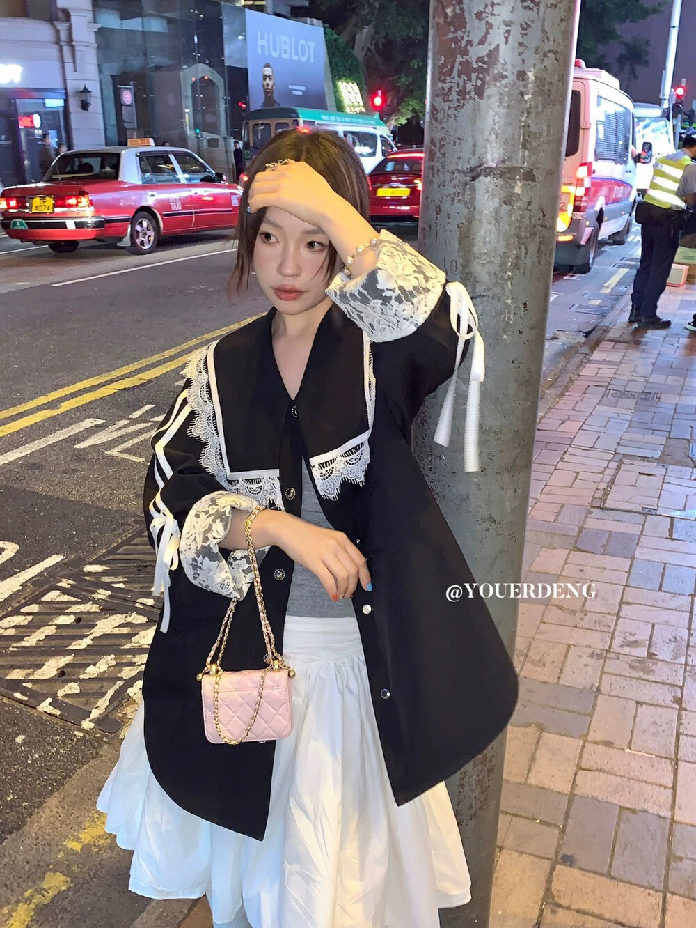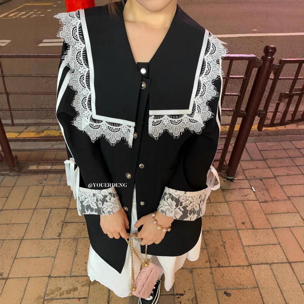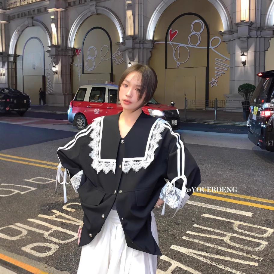 *o-ha-you*【FLKDD2025023】2025春季新款小眾設計感潮流韓系甜美風蕾絲花邊設計感廓形外套上衣