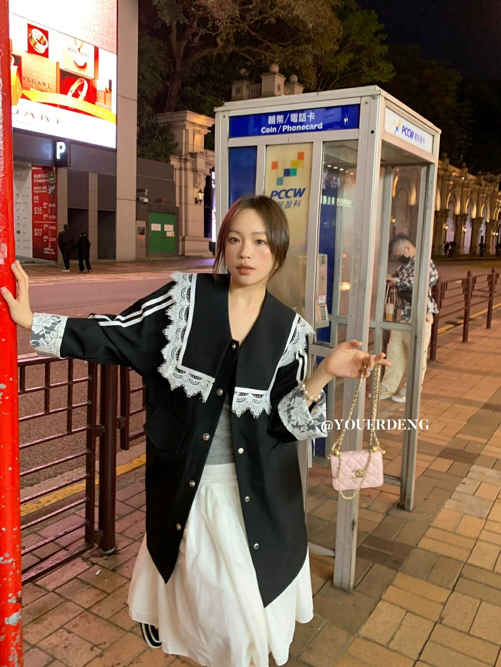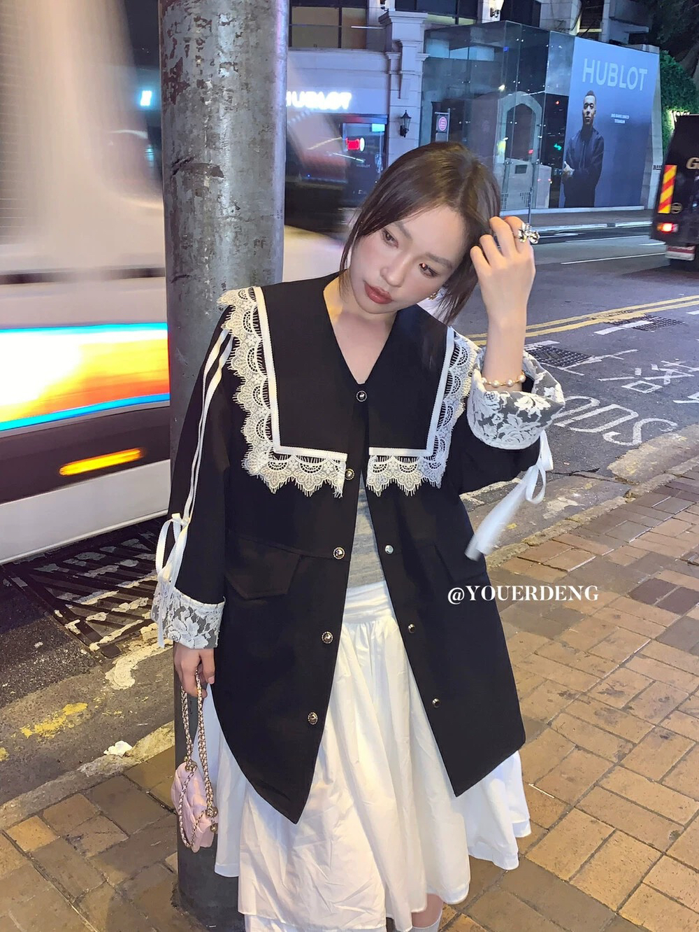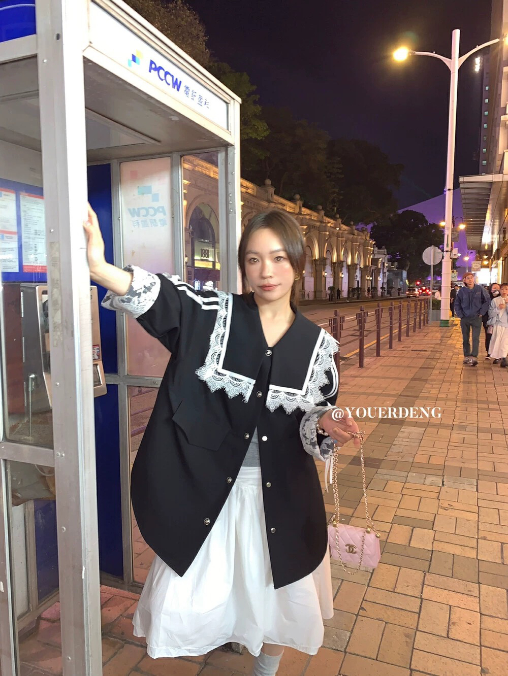 *o-ha-you*【FLKDD2025023】2025春季新款小眾設計感潮流韓系甜美風蕾絲花邊設計感廓形外套上衣