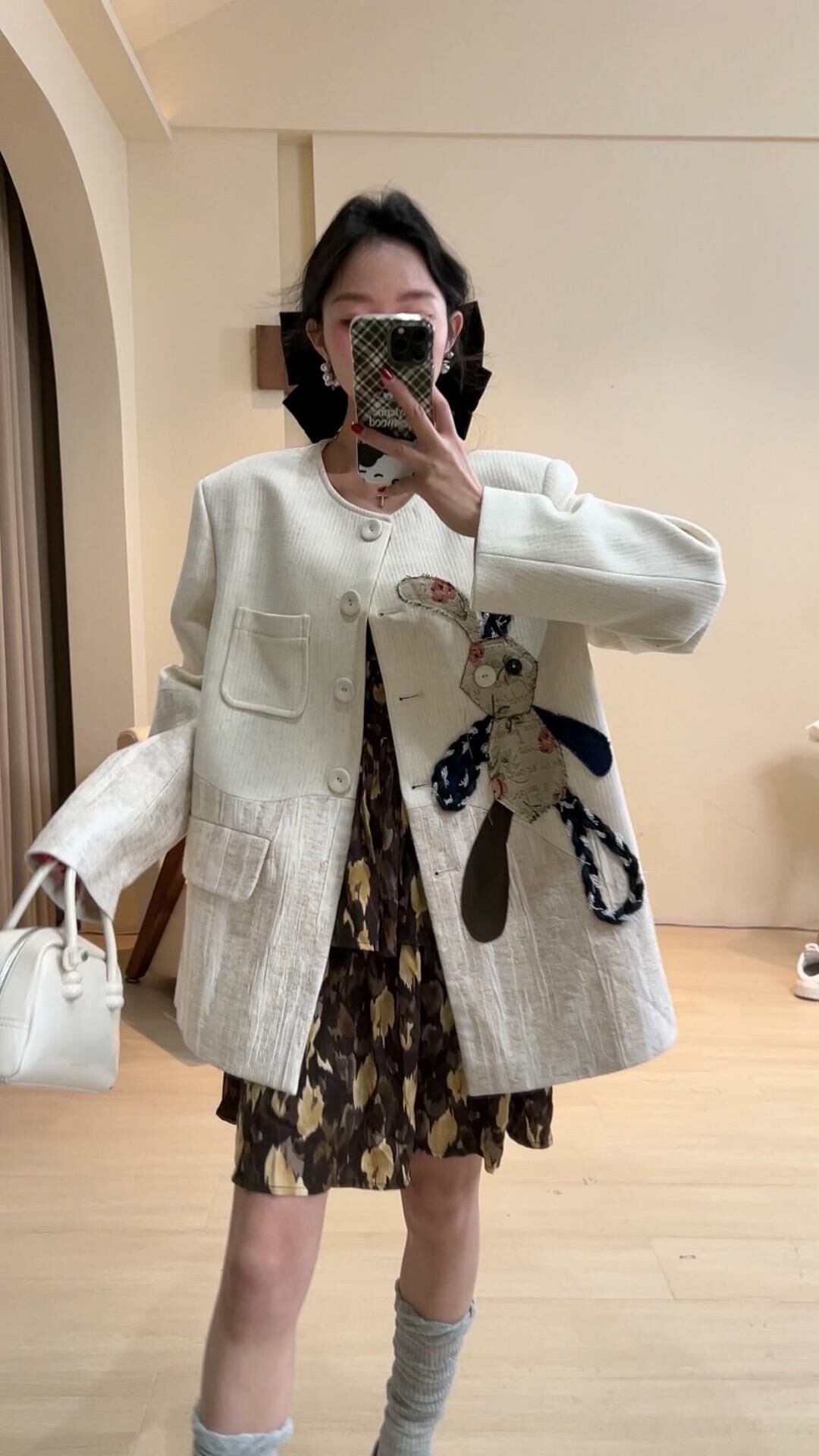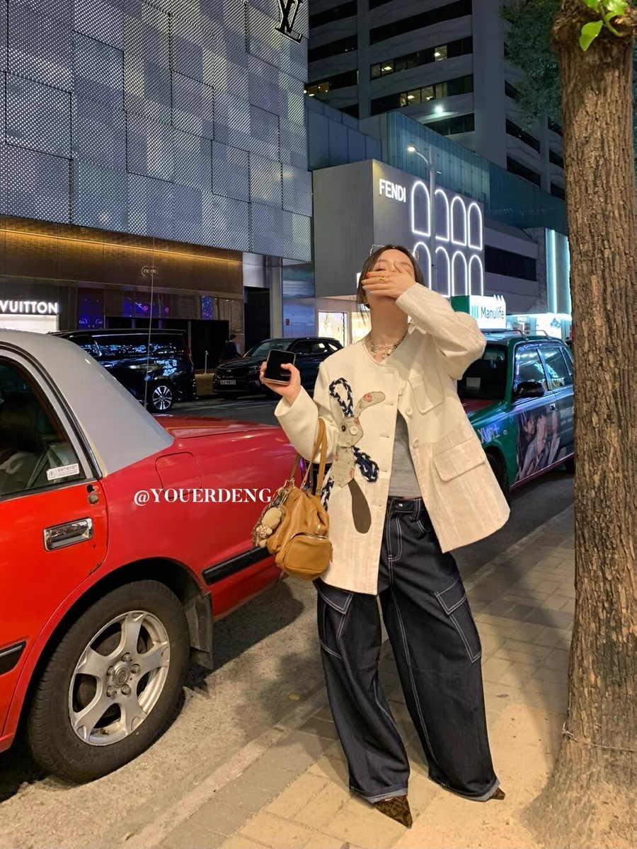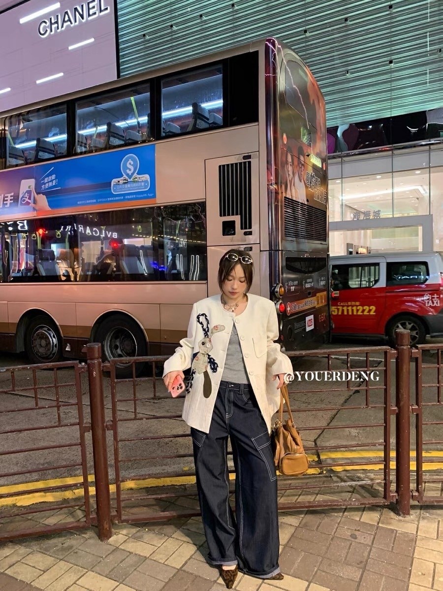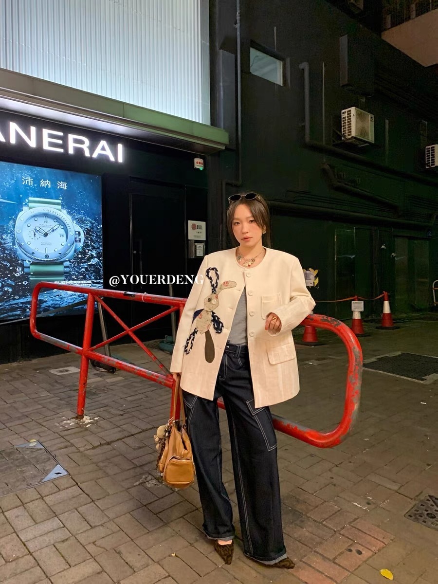 *o-ha-you*【FLKDD2025024】2025年春季新款小眾設計感西裝外套兔子圓領上衣韓版貼布刺繡寬鬆外套