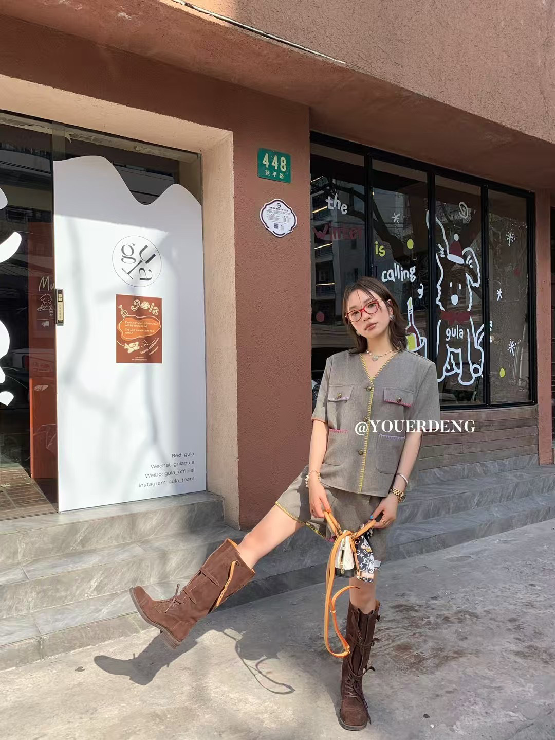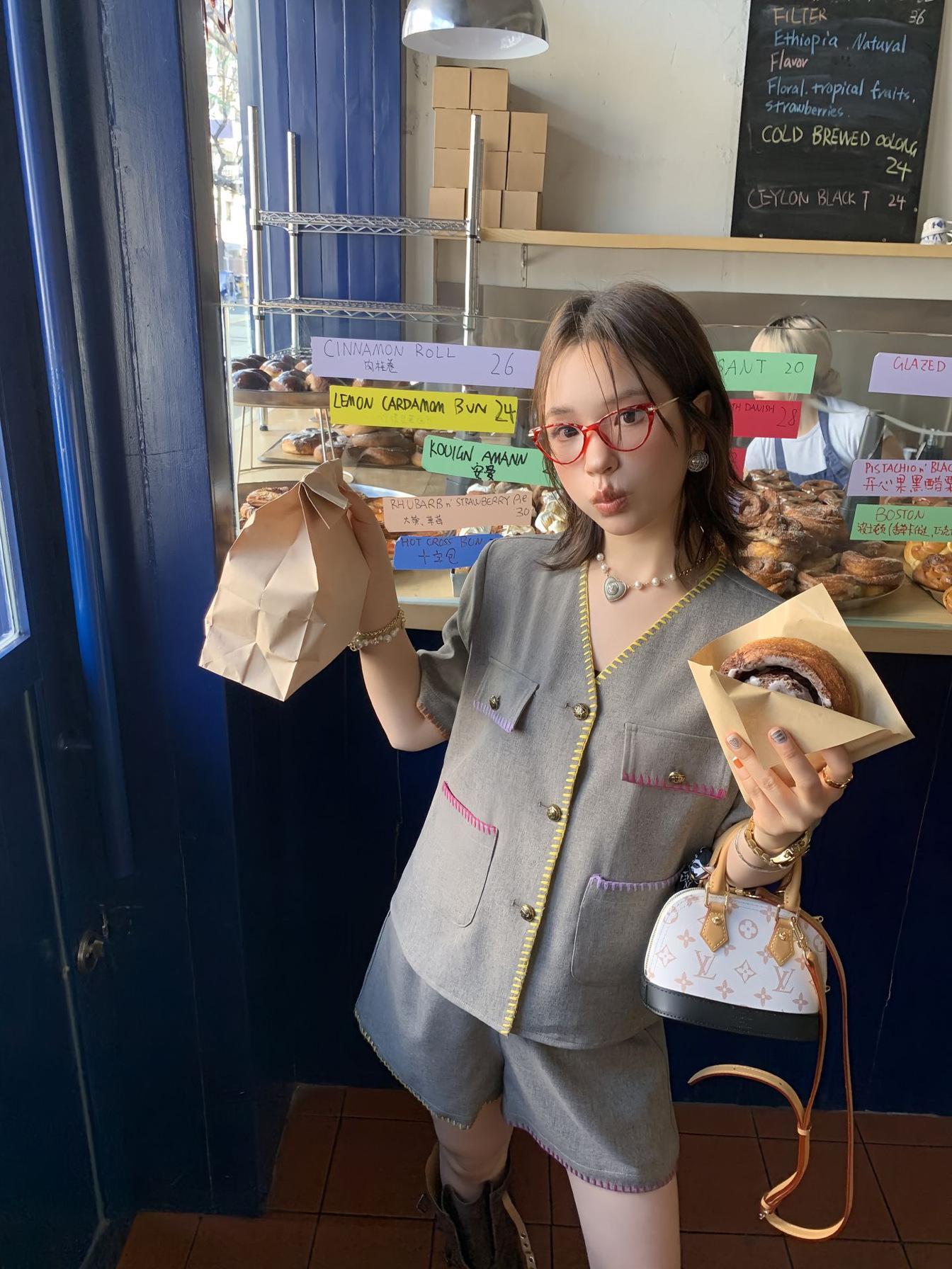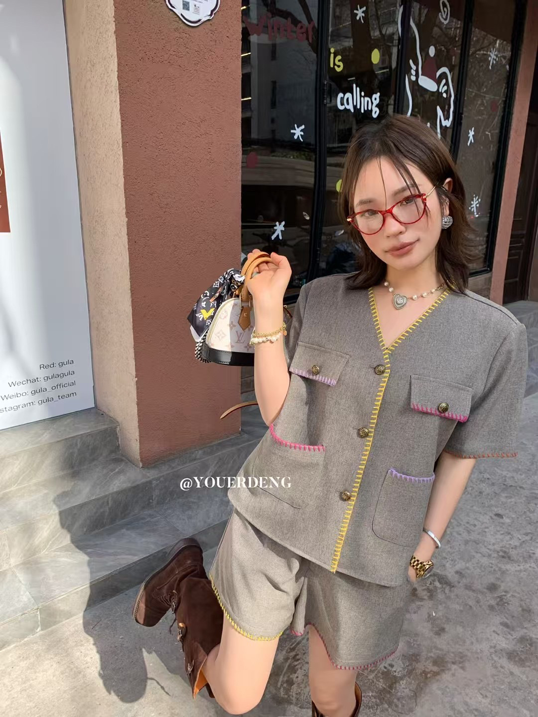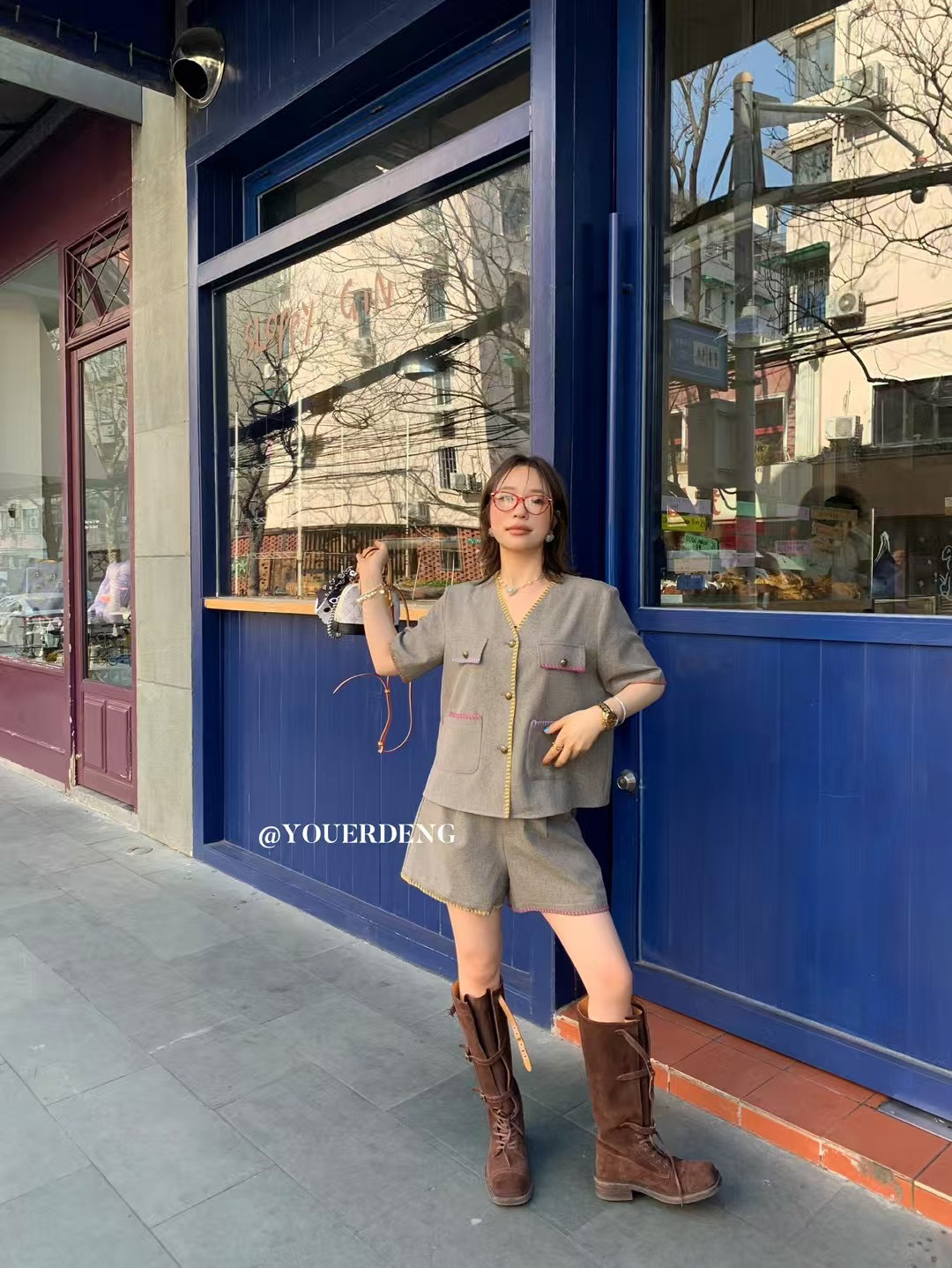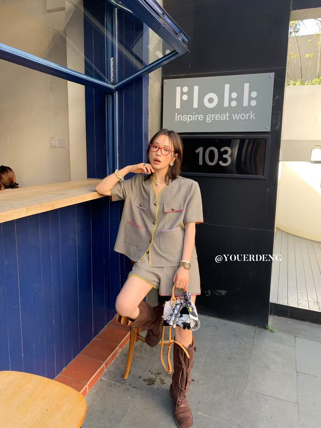 *o-ha-you*【FLKDD2025031】2025夏季甜美小眾設計感時髦套裝V領上衣短褲兩件套