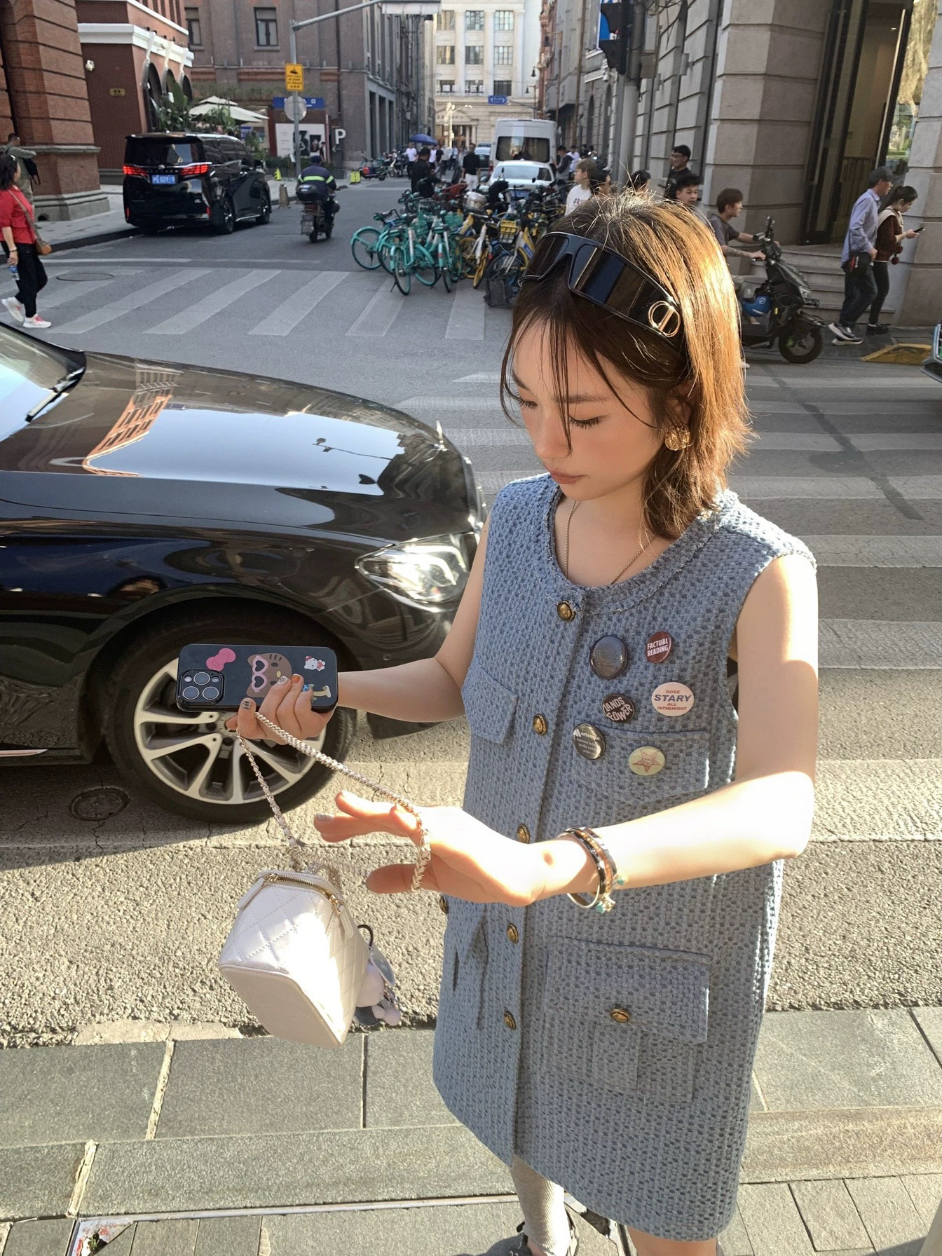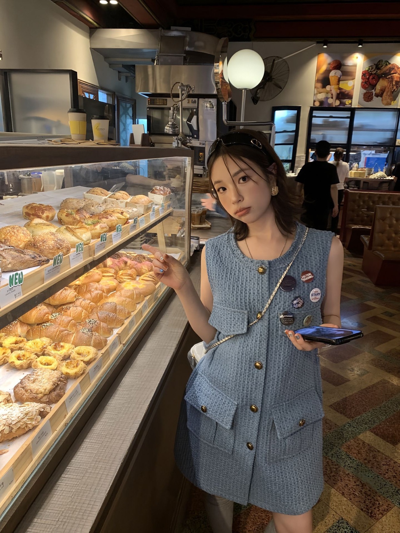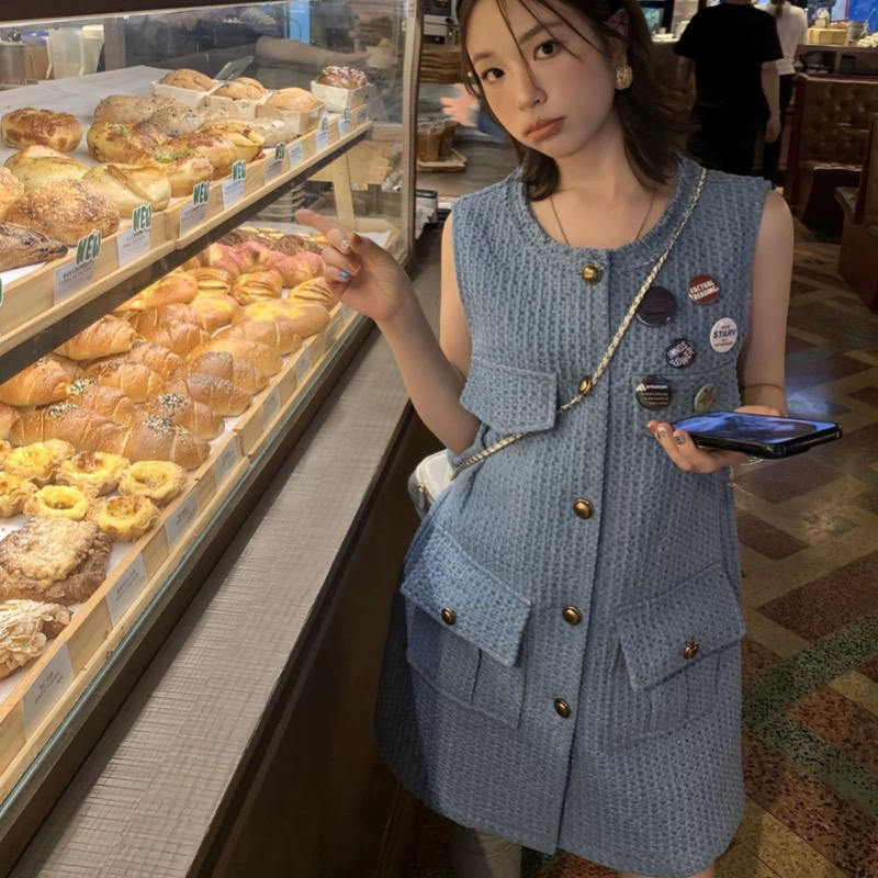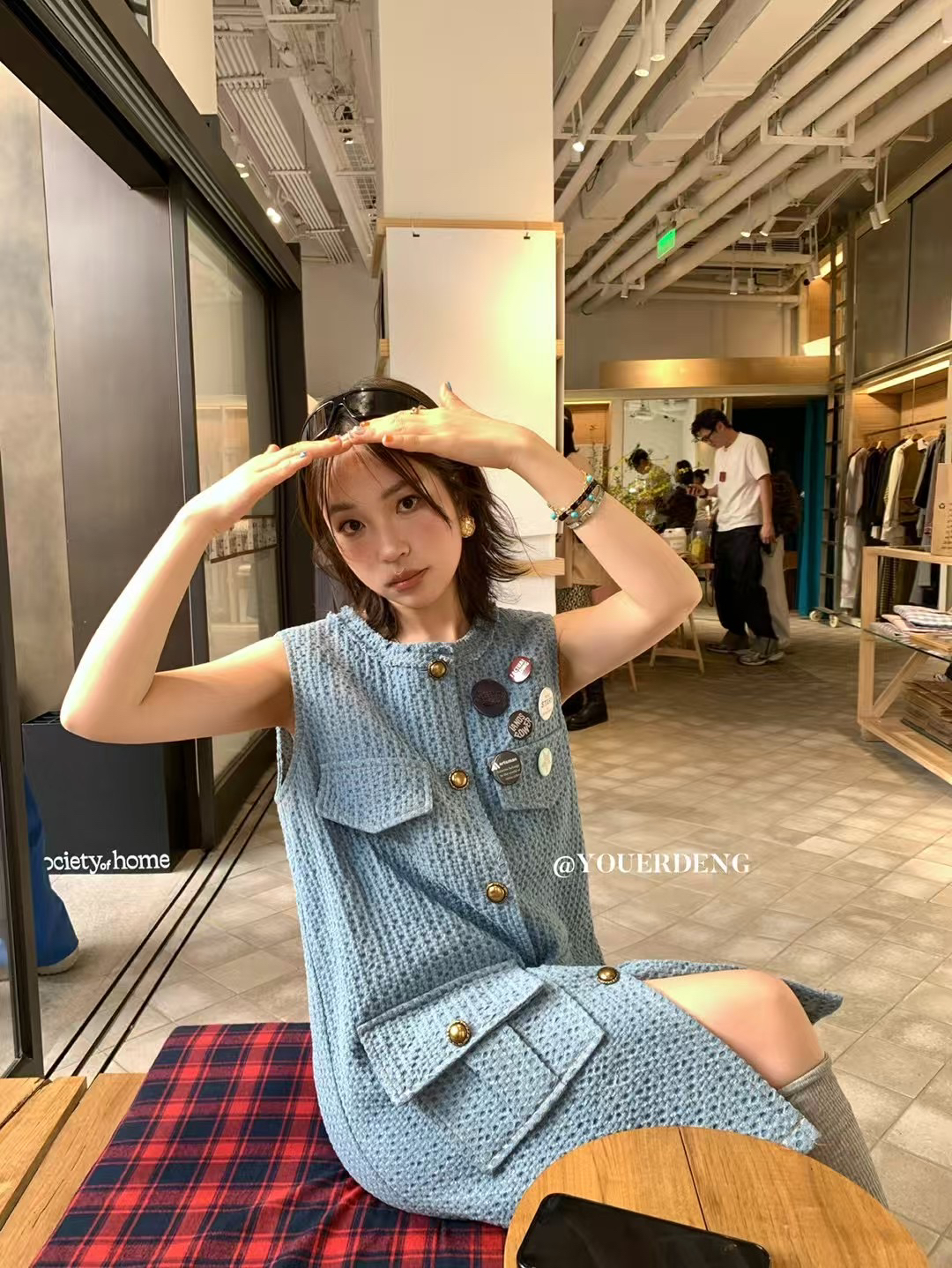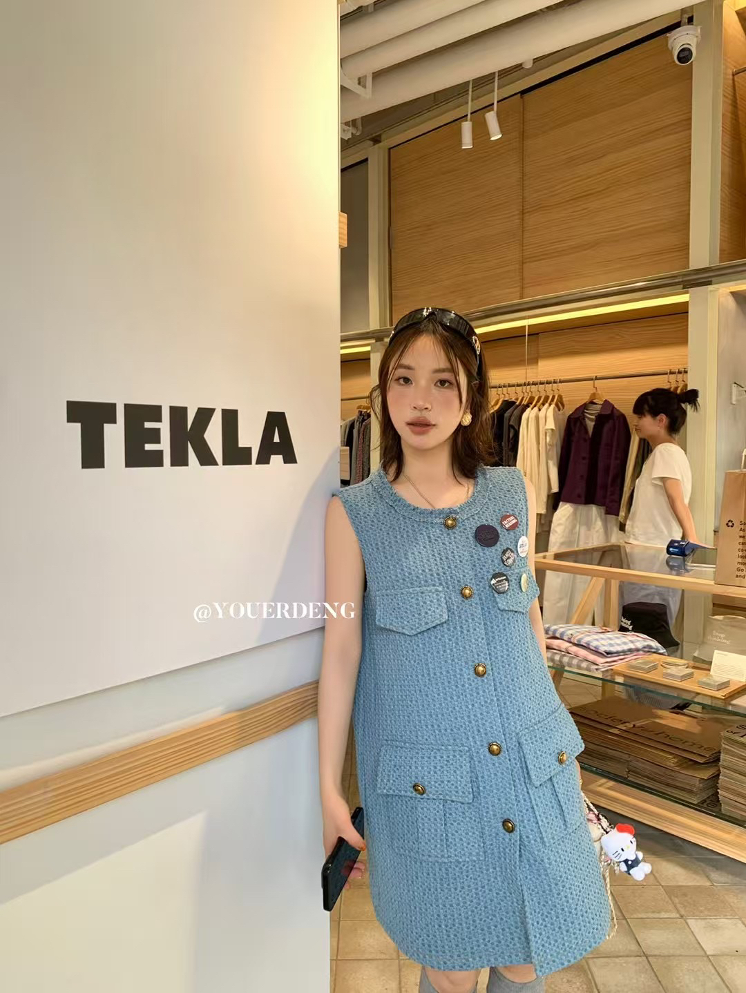 *o-ha-you*【FLKDD2025033】2025夏季小香風設計連衣裙直筒短裙輕奢多口袋藍色小眾設計感背心裙洋裝