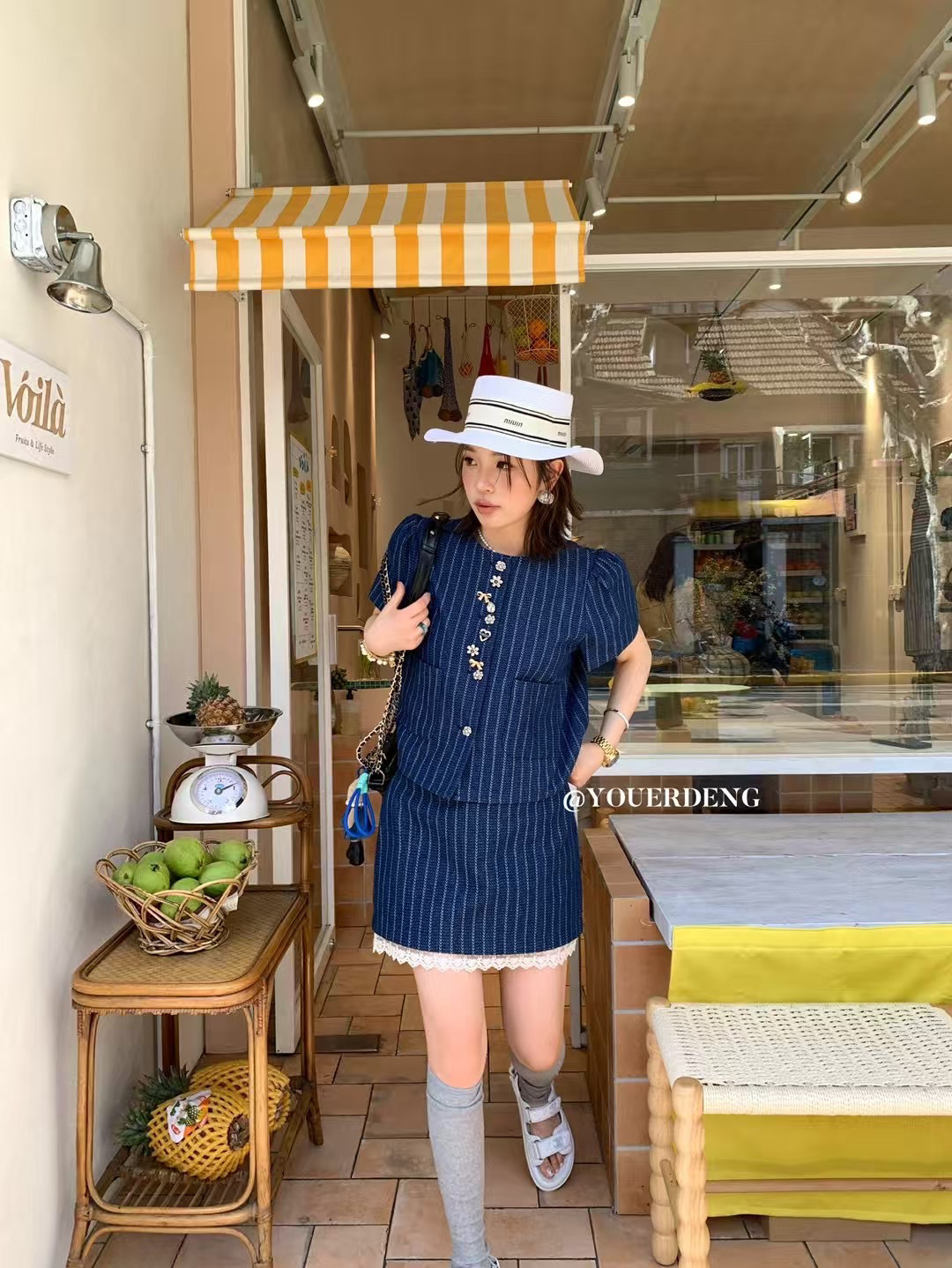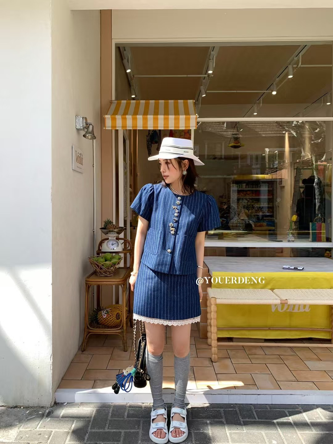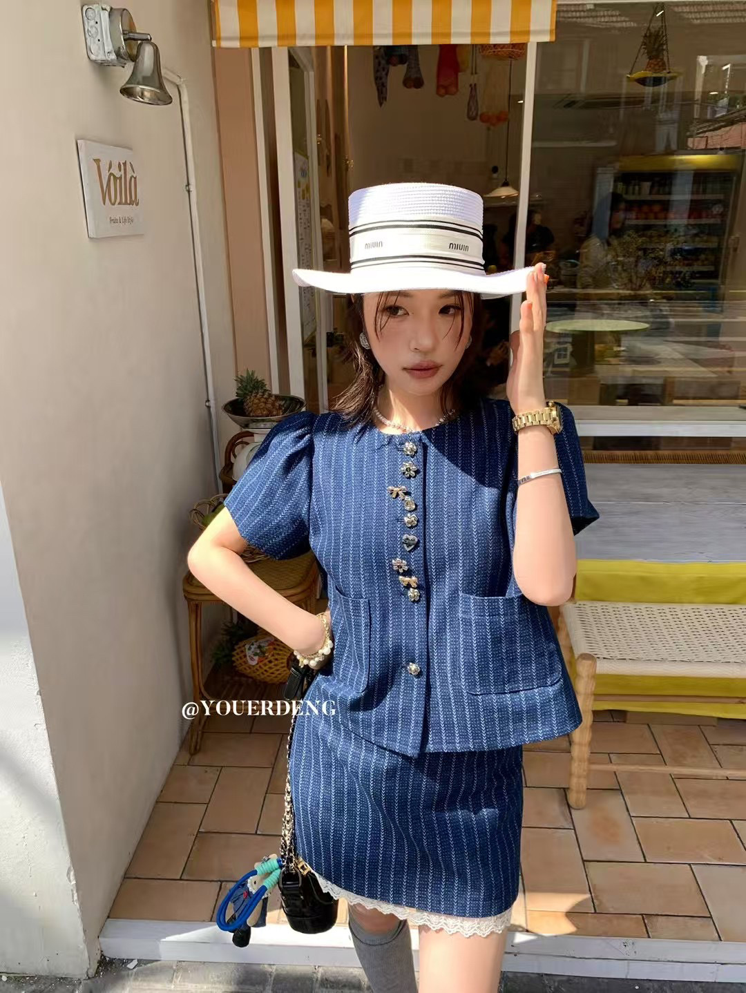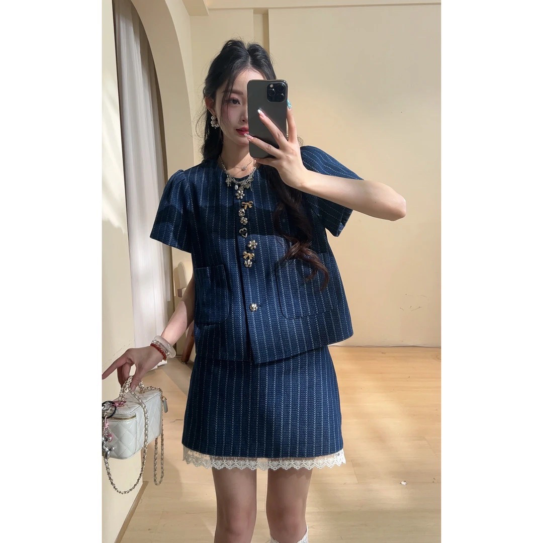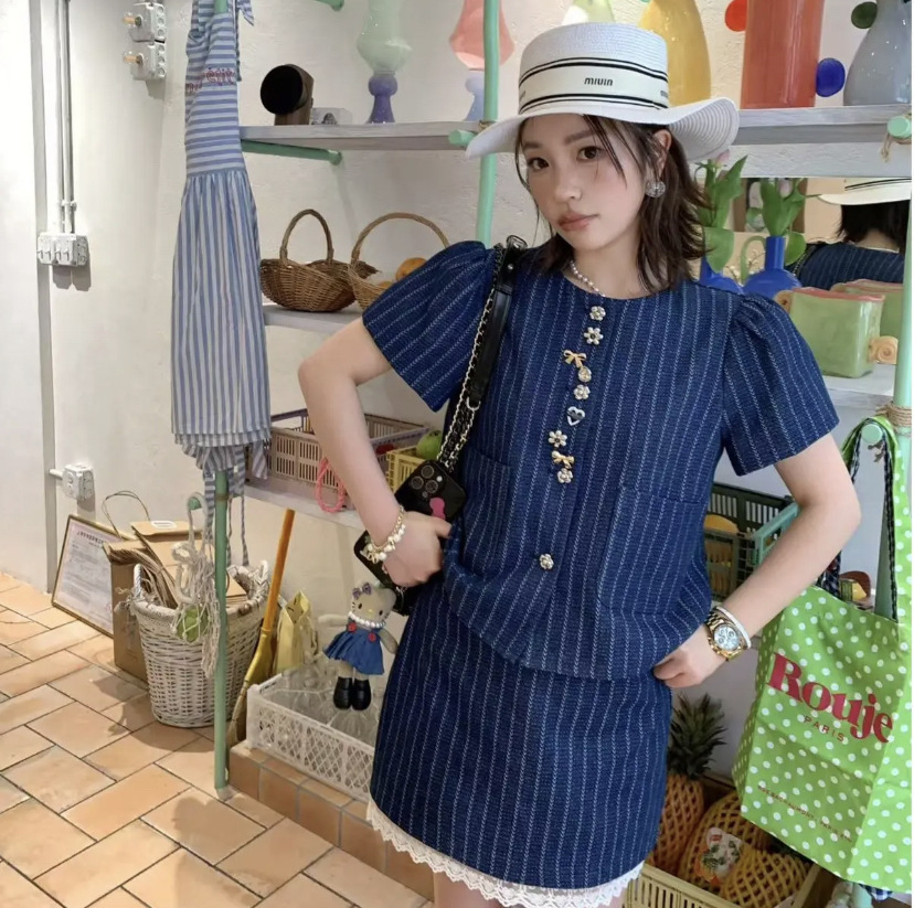 *o-ha-you*【FLKDD2025036】2025夏季個性腔調泡泡短袖高級感條紋牛仔兩件套短裙套裝小眾炸街高級感女裝