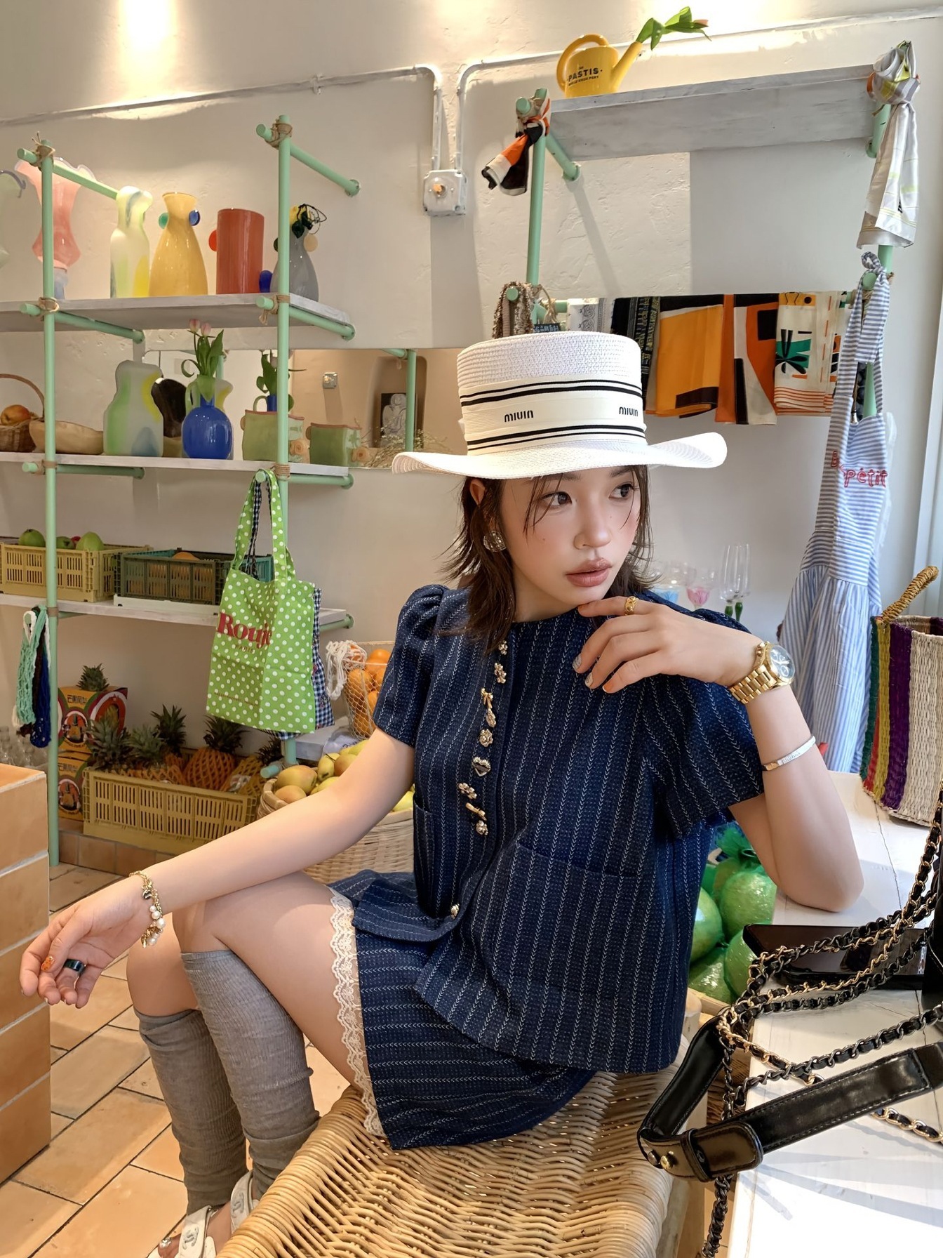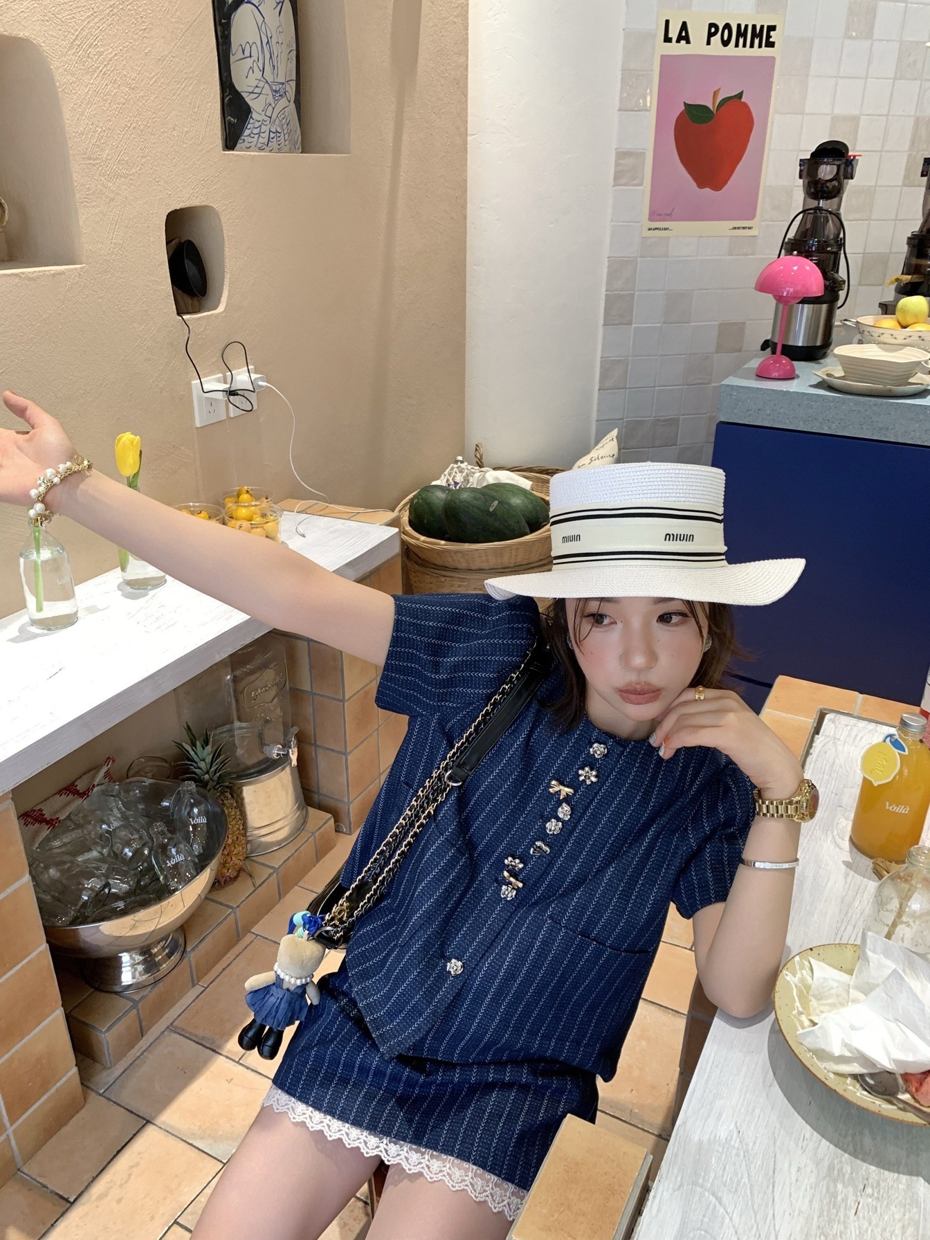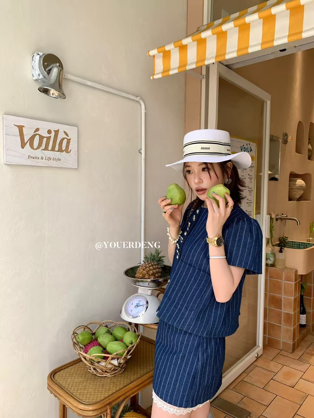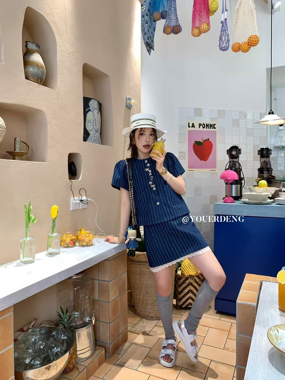 *o-ha-you*【FLKDD2025036】2025夏季個性腔調泡泡短袖高級感條紋牛仔兩件套短裙套裝小眾炸街高級感女裝