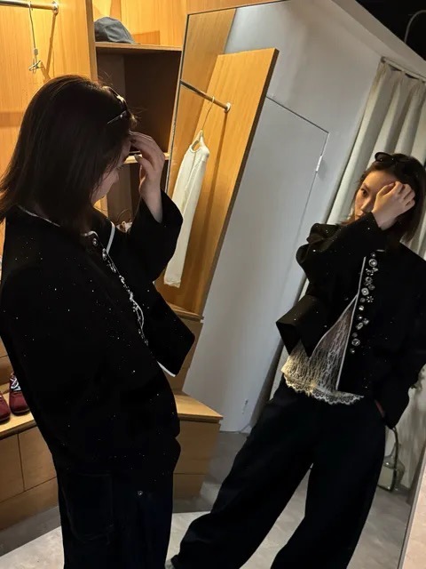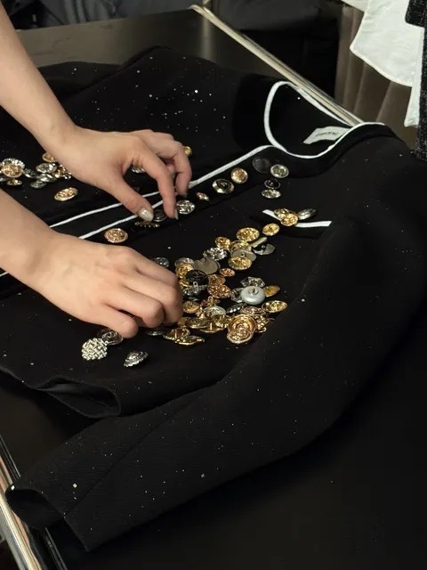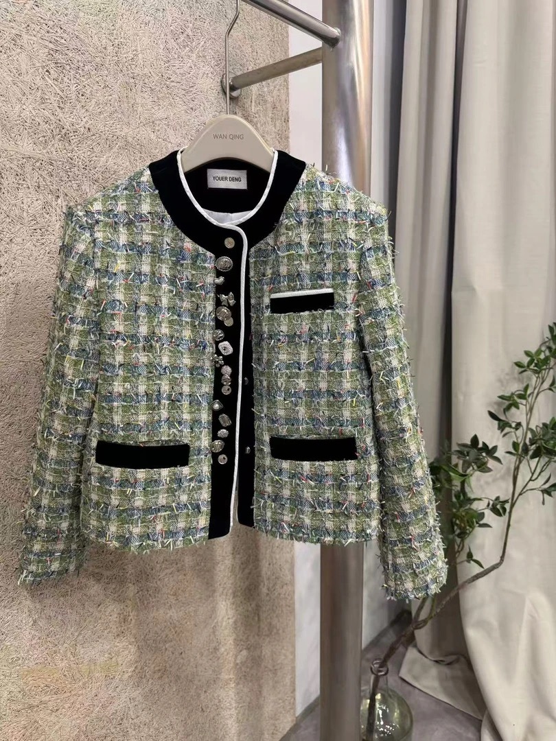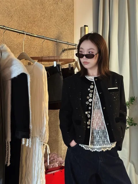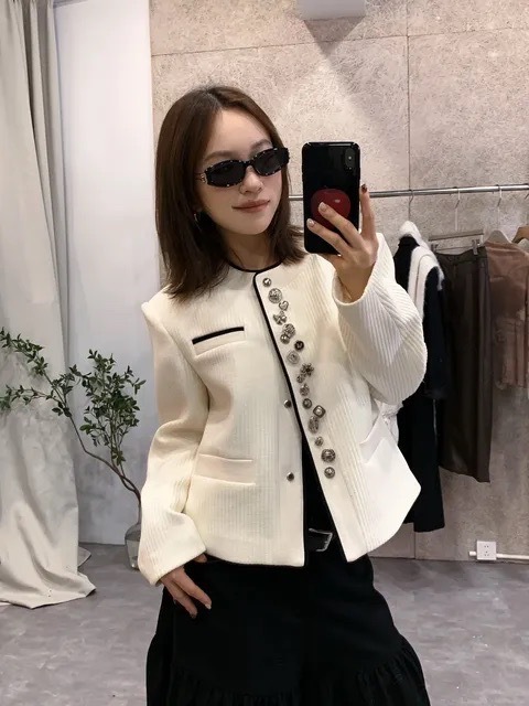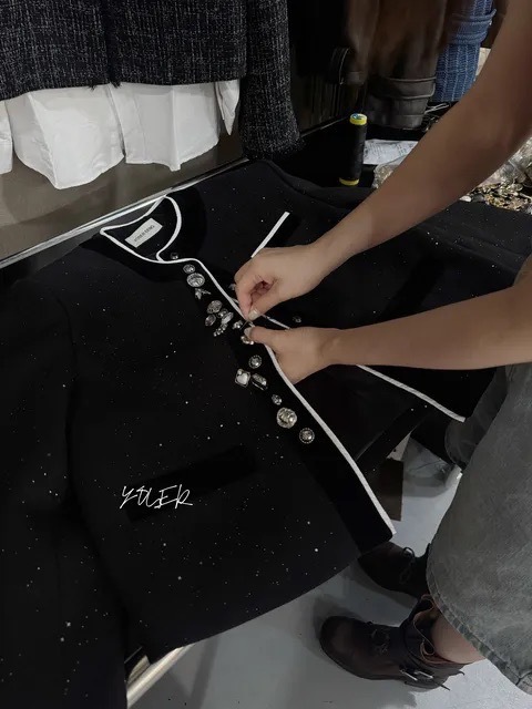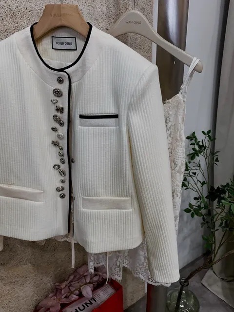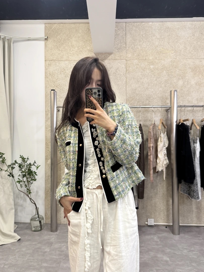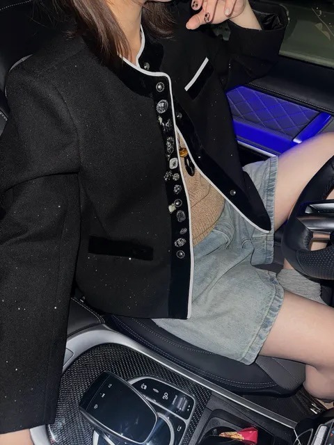 *o-ha-you*【FLKDD2025040】小眾設計感名媛氣質上衣夾克秋季單排扣潮流外套【星星點點】重工不規則扣門襟裝飾經典小香風外套-3色