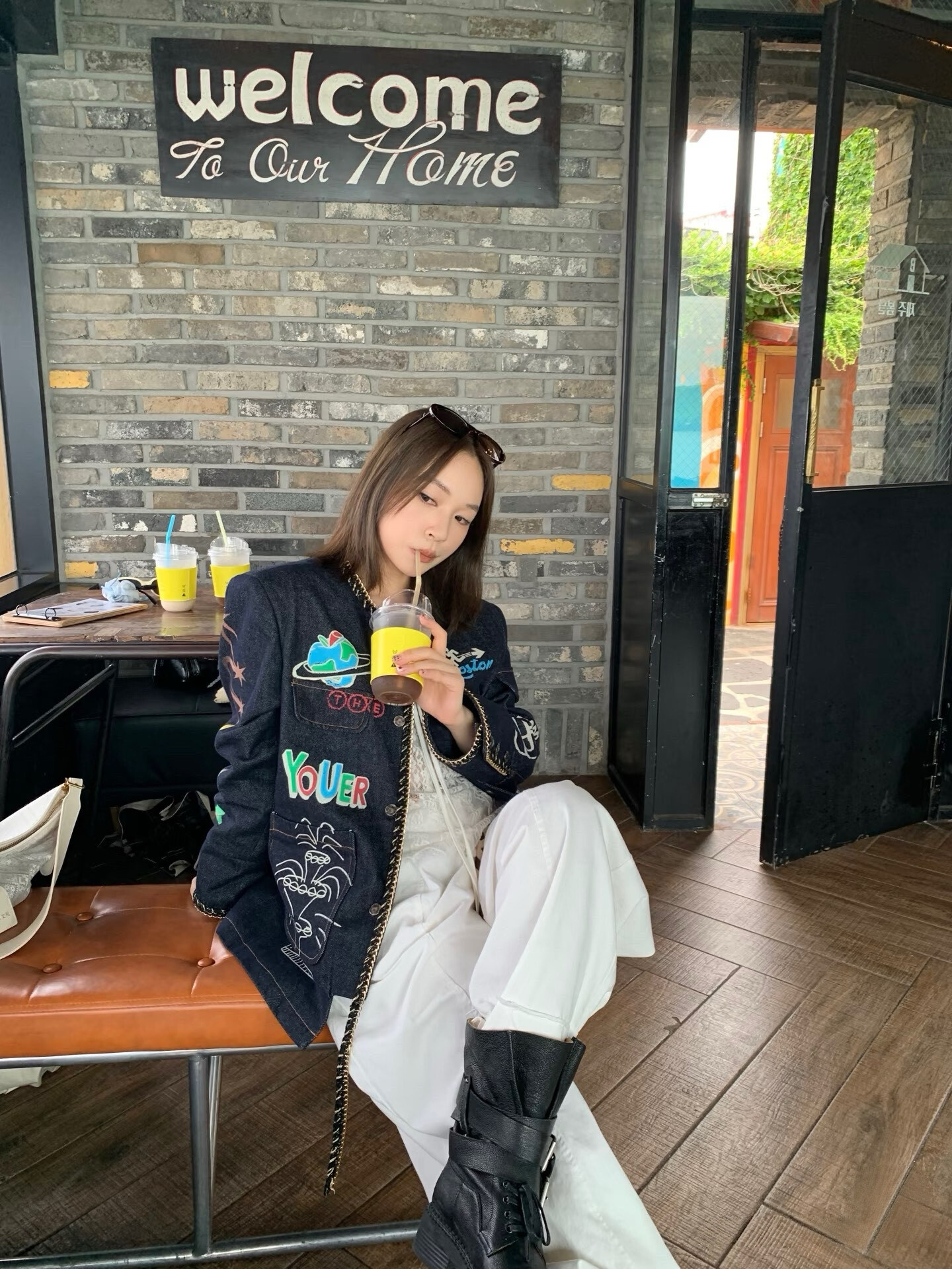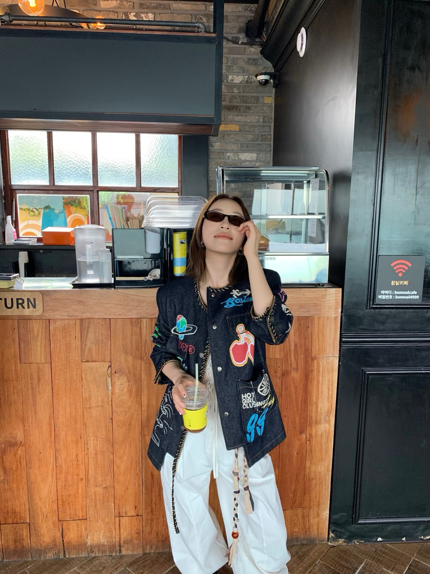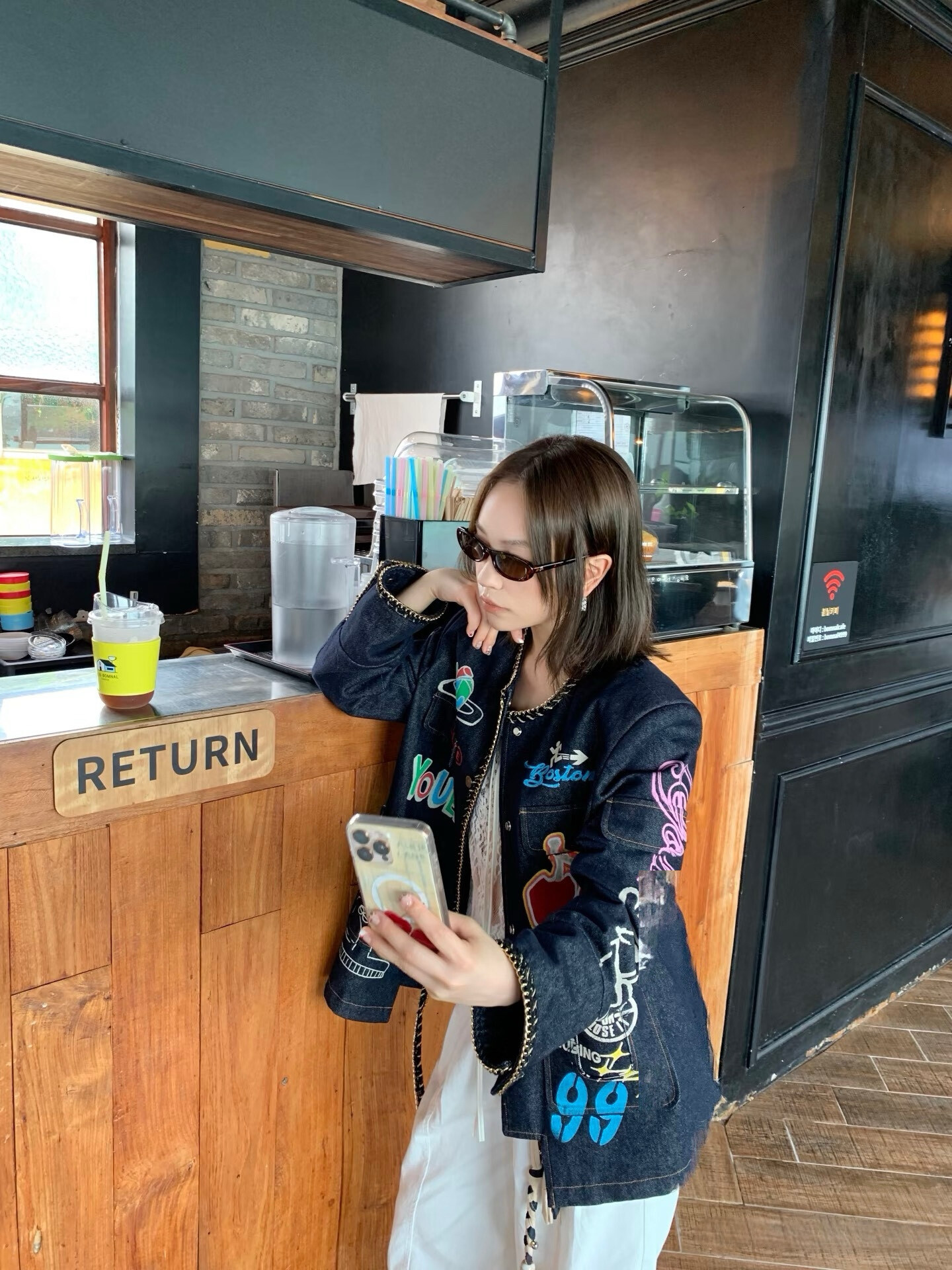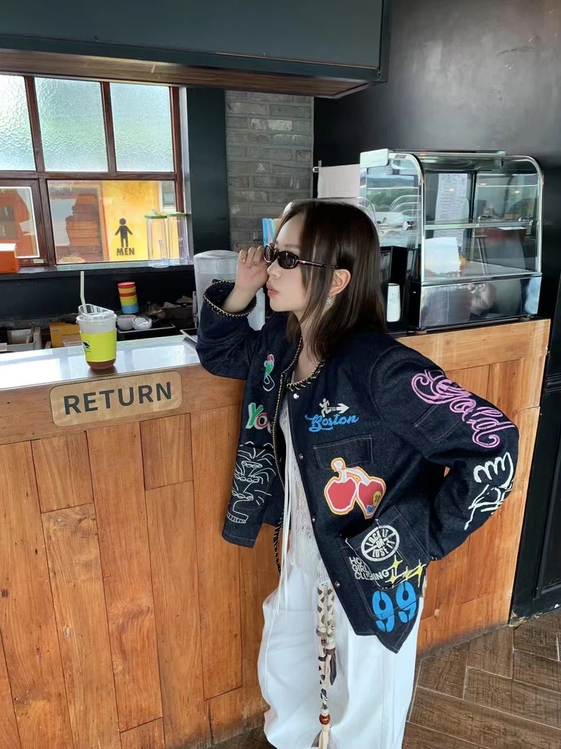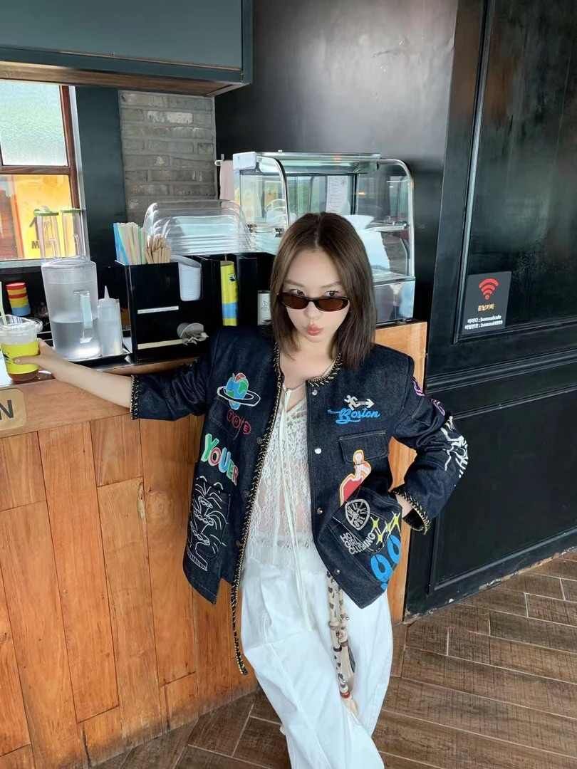 *o-ha-you*【FLKDD2025041】2025秋心心念念牛仔手工塗鴉牛仔短夾克外套