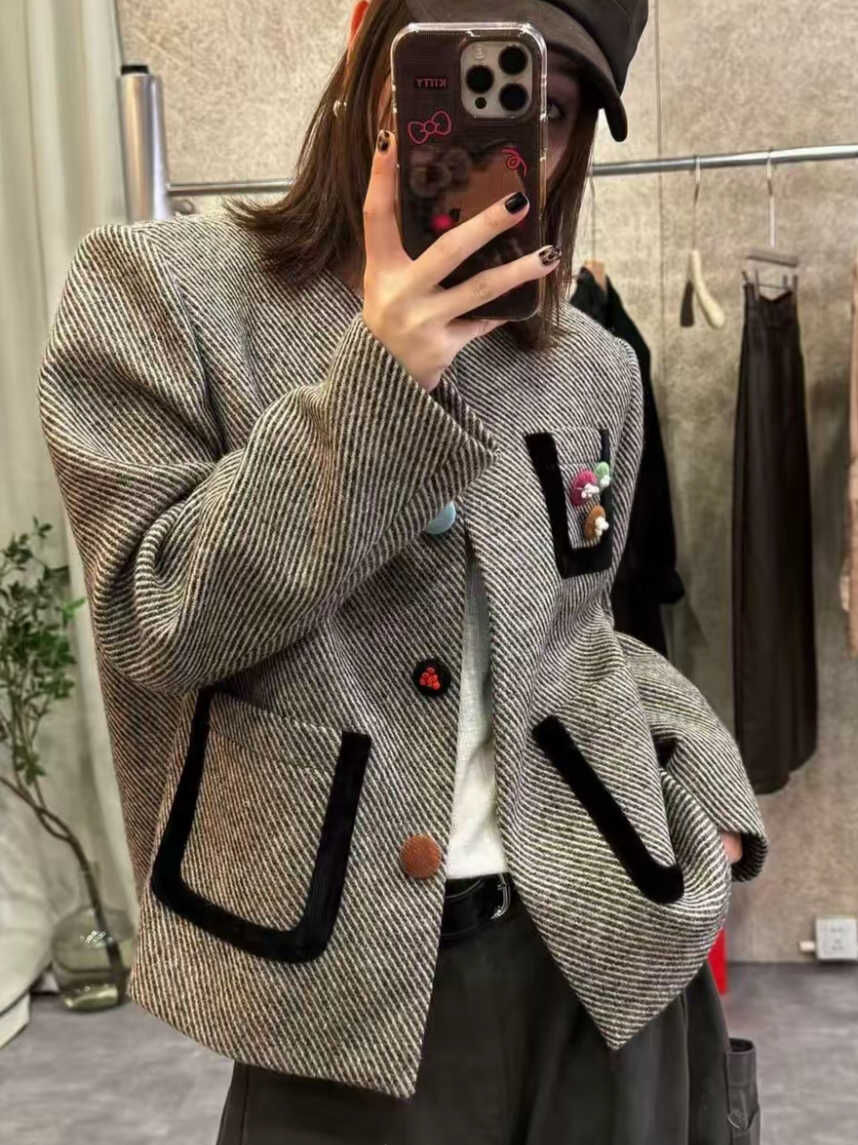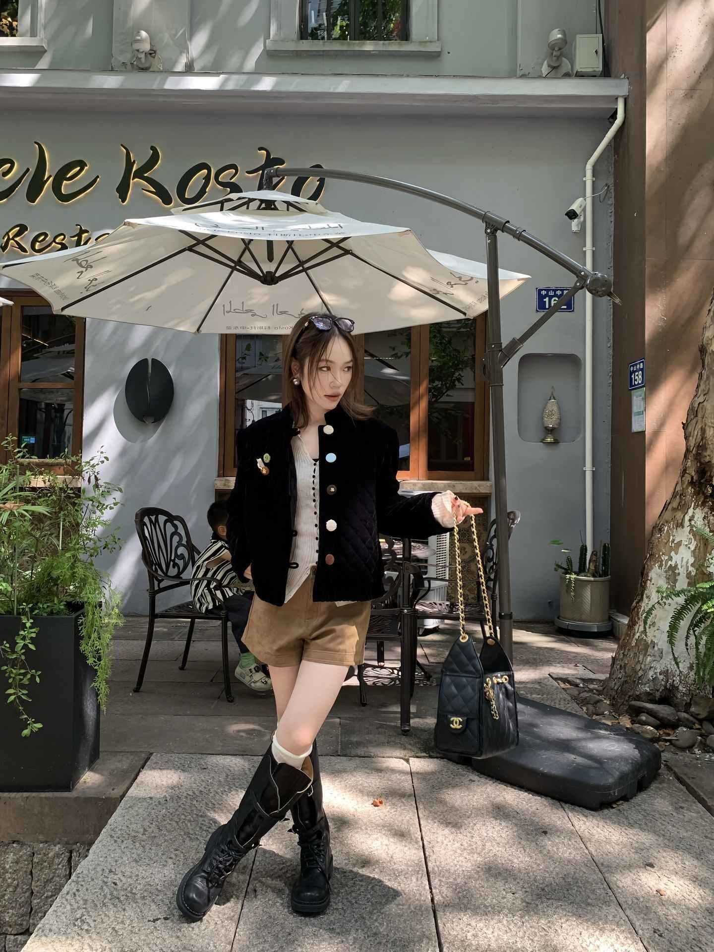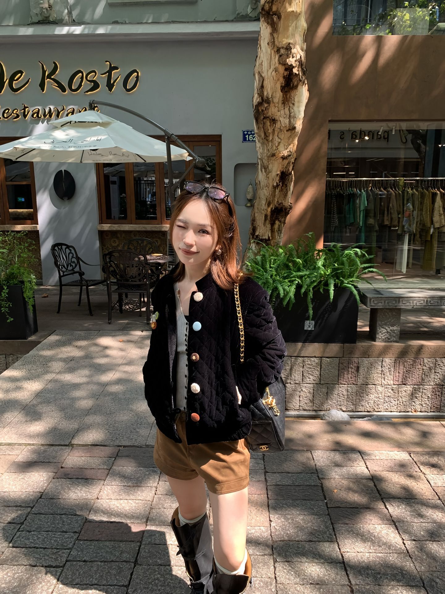 *o-ha-you*【FLKDD2025043】短版絲絨棉服新款外套秋冬加厚外套帥氣設計感街頭個性短上衣高級感潮流-2色