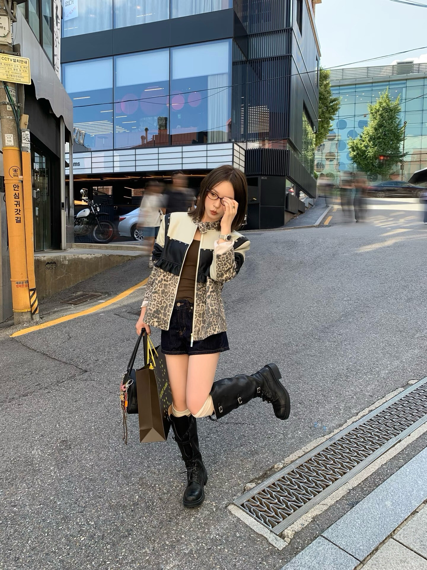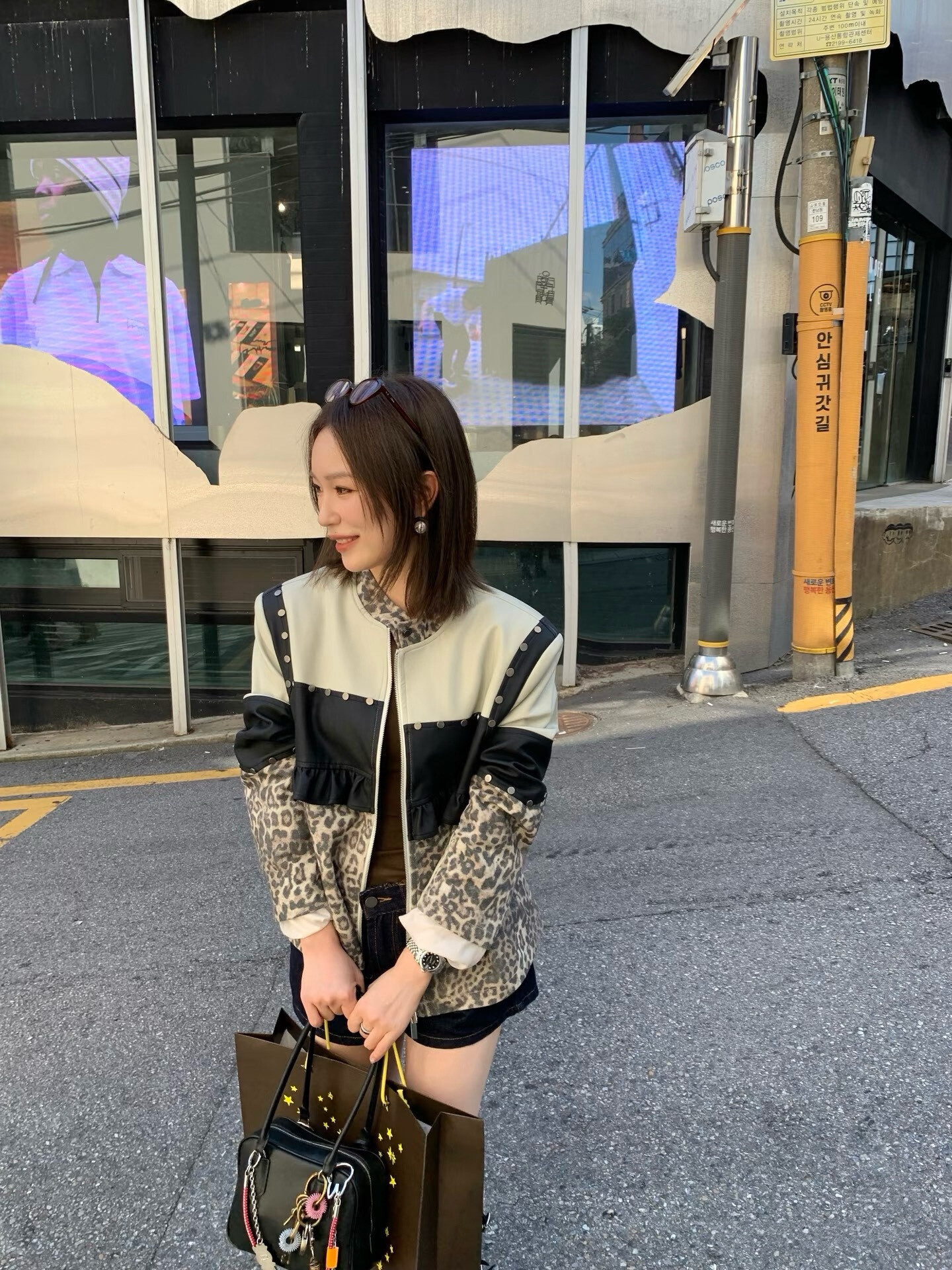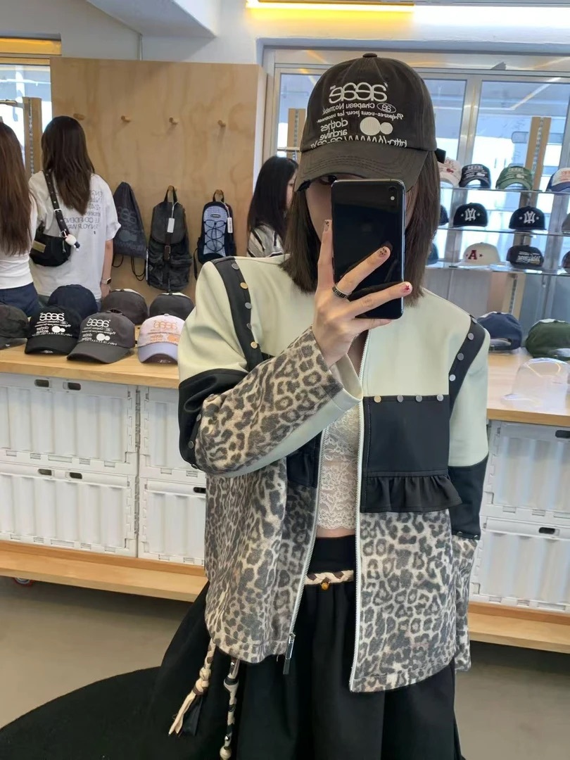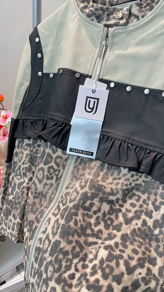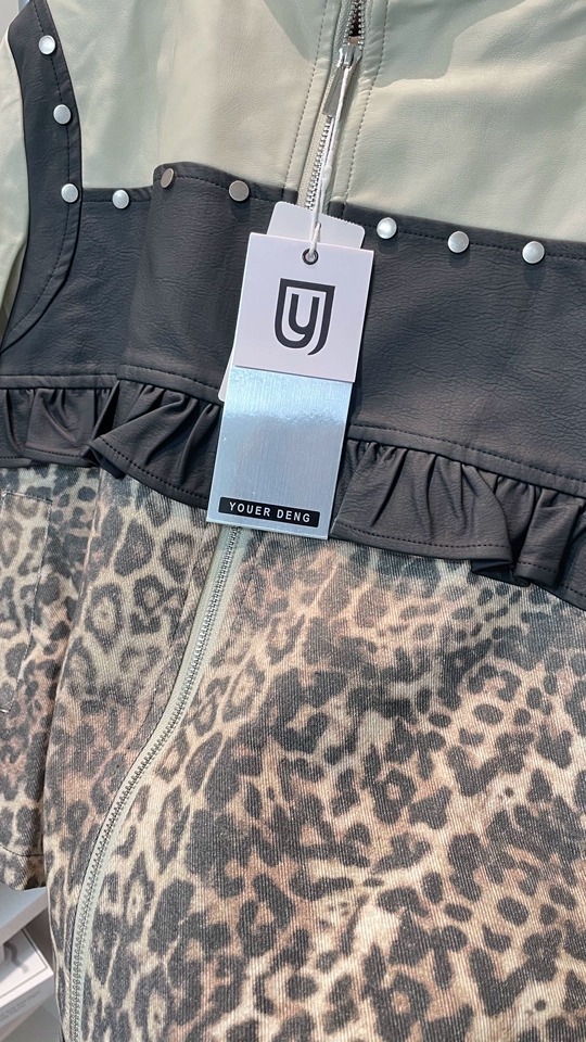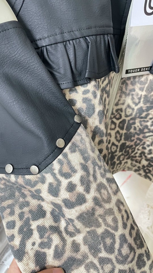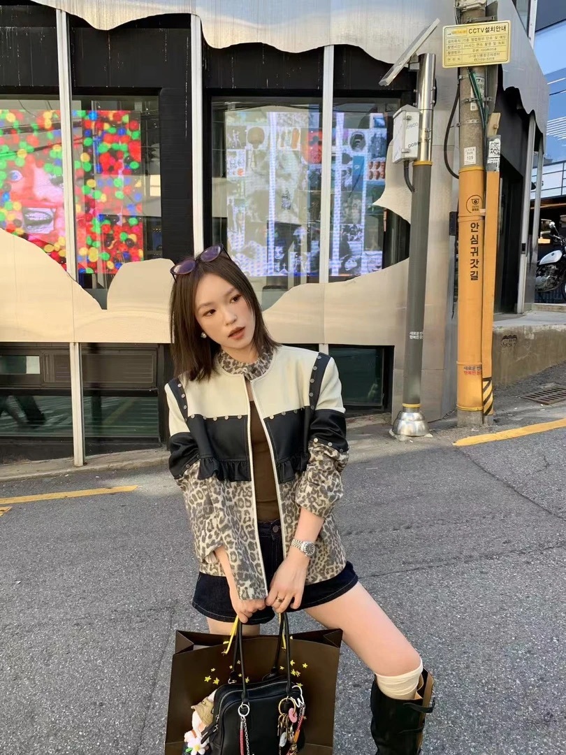 *o-ha-you*【FLKDD2025045】正肩顯瘦豹紋設計拼接鉚釘夾克外套