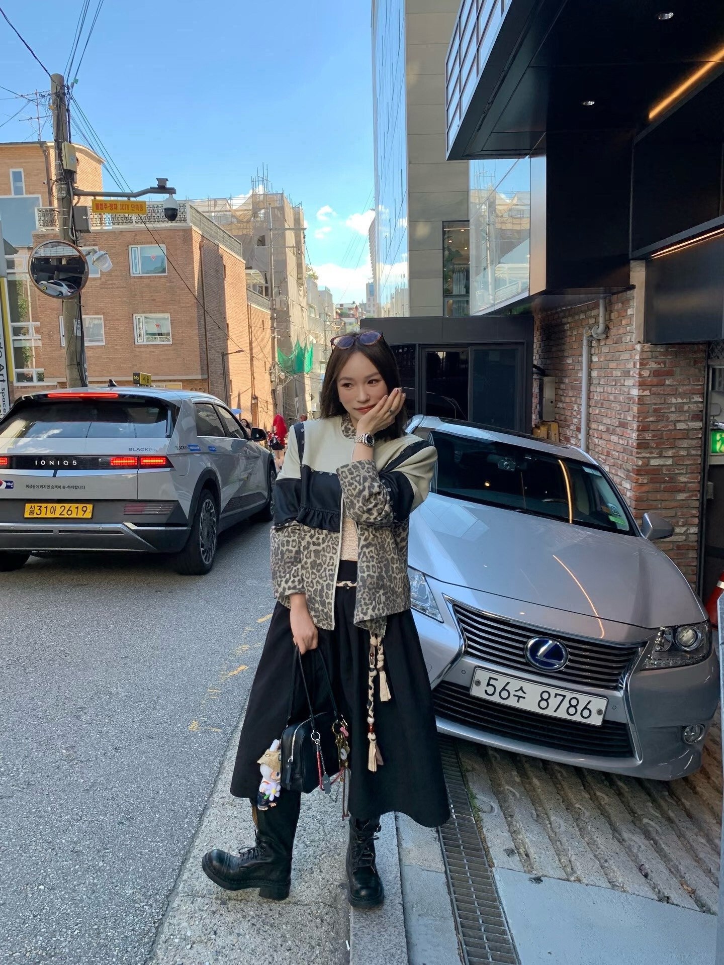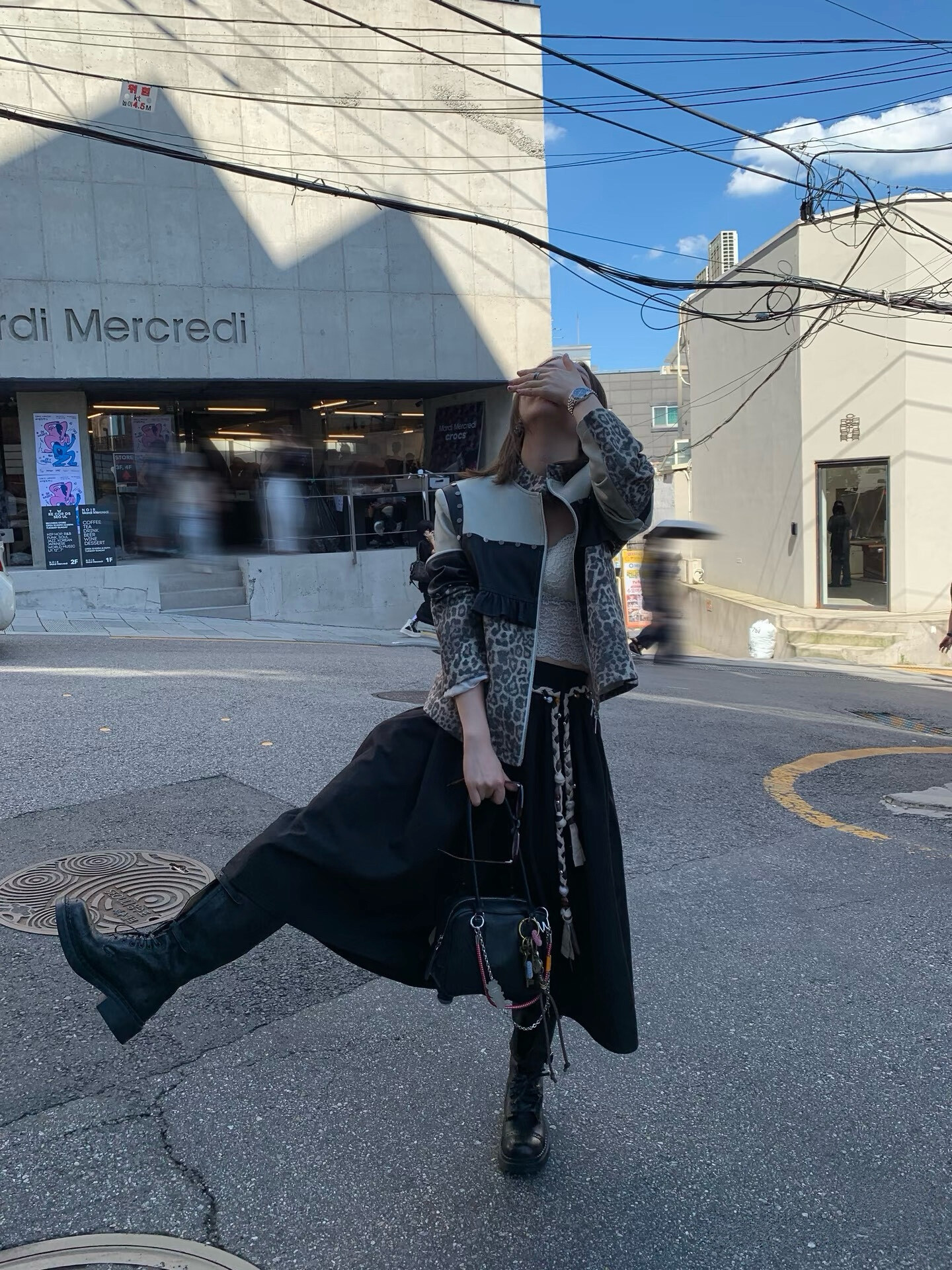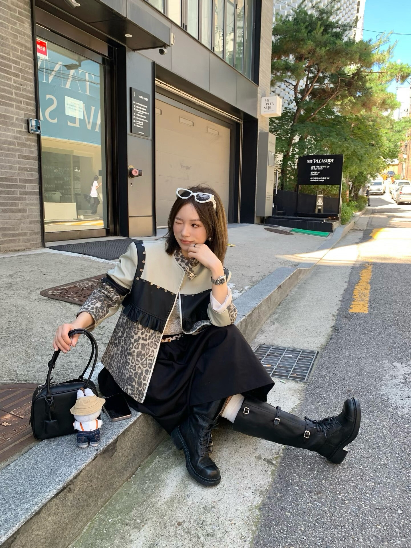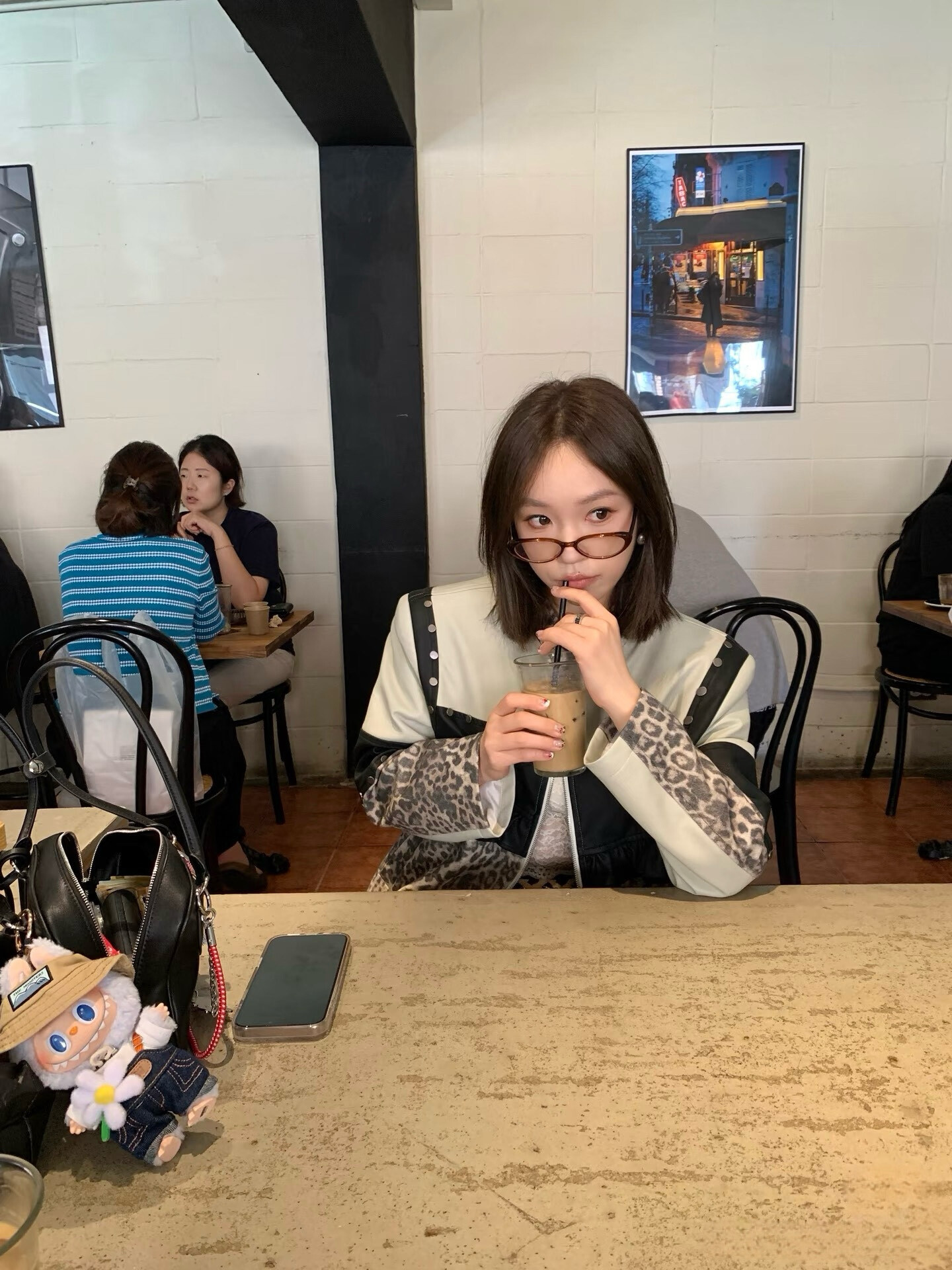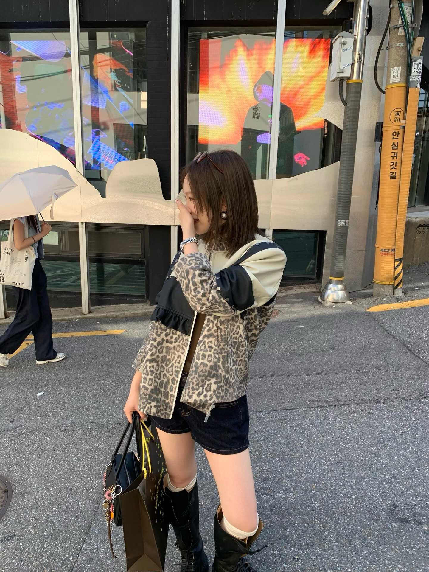 *o-ha-you*【FLKDD2025045】正肩顯瘦豹紋設計拼接鉚釘夾克外套