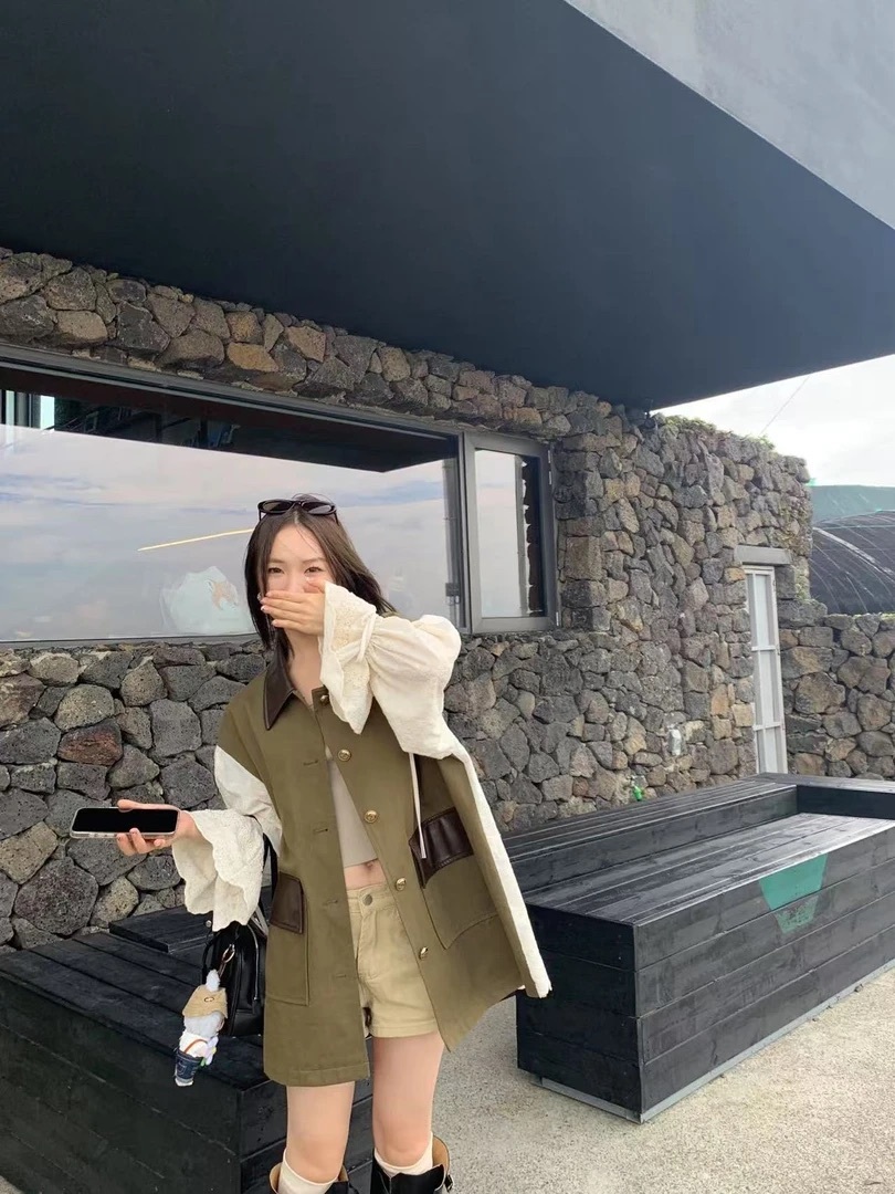 *o-ha-you*【FLKDD2025049】2025年秋時光機時尚韓系百搭拼接外套