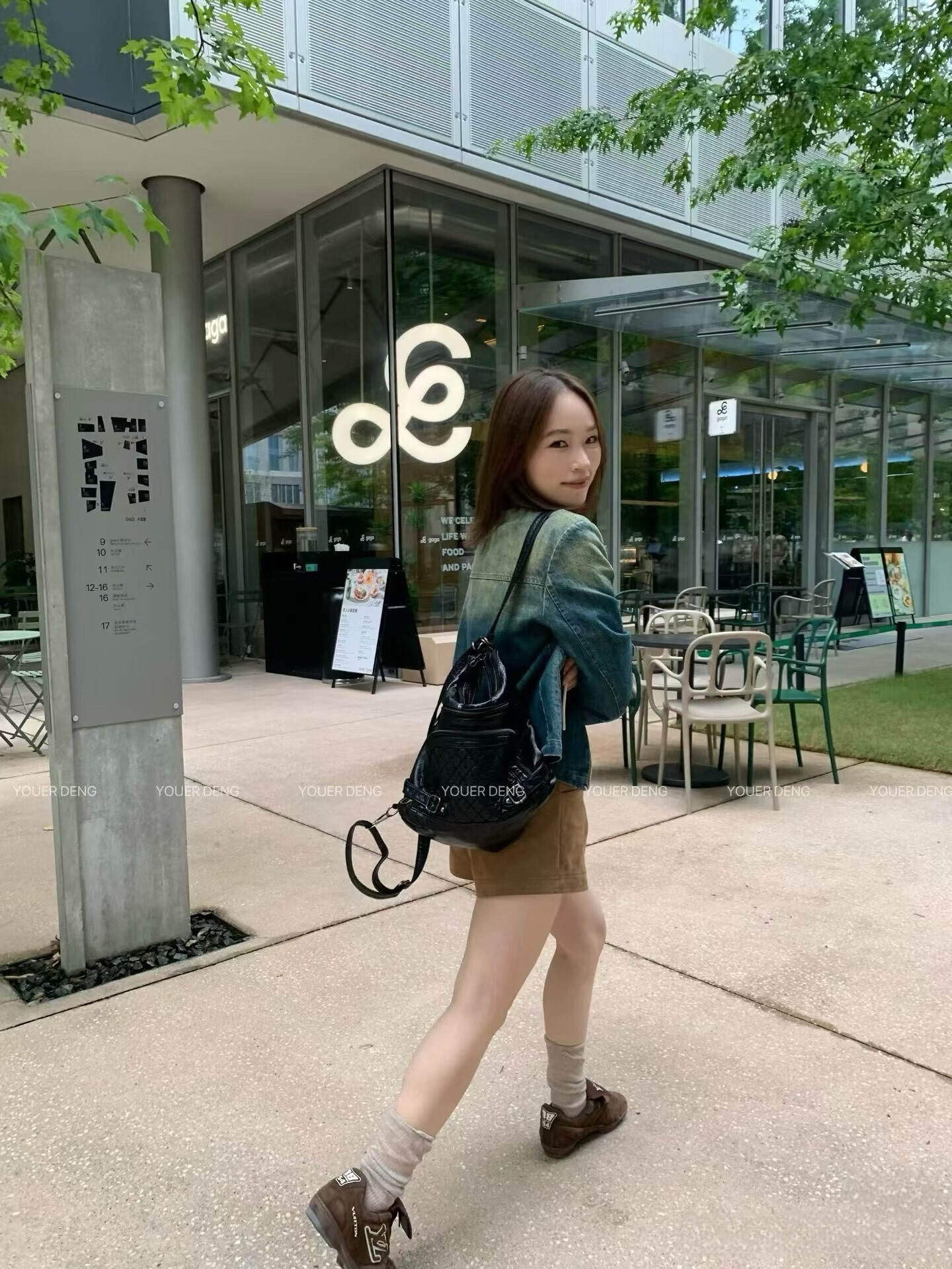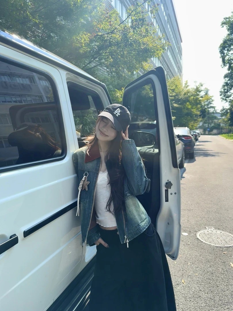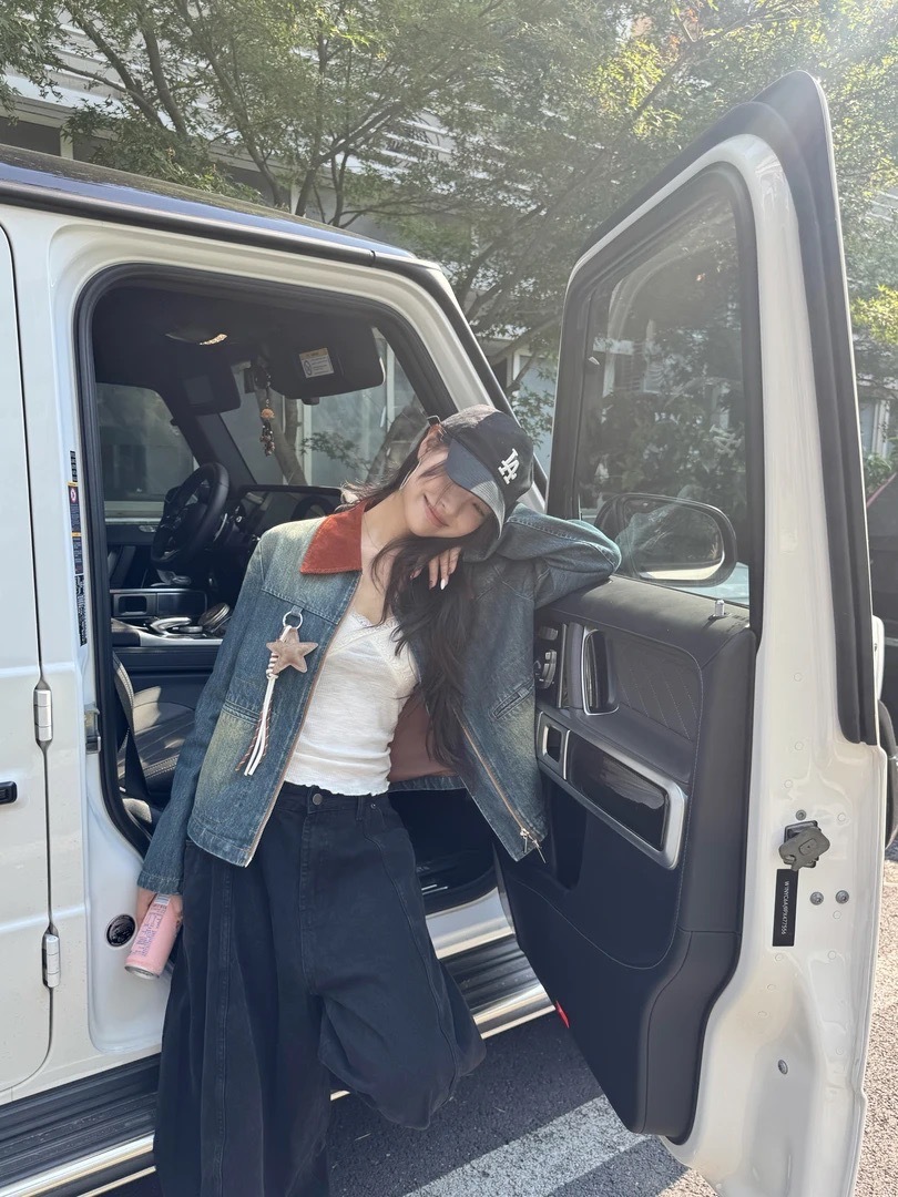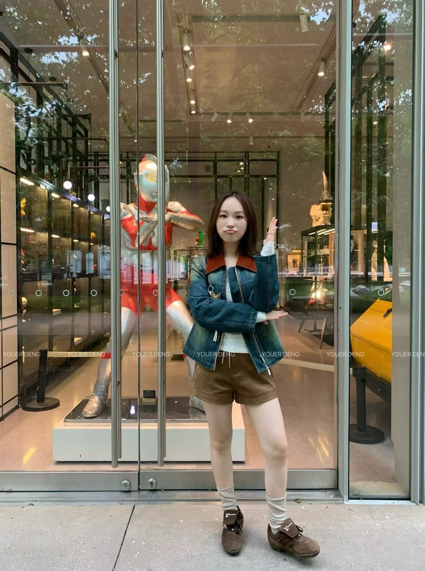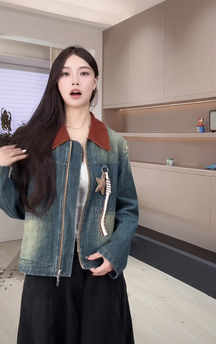 *o-ha-you*【FLKDD2025054】【復古牛仔】街頭撞色領翻領外套小眾帥氣機車上衣秋季新夾克