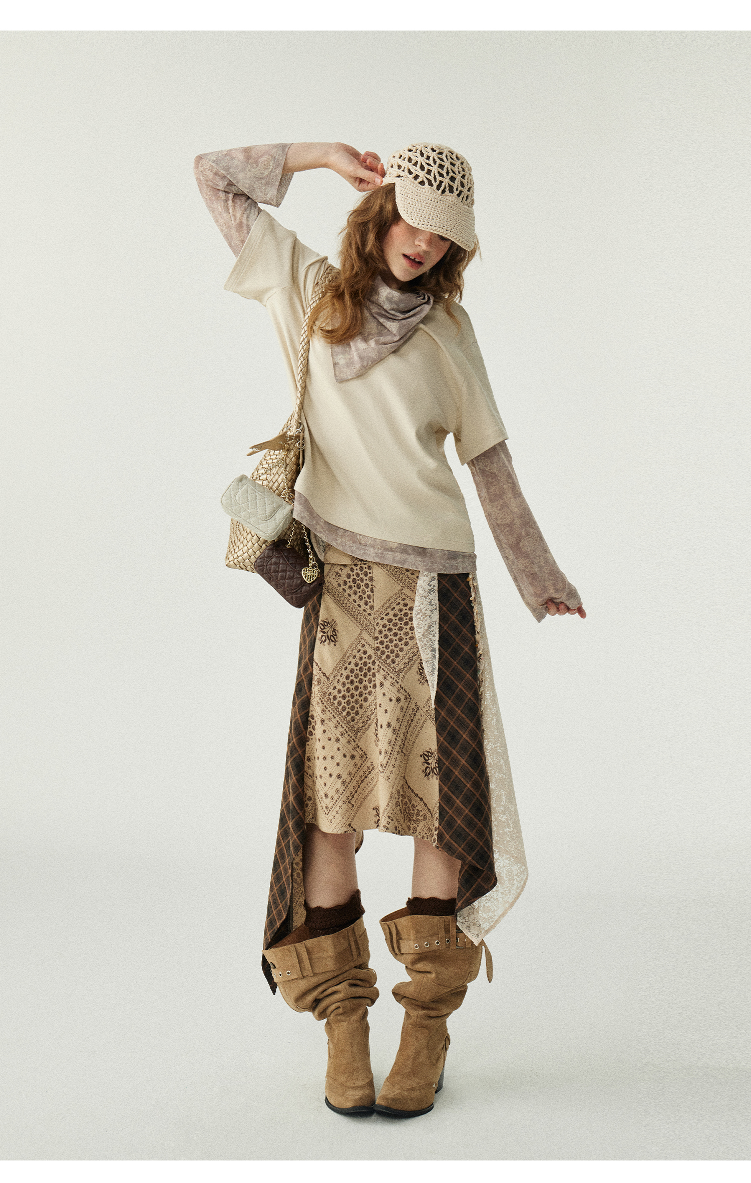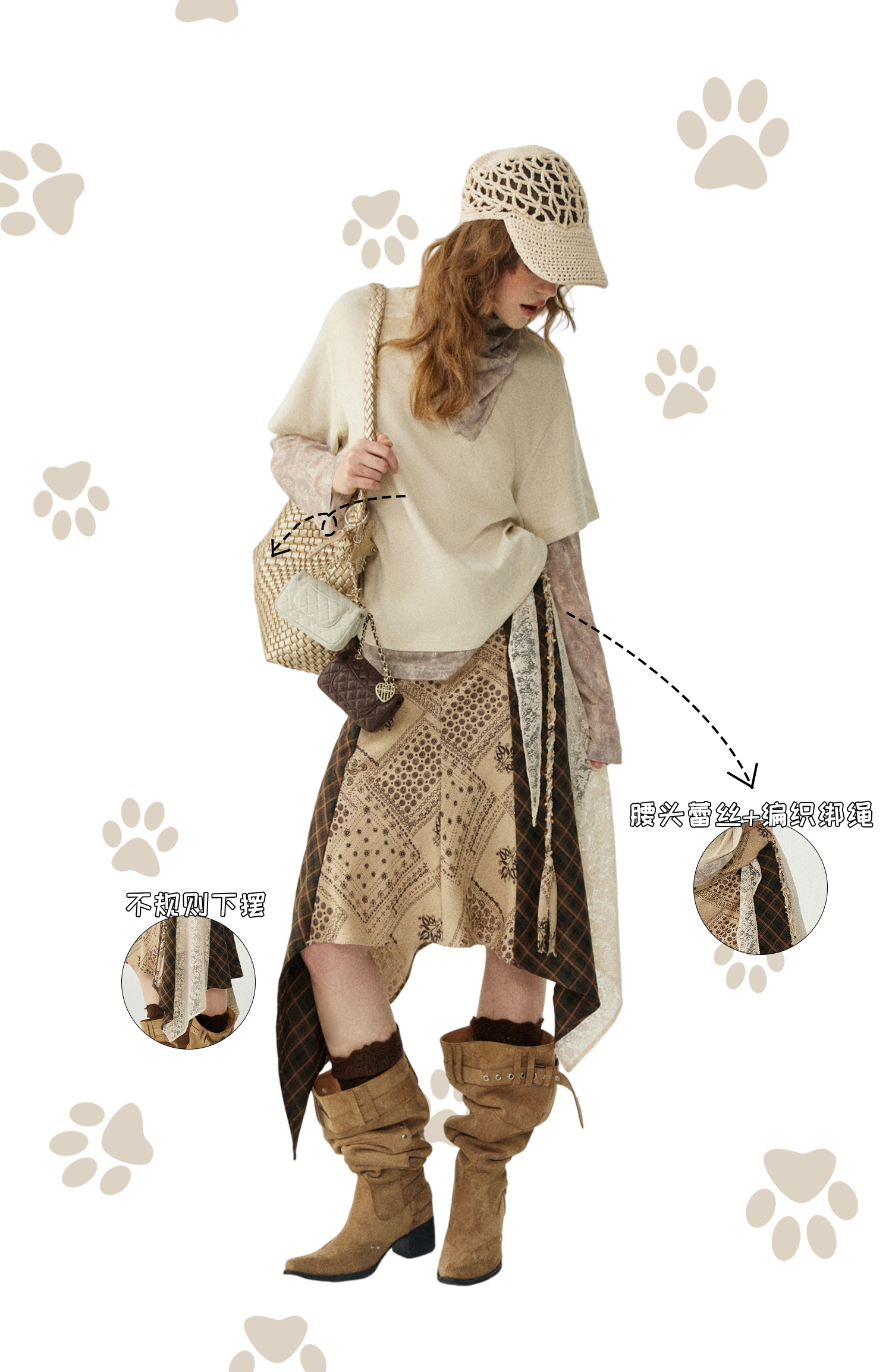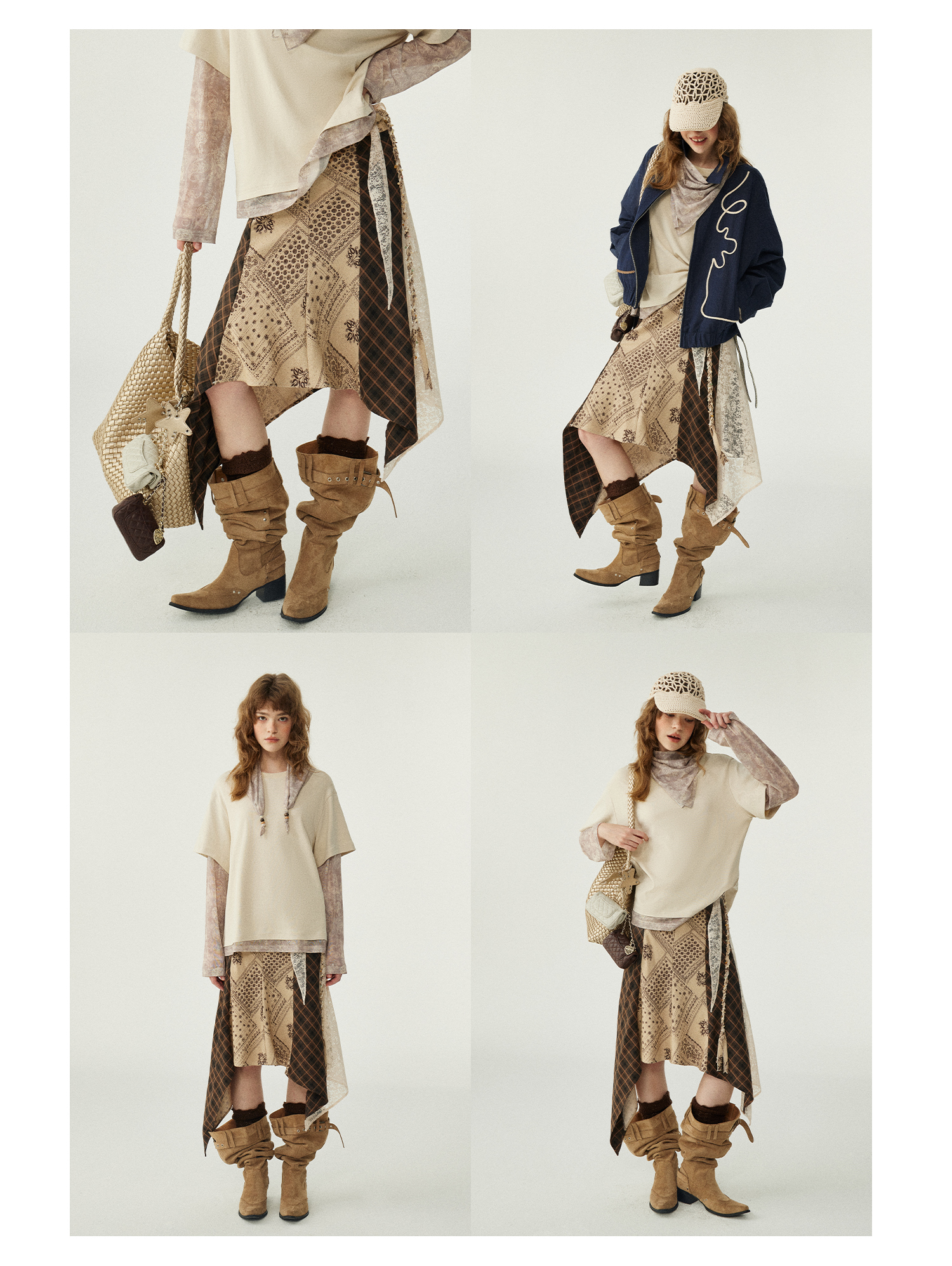 *o-ha-you*【FLKDD2025058】2025秋季新韓系波嘻風不規則拼接半身裙設計感小眾半裙潮