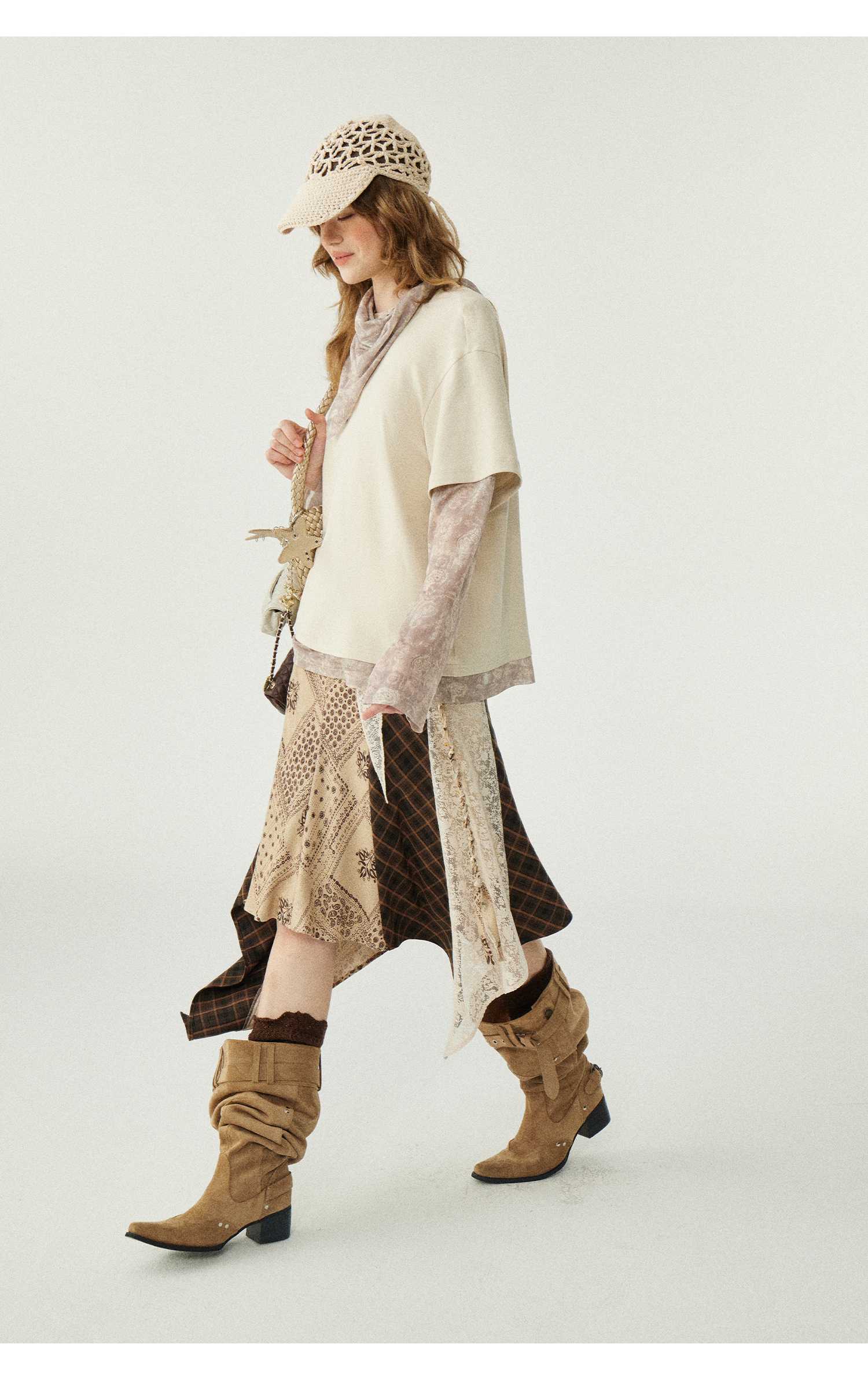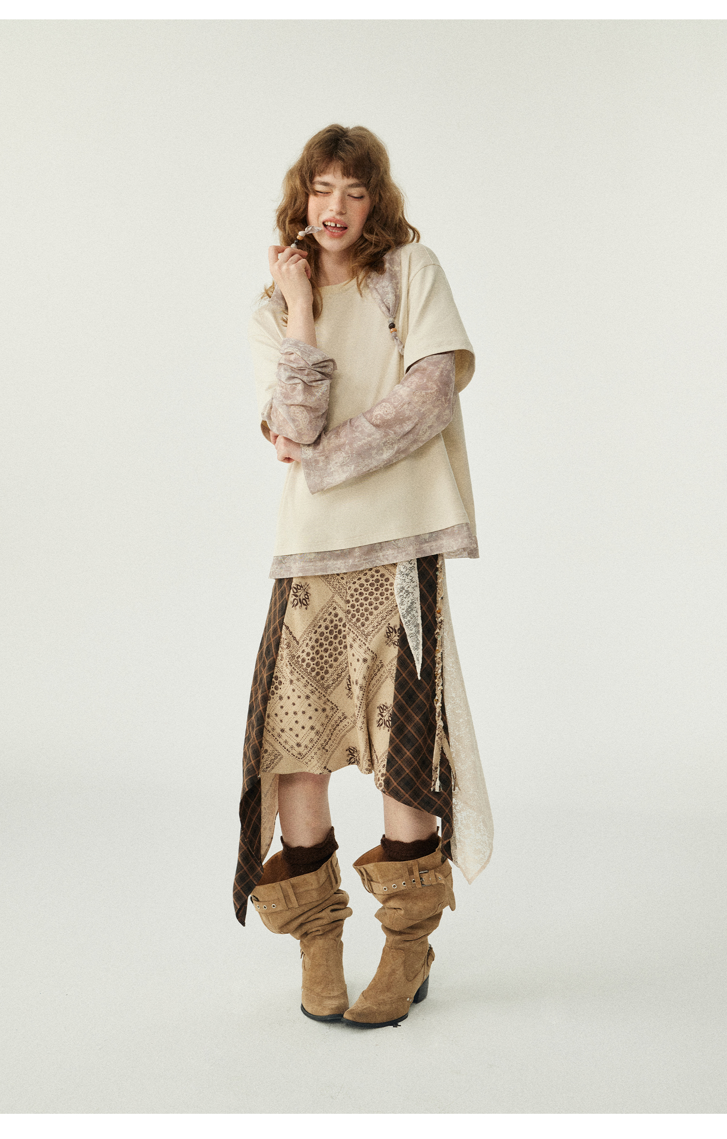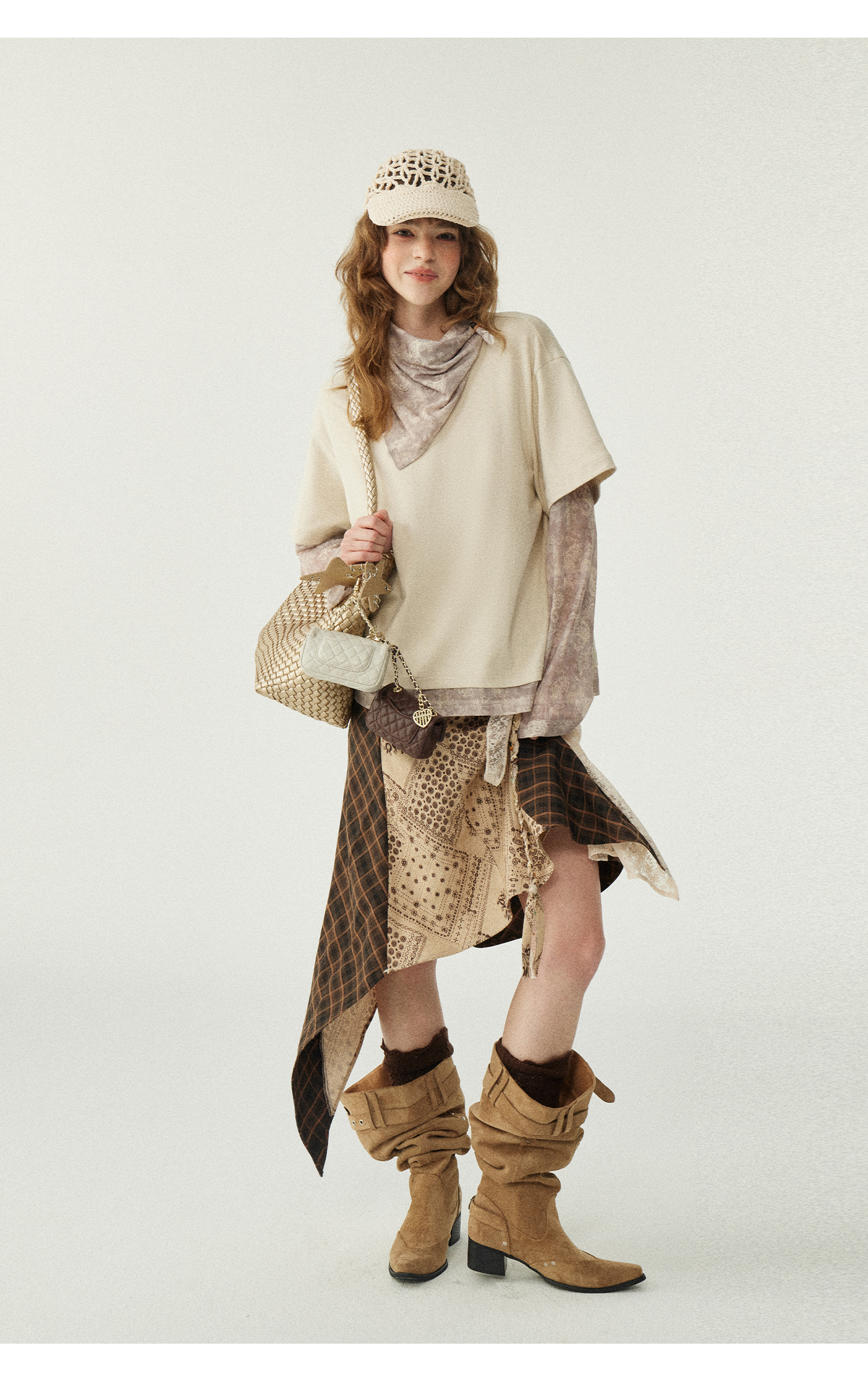 *o-ha-you*【FLKDD2025058】2025秋季新韓系波嘻風不規則拼接半身裙設計感小眾半裙潮
