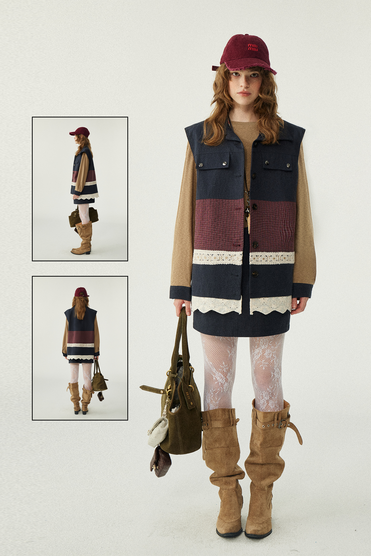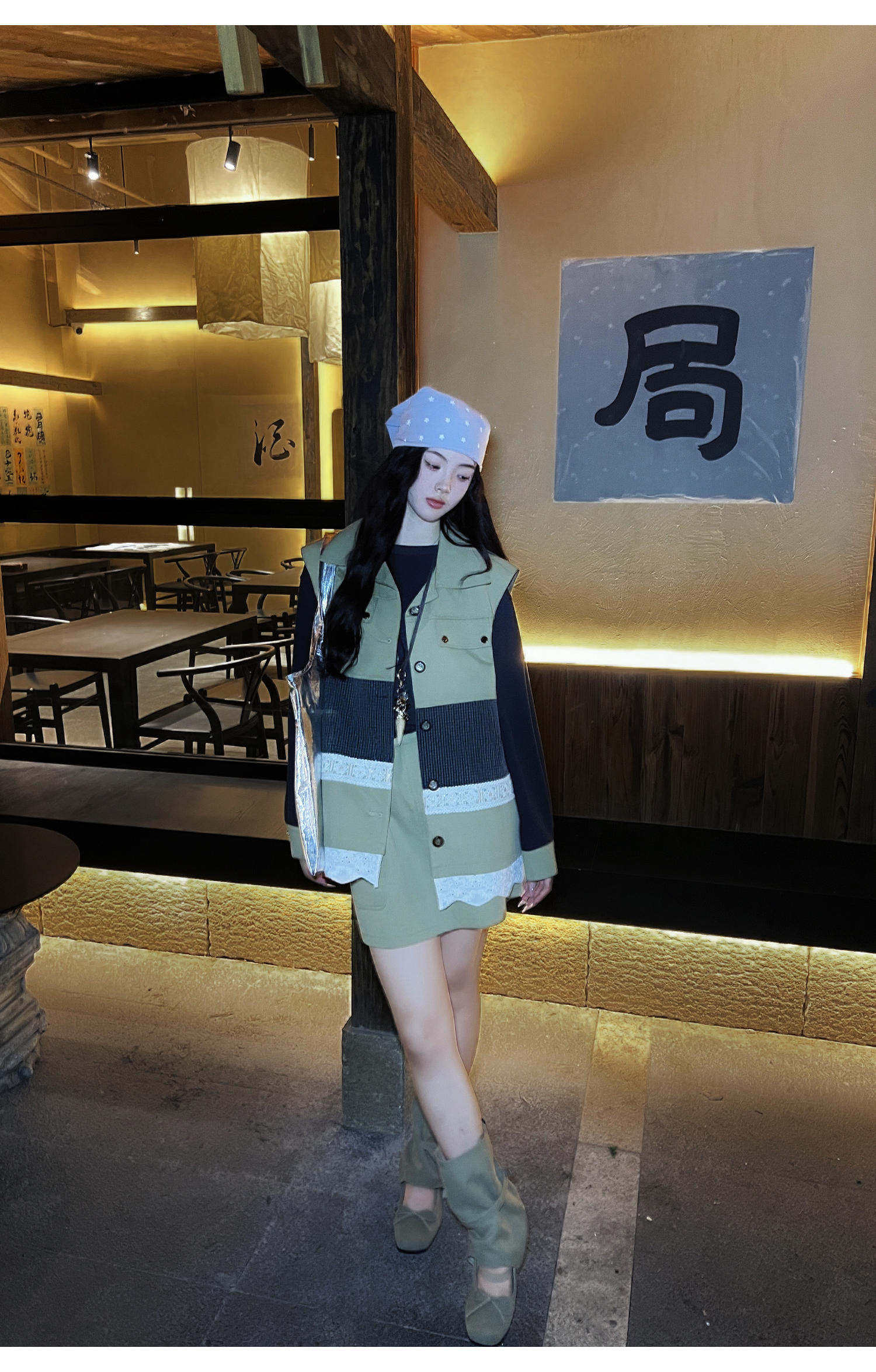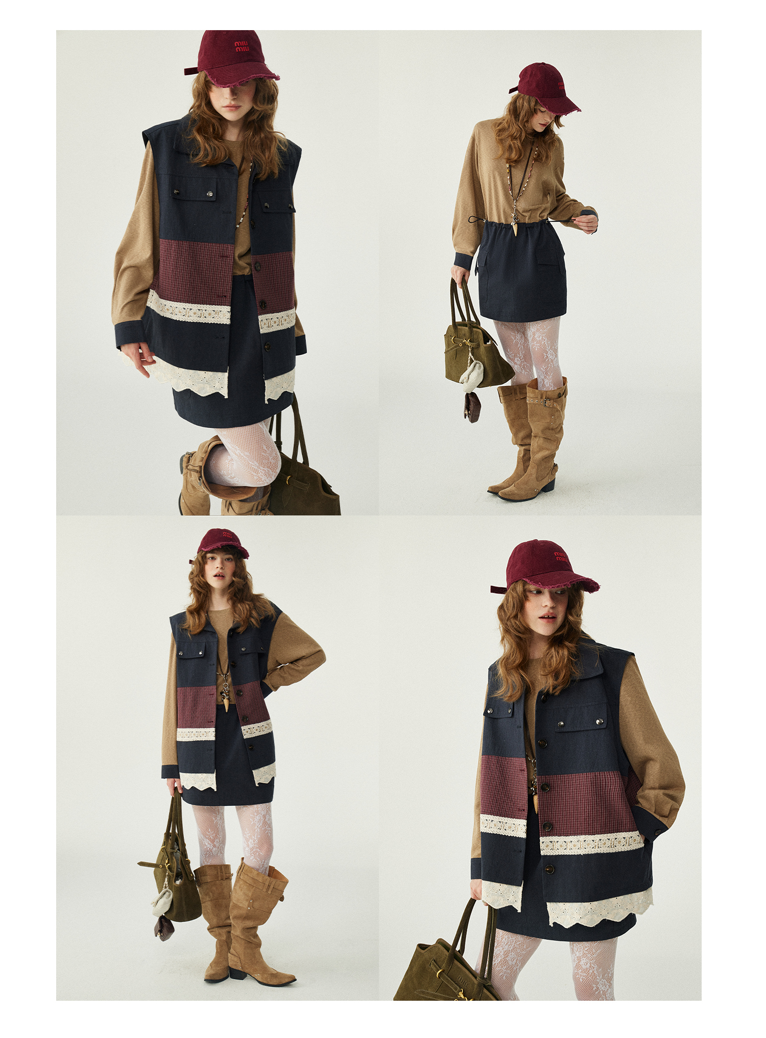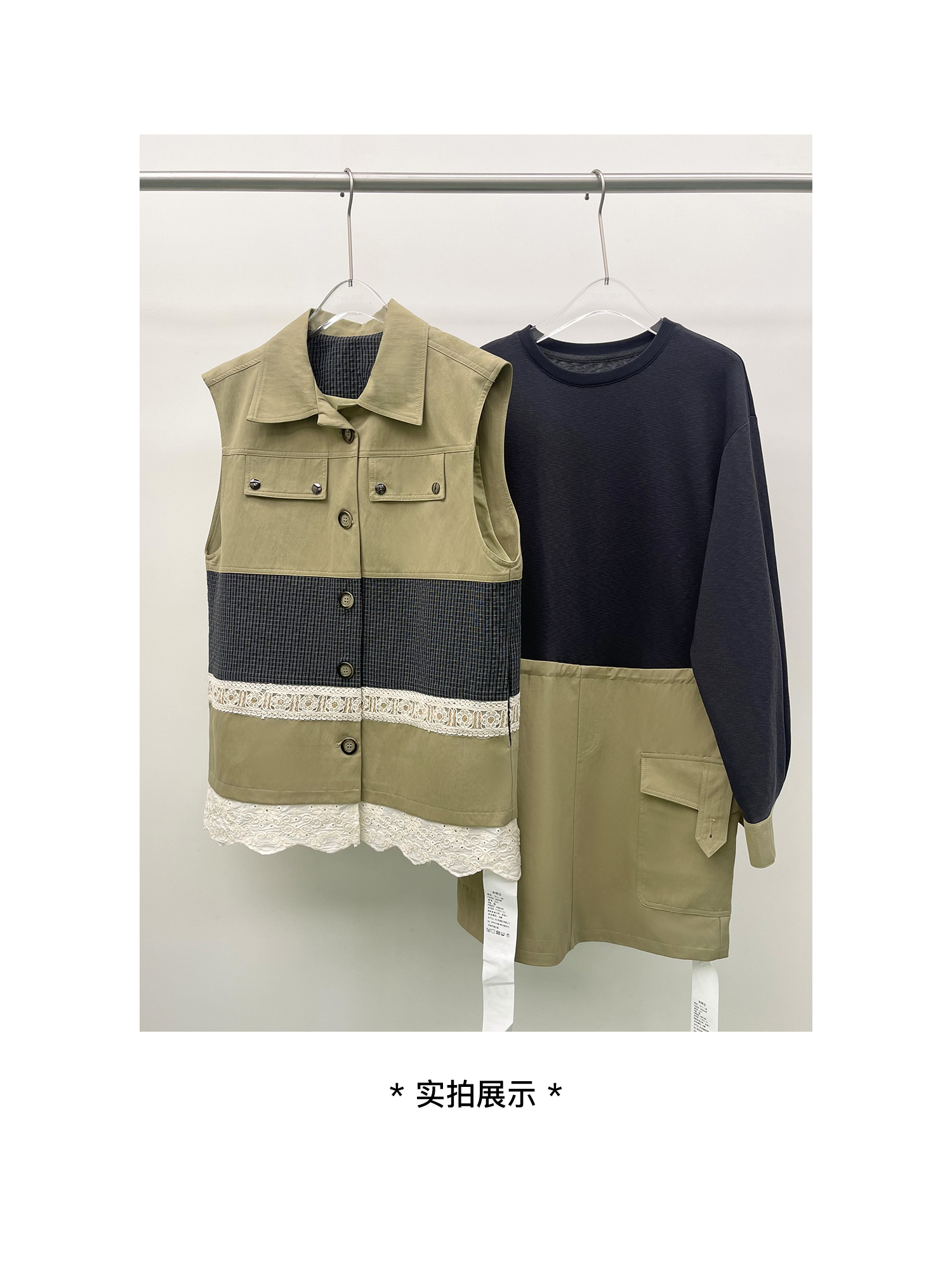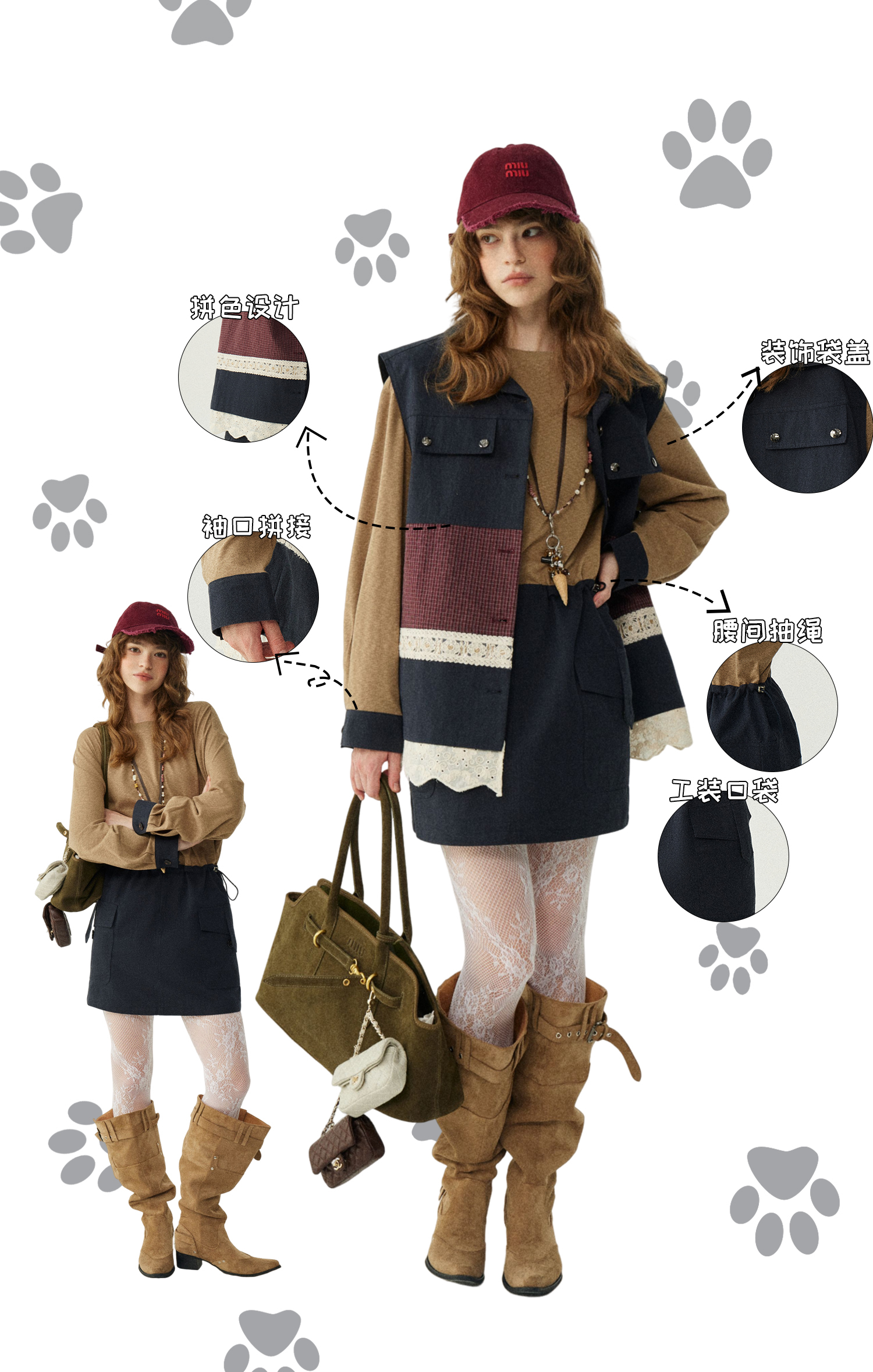 *o-ha-you*【FLKDD2025063】2025秋季新款韓版撞色拼接復古工裝風連身裙馬甲背心套裝-2色