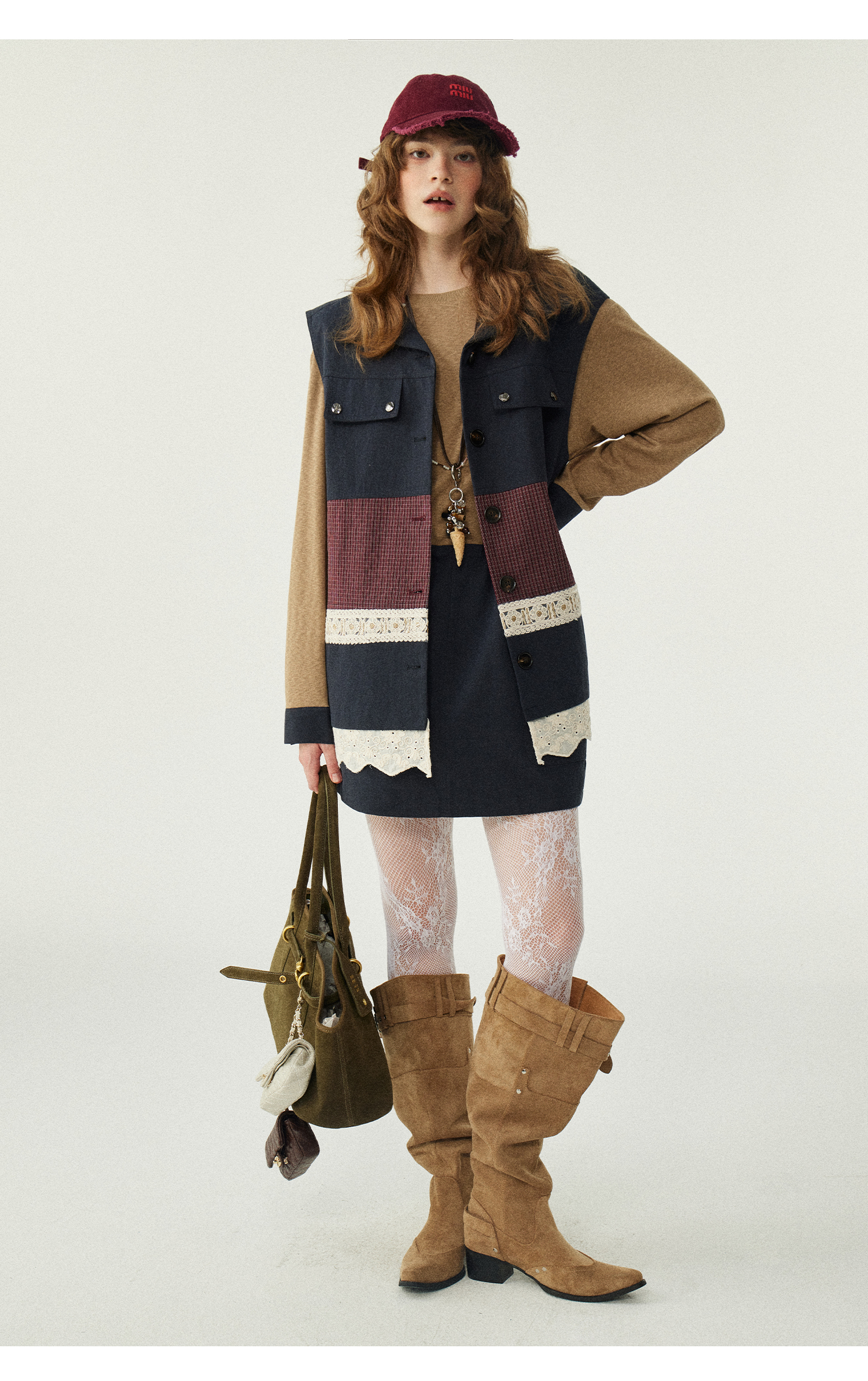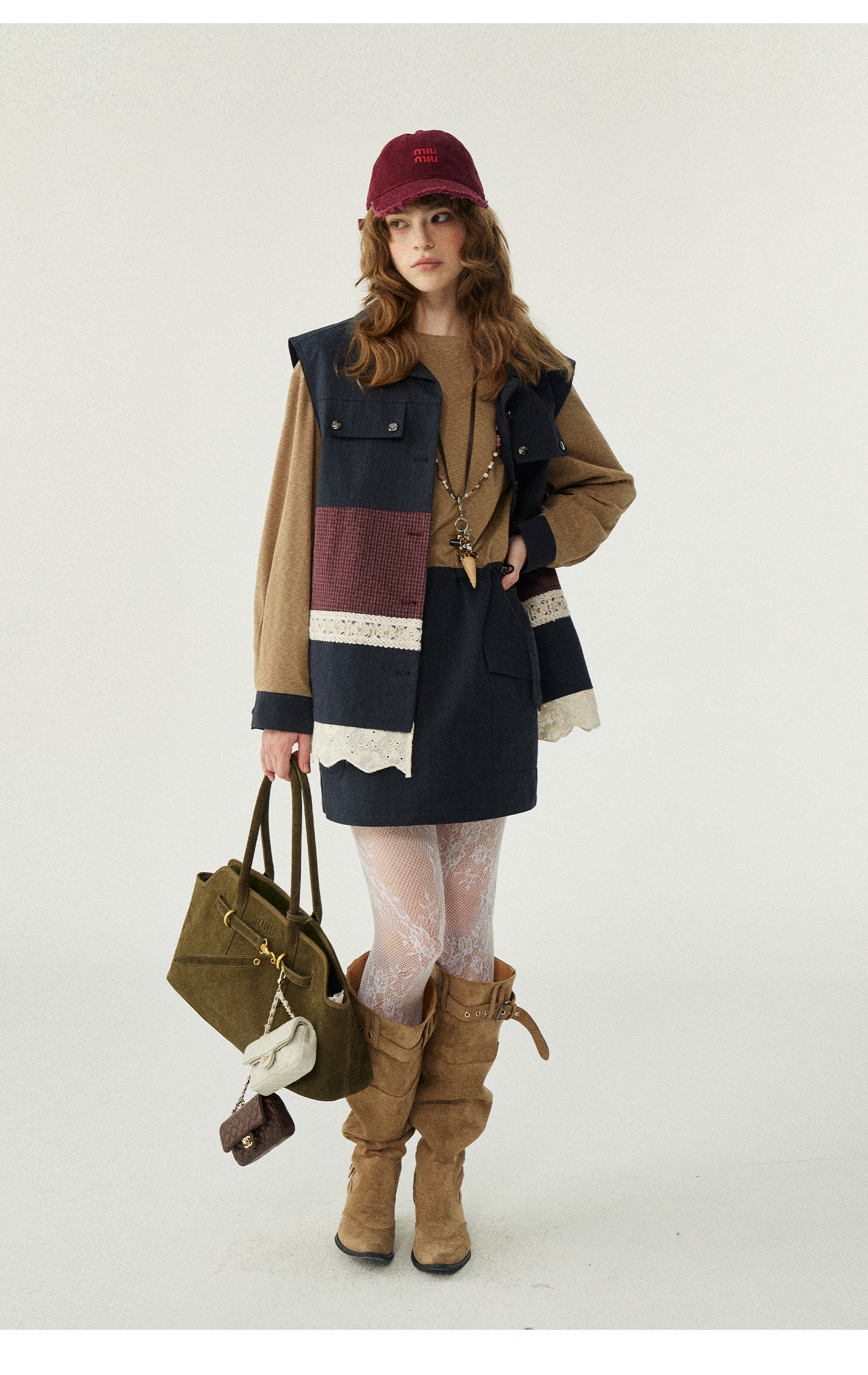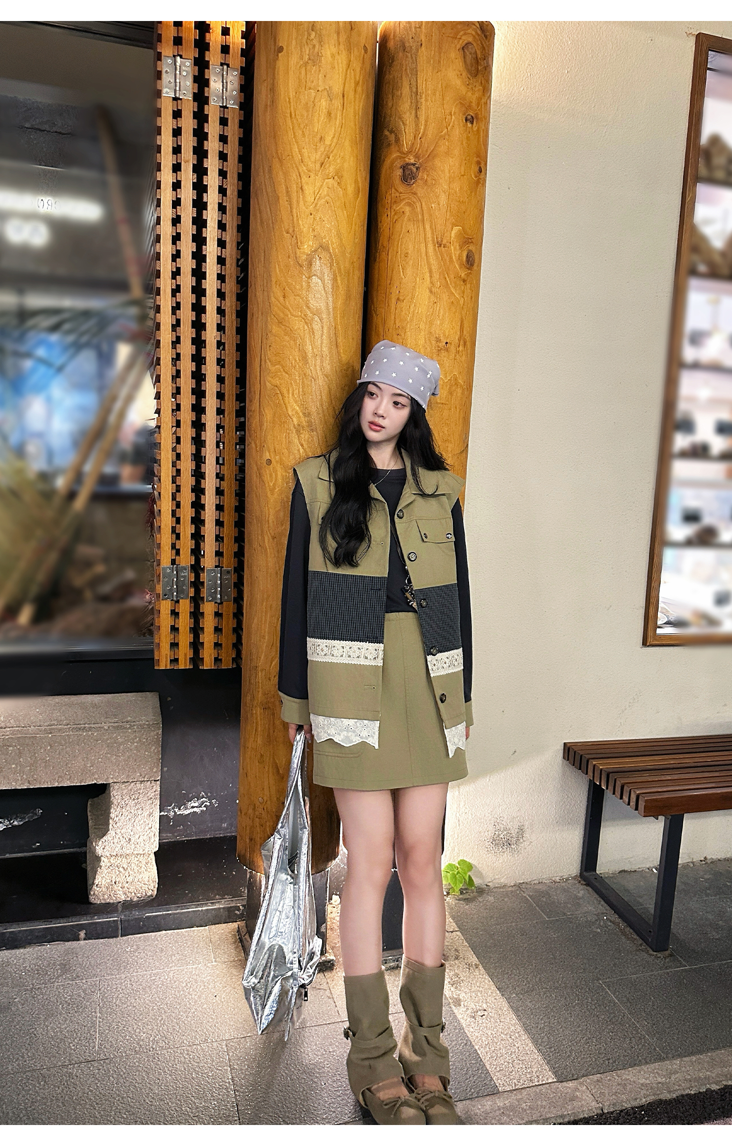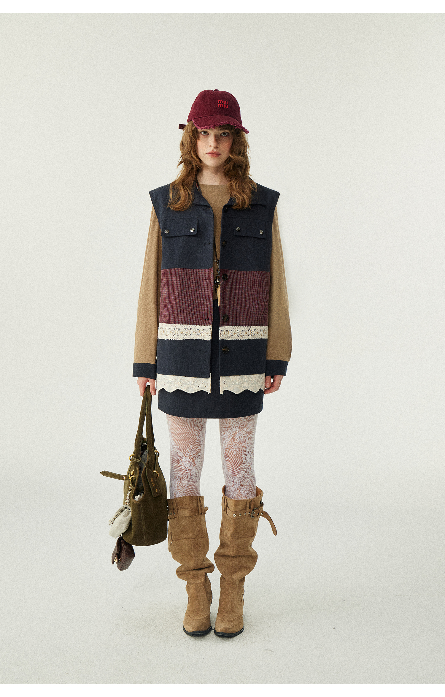 *o-ha-you*【FLKDD2025063】2025秋季新款韓版撞色拼接復古工裝風連身裙馬甲背心套裝-2色