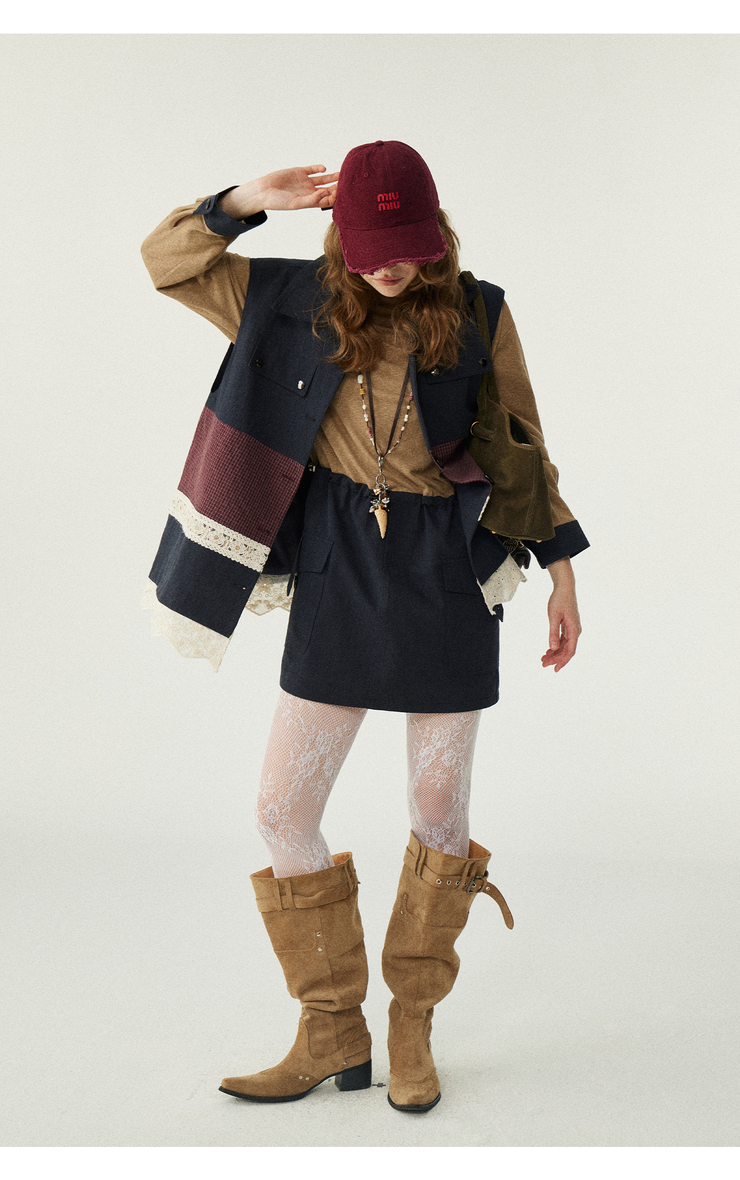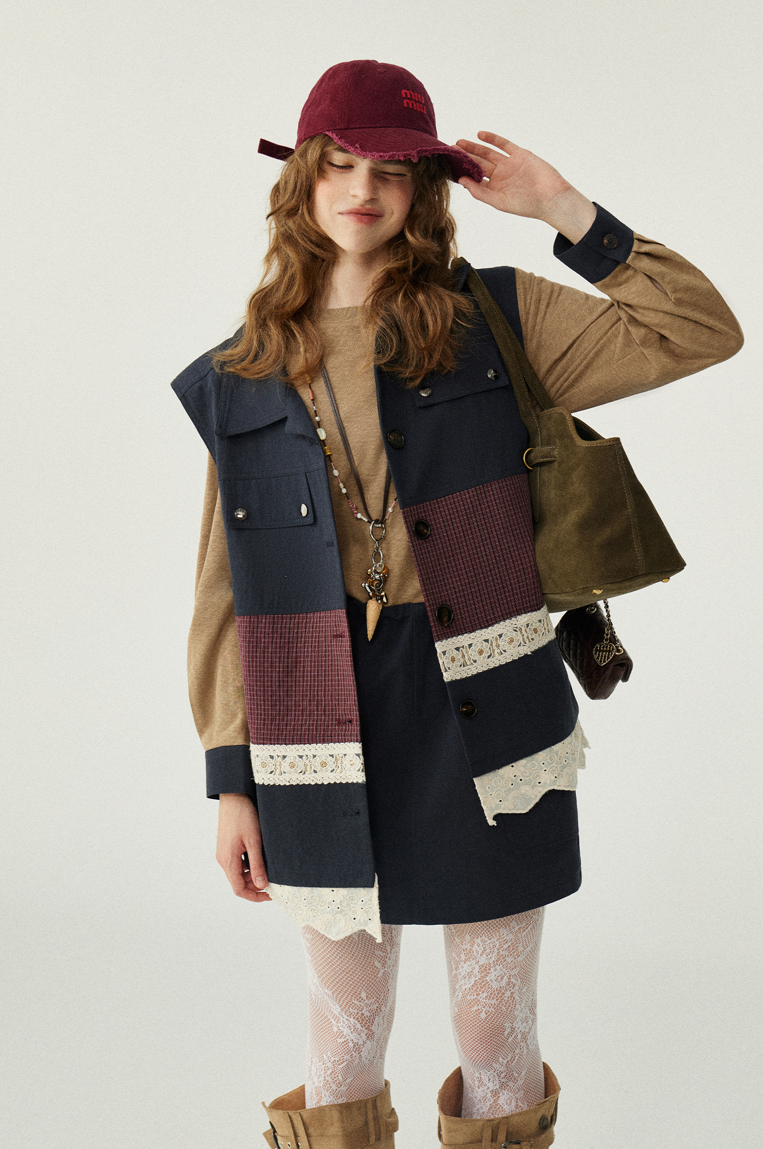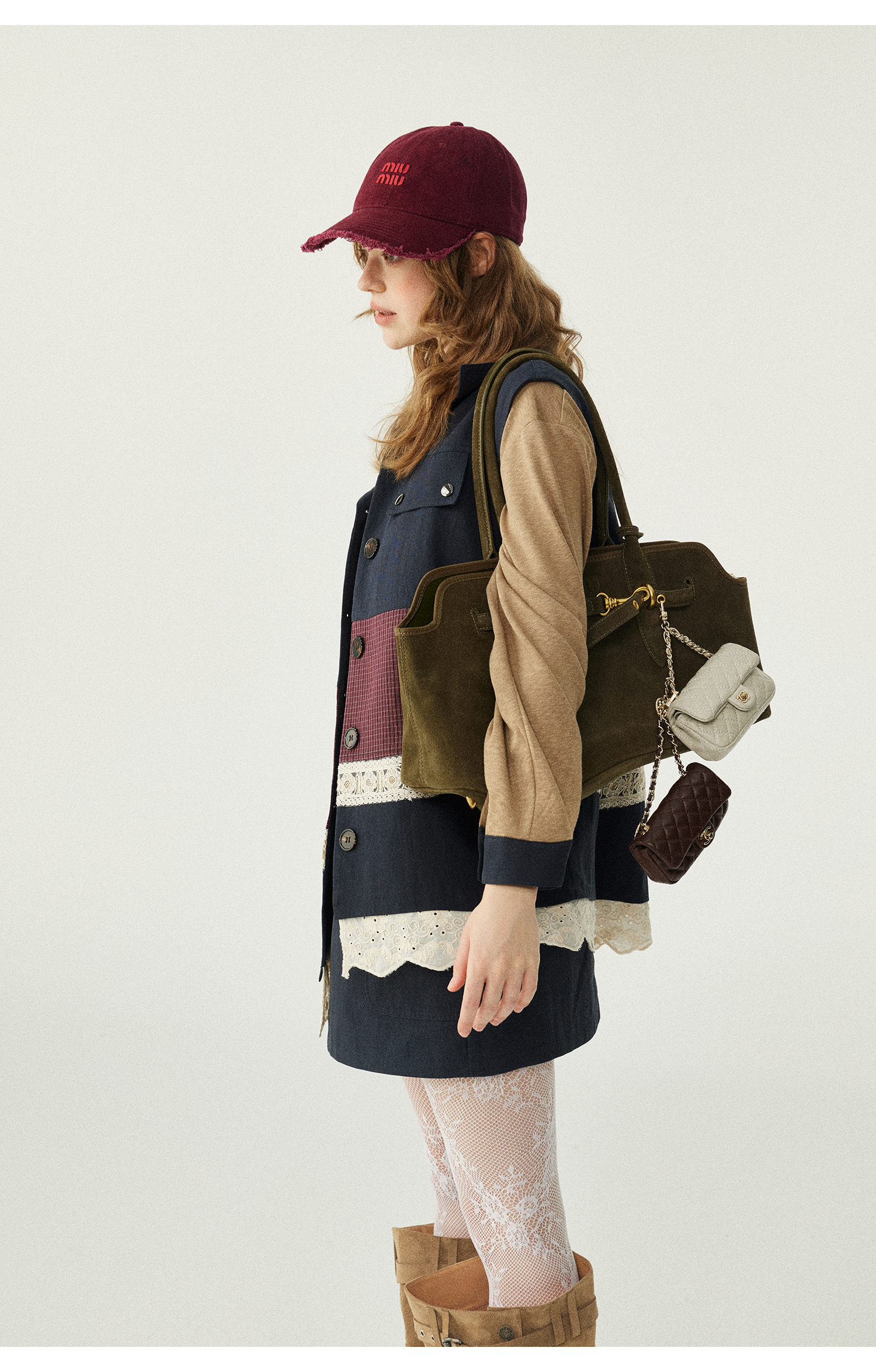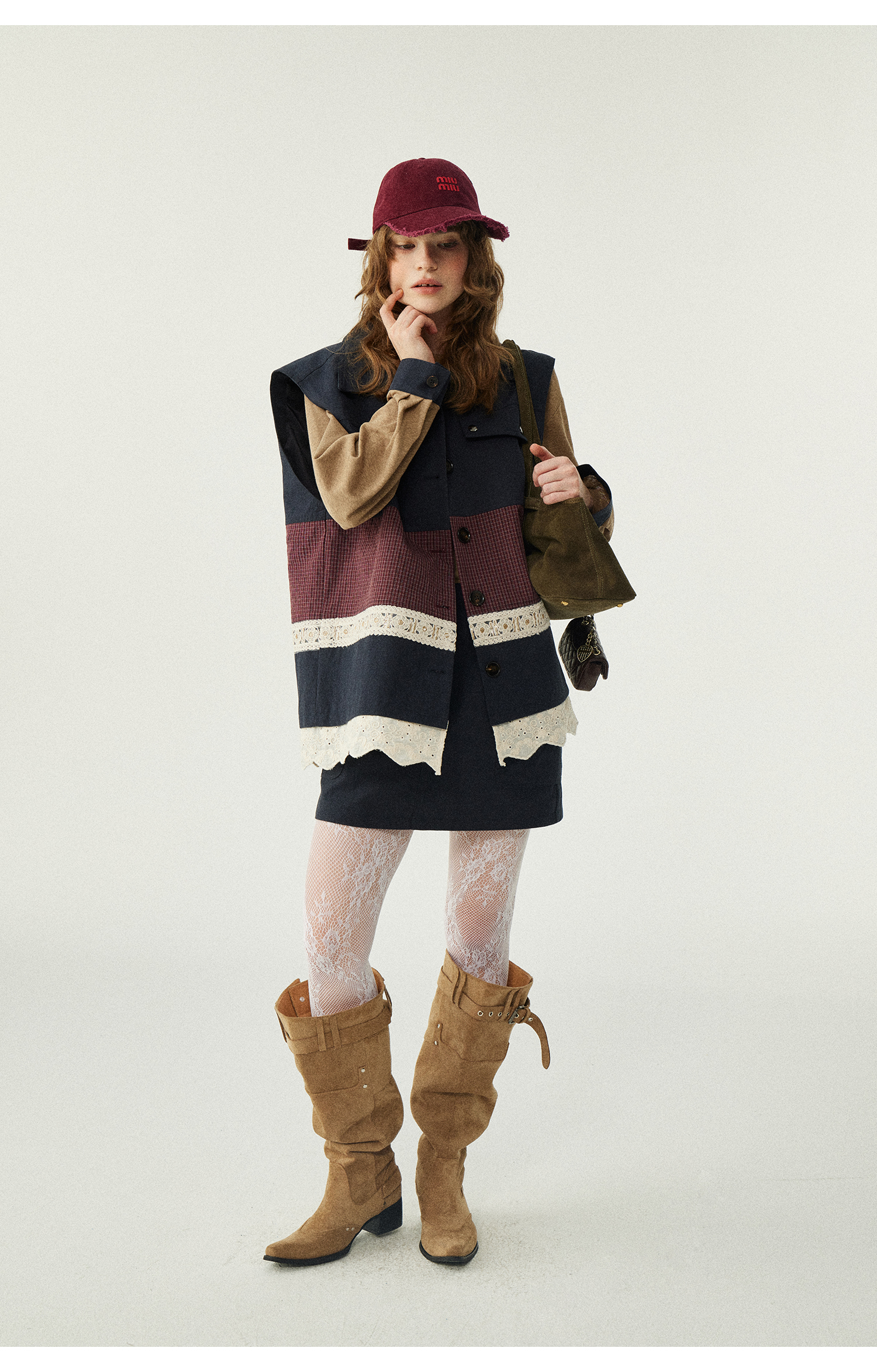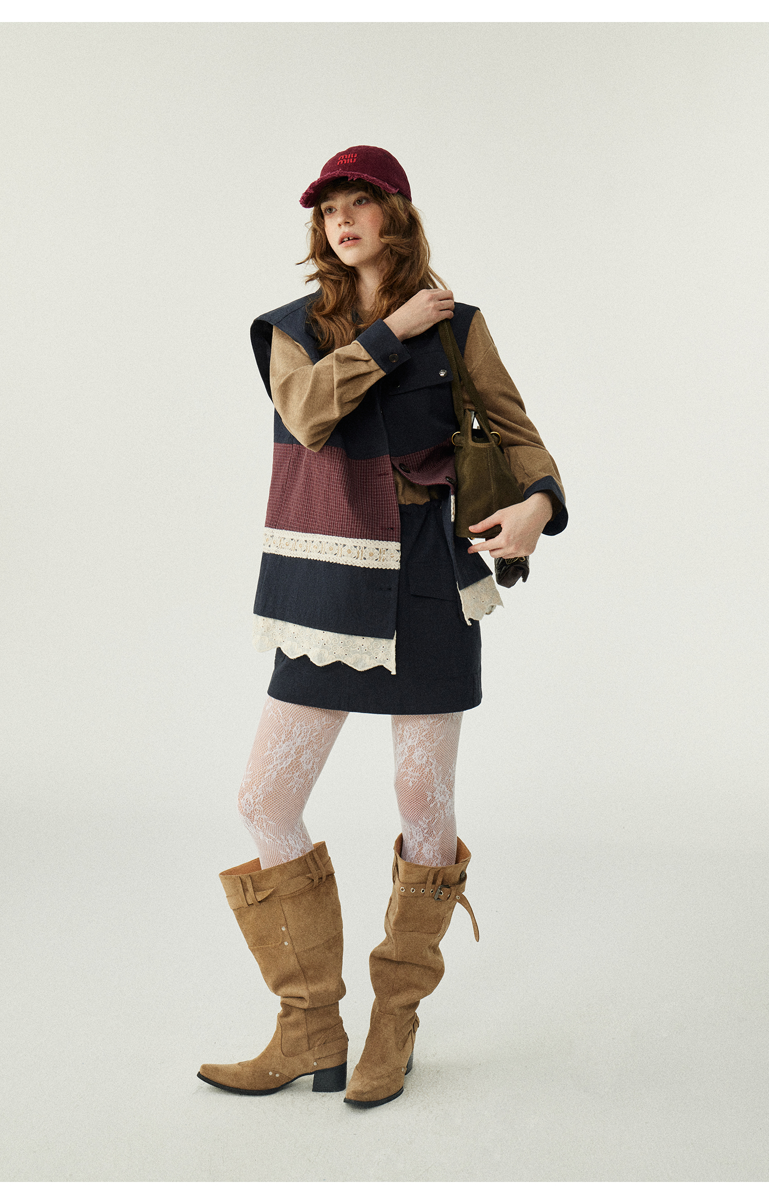 *o-ha-you*【FLKDD2025063】2025秋季新款韓版撞色拼接復古工裝風連身裙馬甲背心套裝-2色
