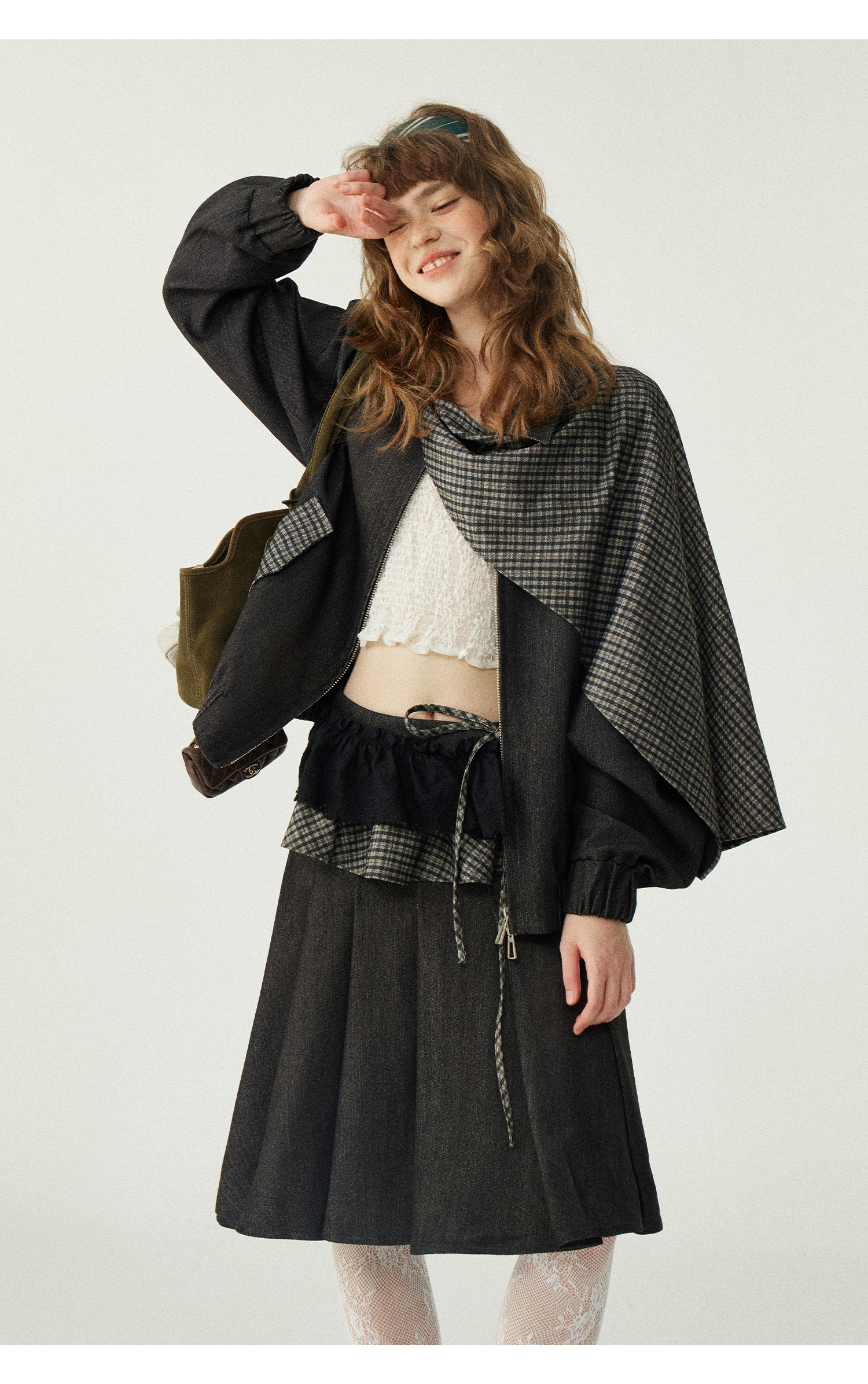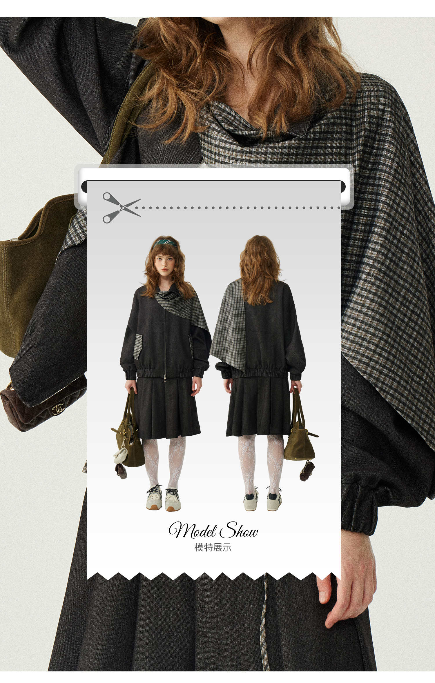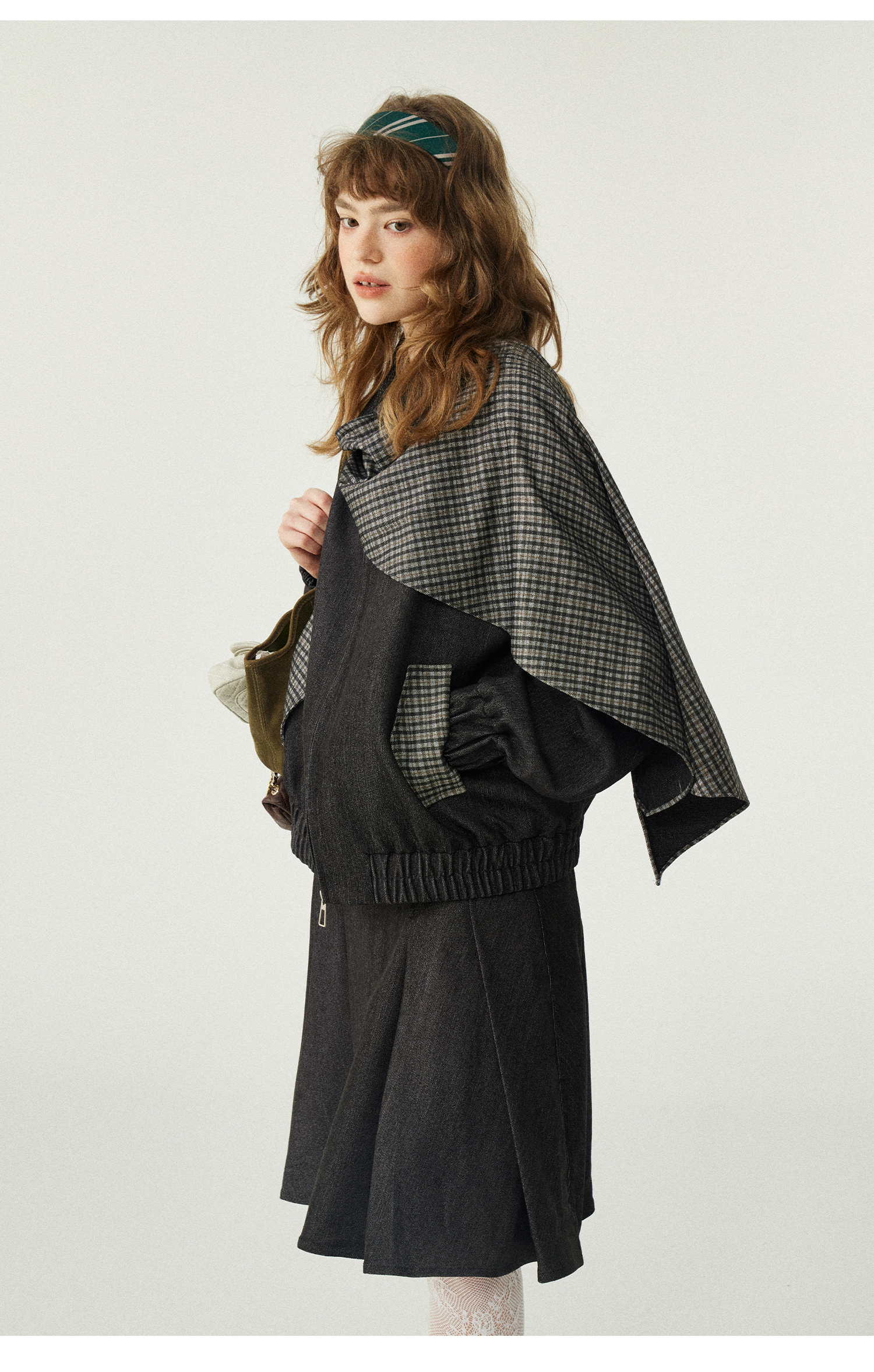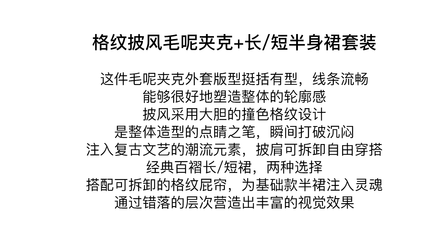 *o-ha-you*【FLKDD2025067】2025秋季新款設計感小眾格紋披風毛呢夾克外套女+半身裙套裝