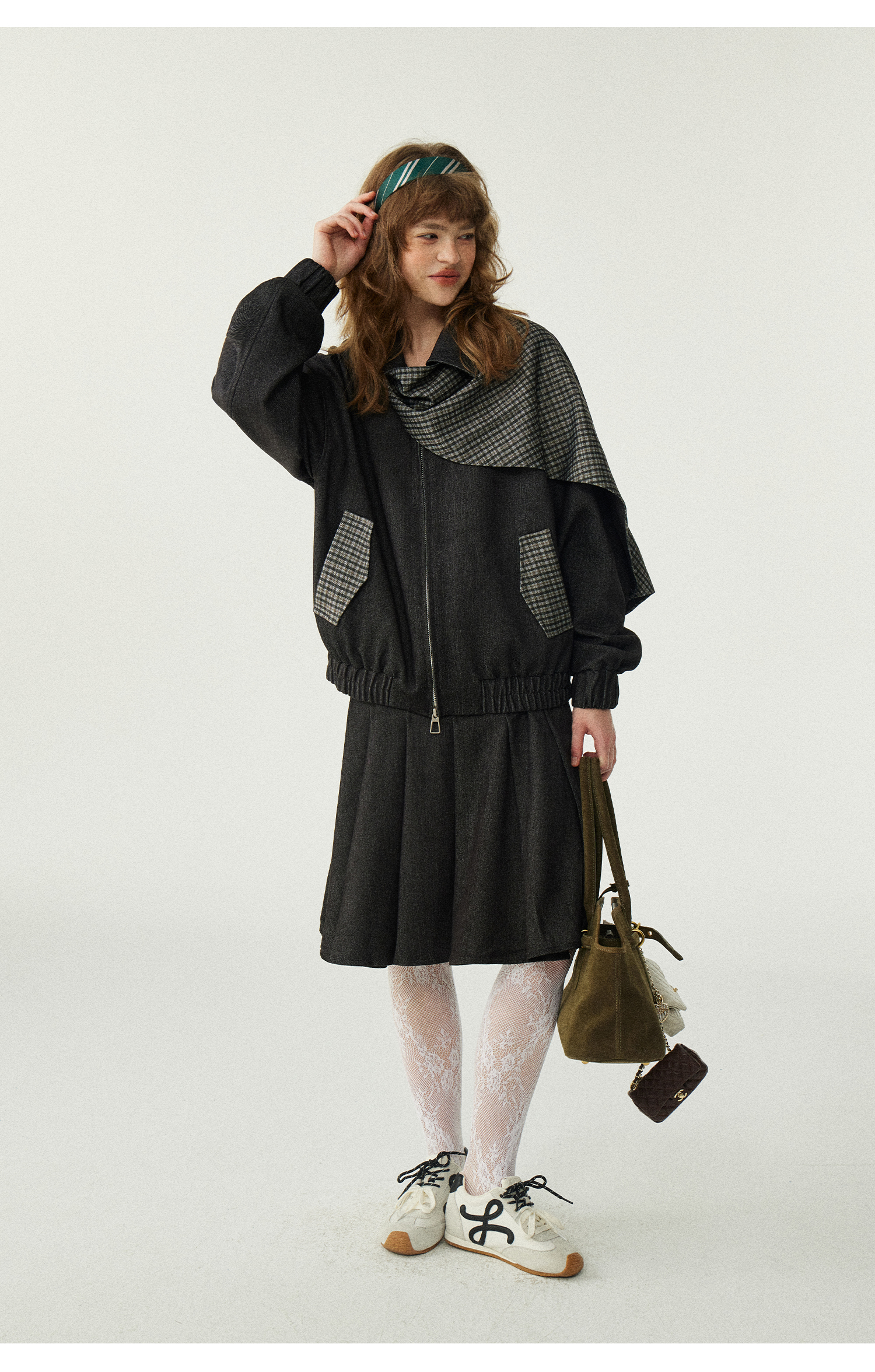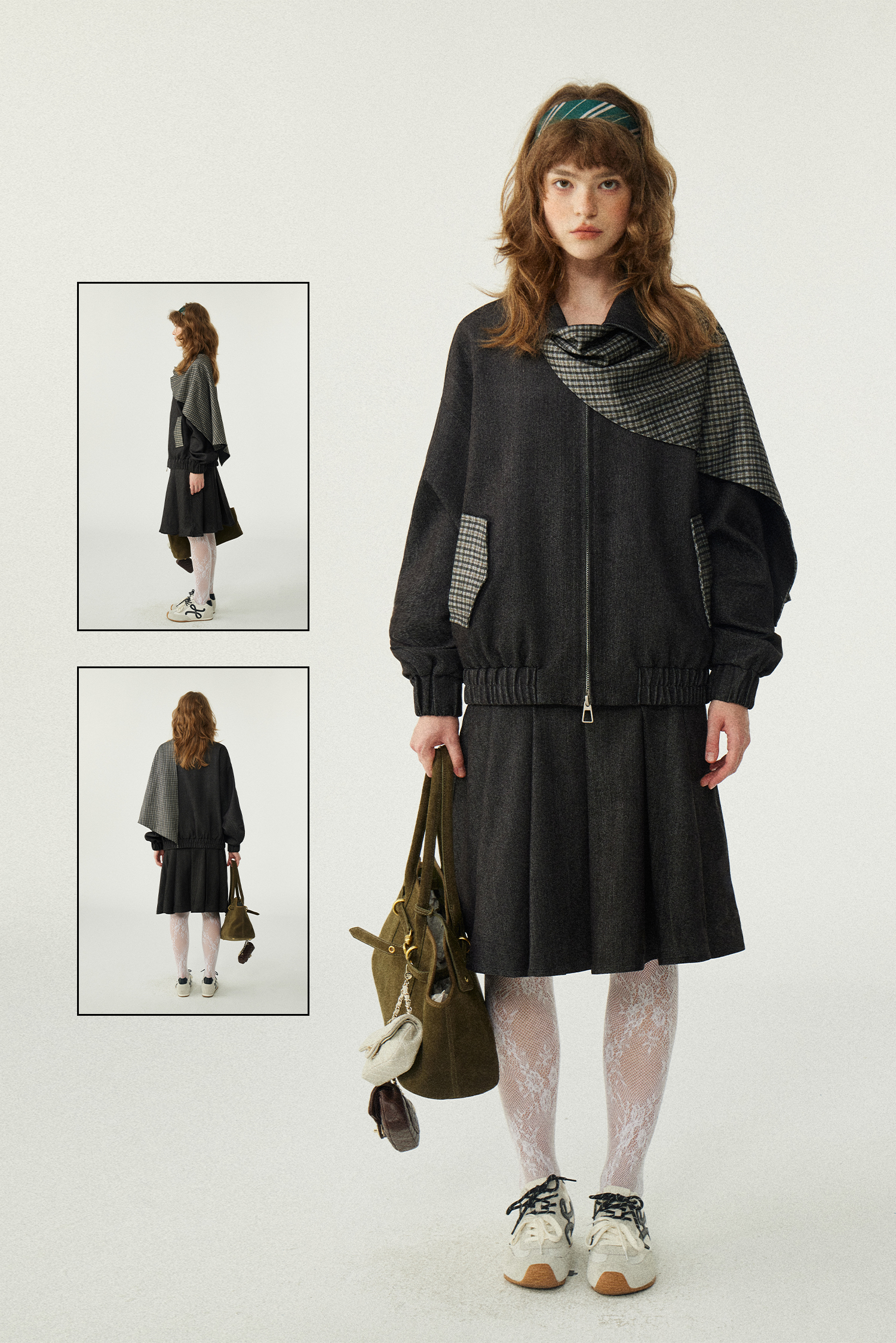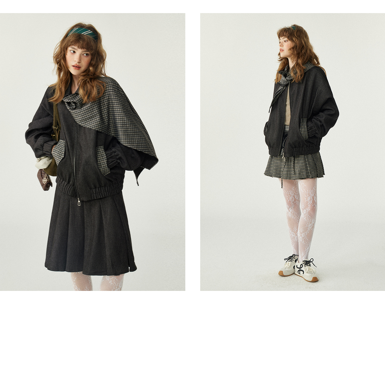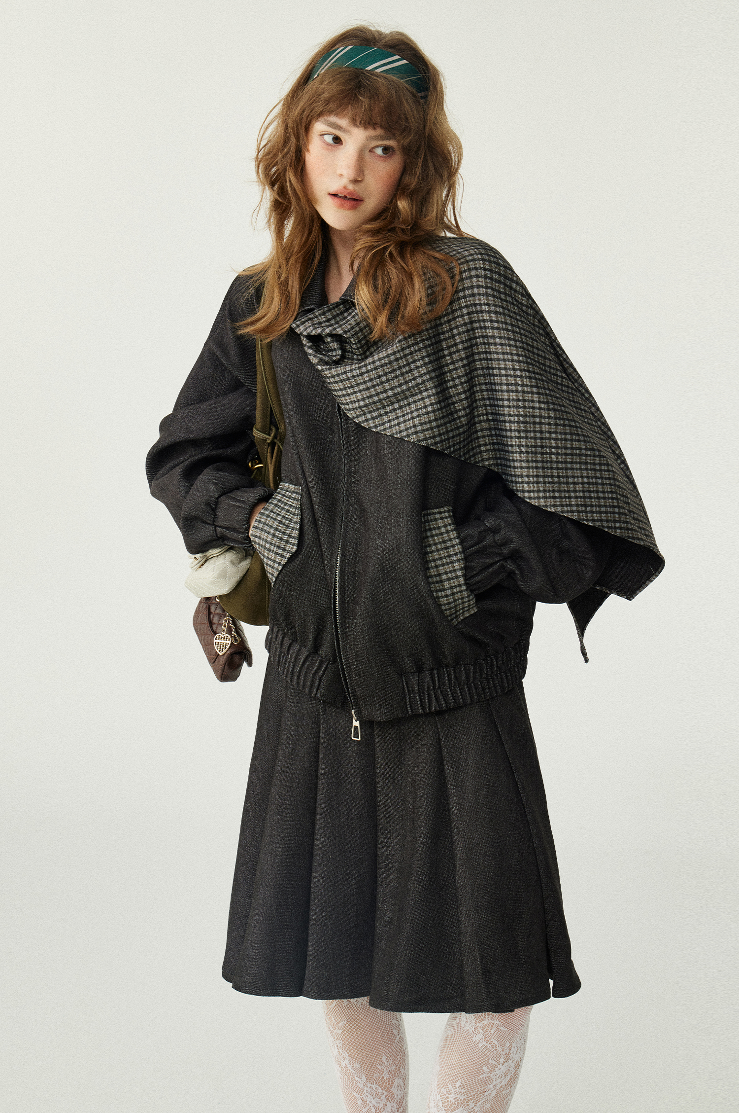 *o-ha-you*【FLKDD2025067】2025秋季新款設計感小眾格紋披風毛呢夾克外套女+半身裙套裝