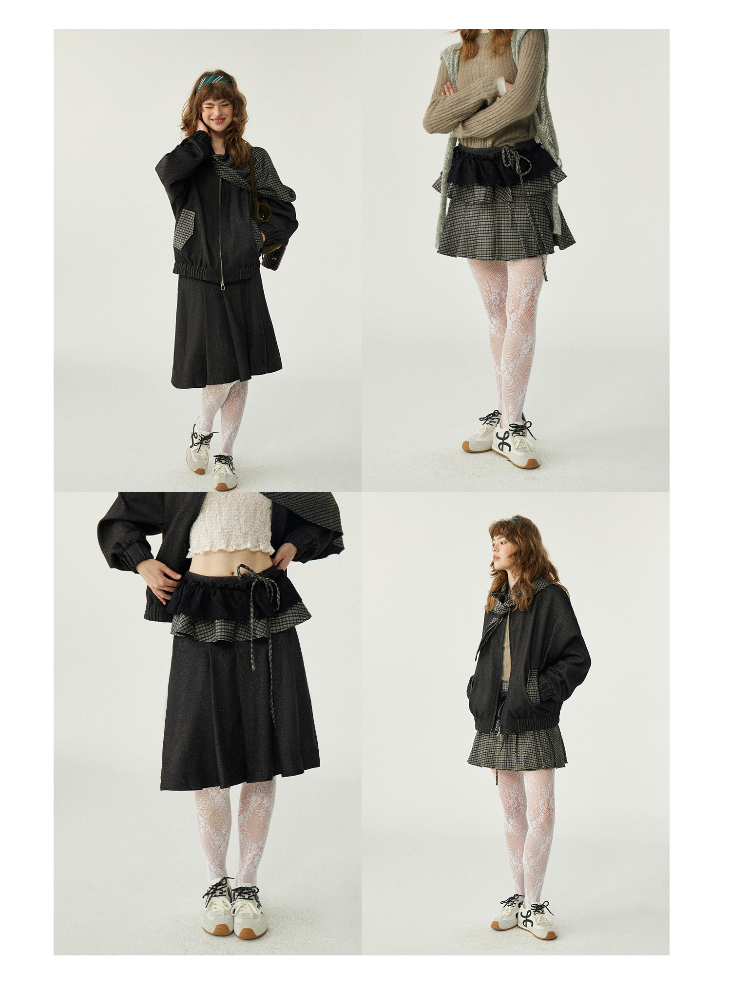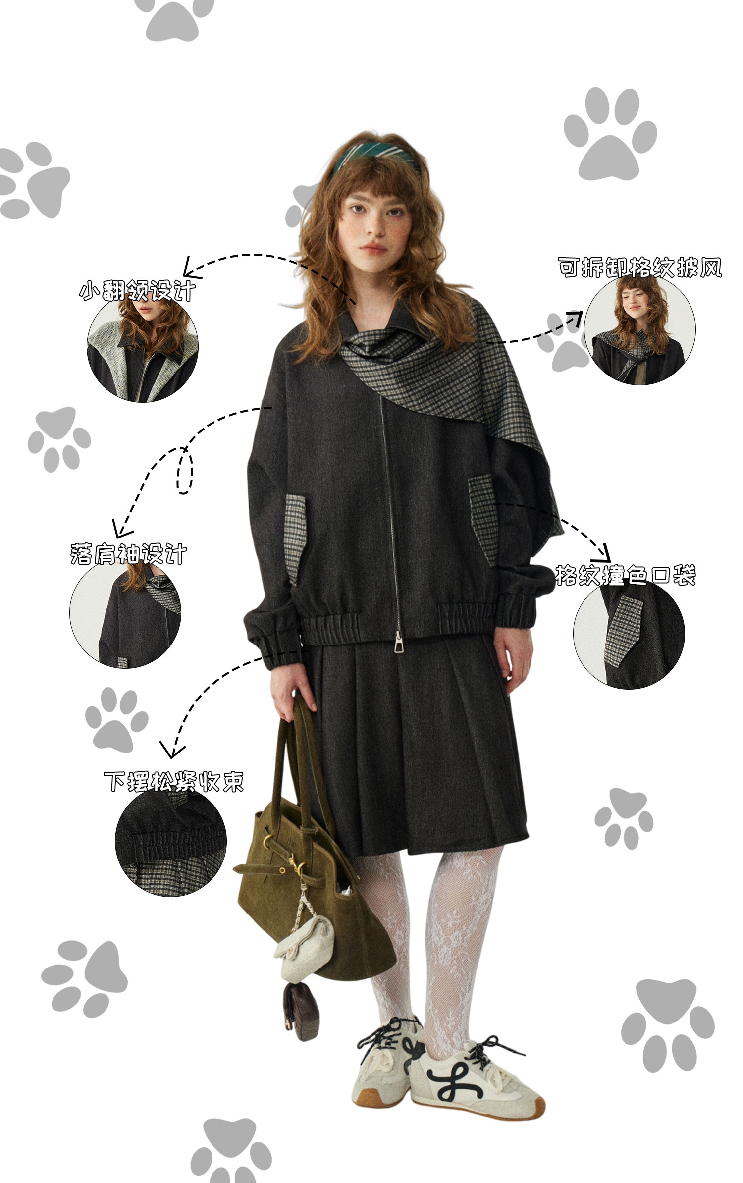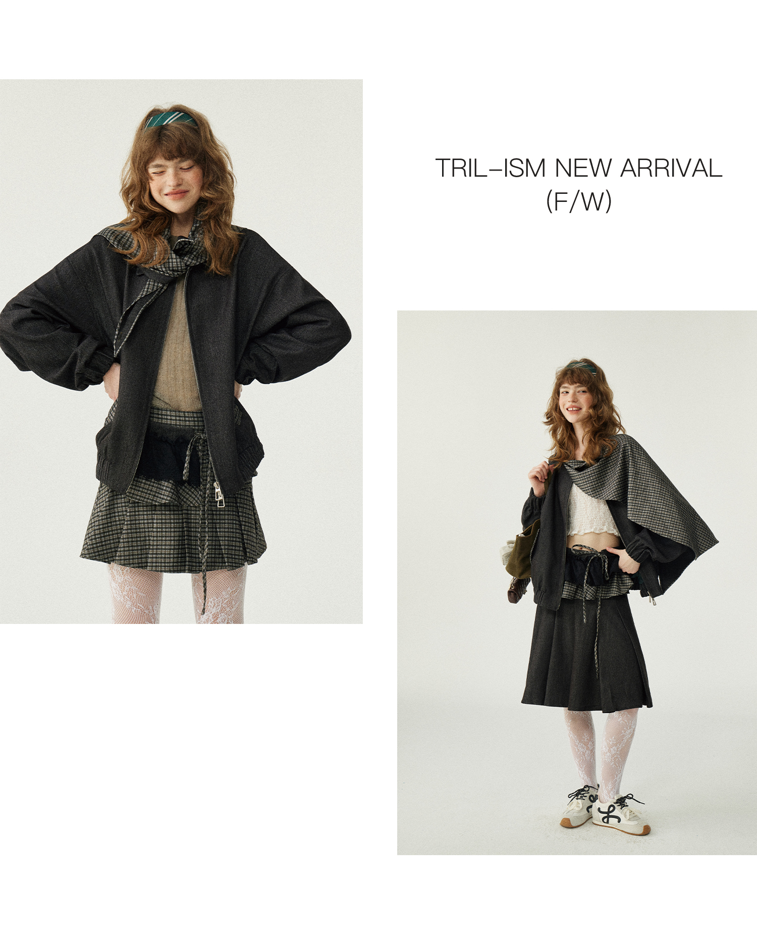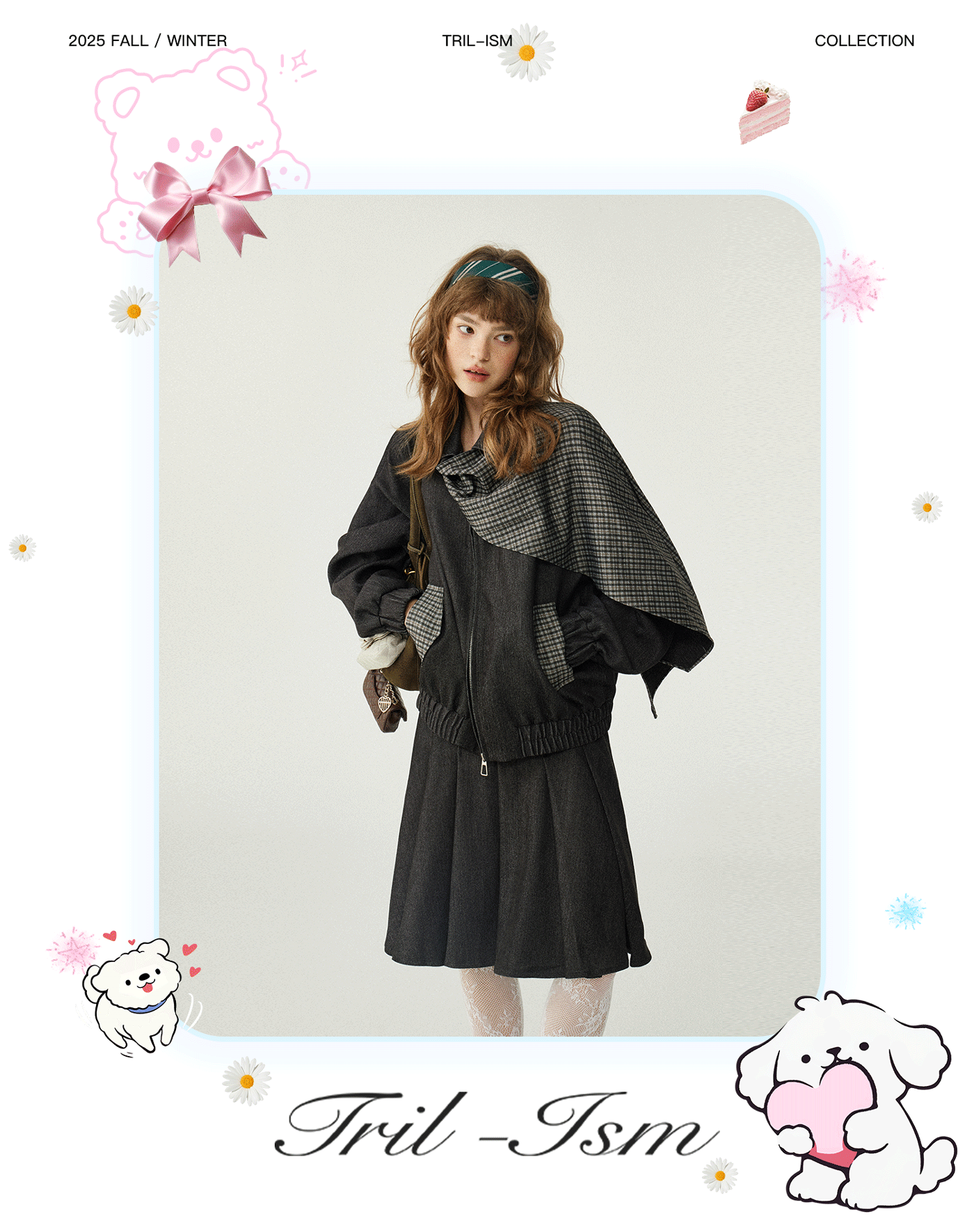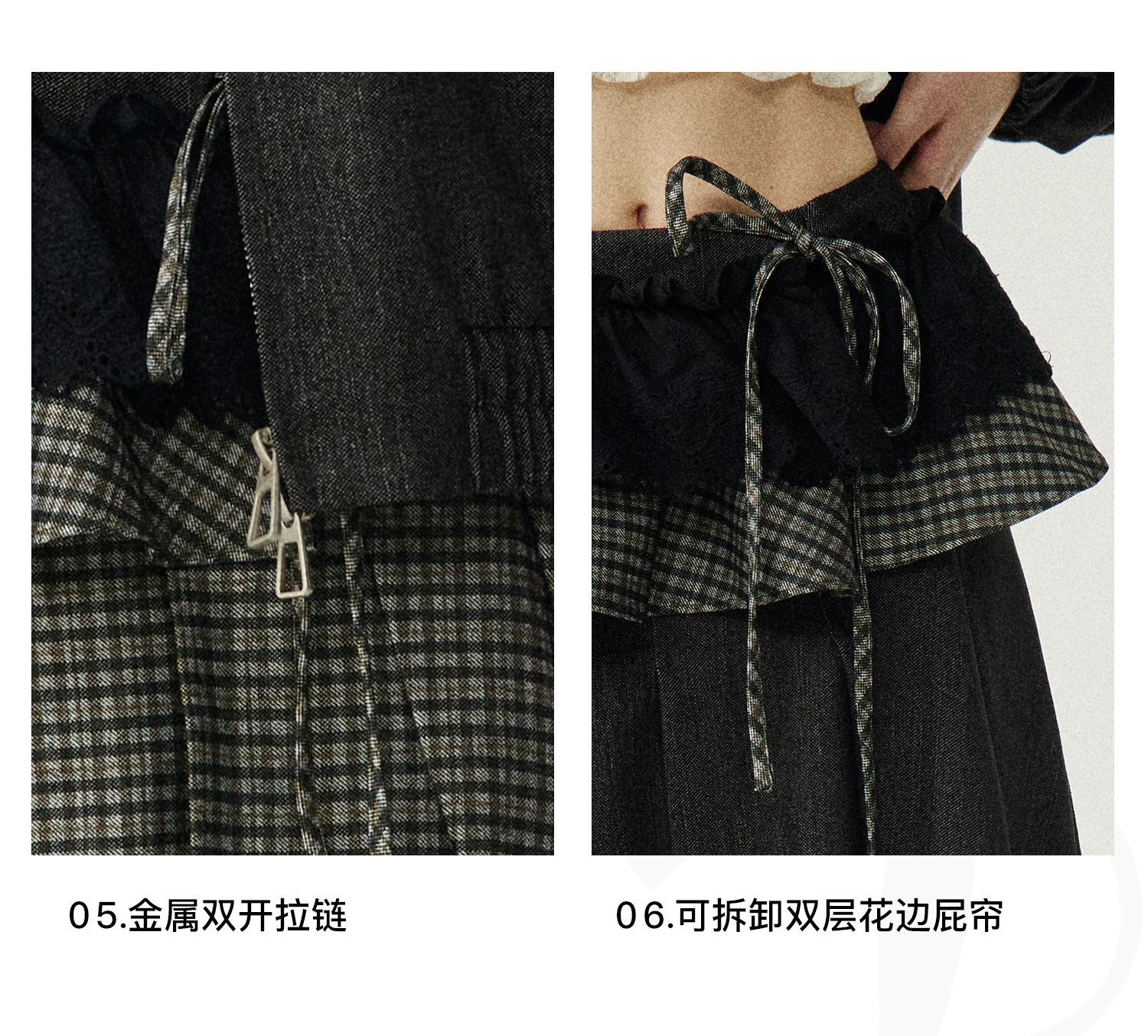*o-ha-you*【FLKDD2025067】2025秋季新款設計感小眾格紋披風毛呢夾克外套女+半身裙套裝
