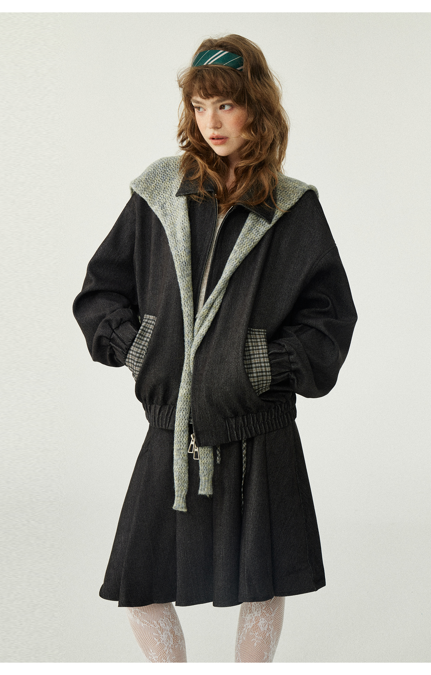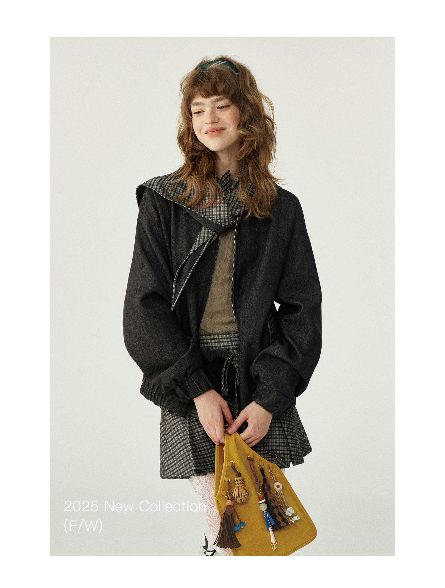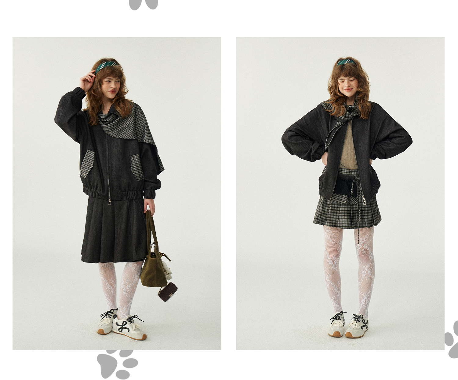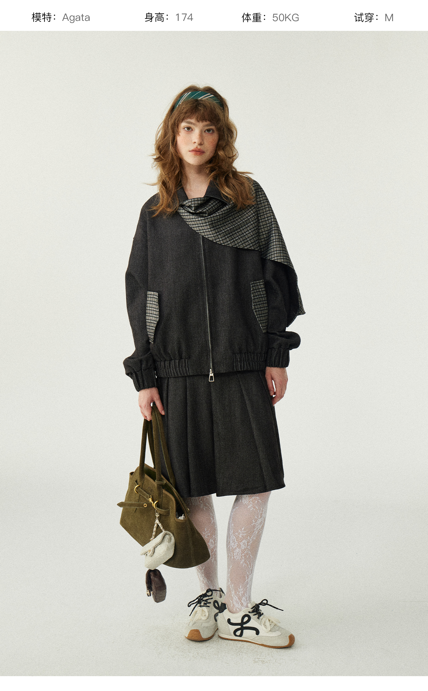 *o-ha-you*【FLKDD2025067】2025秋季新款設計感小眾格紋披風毛呢夾克外套女+半身裙套裝