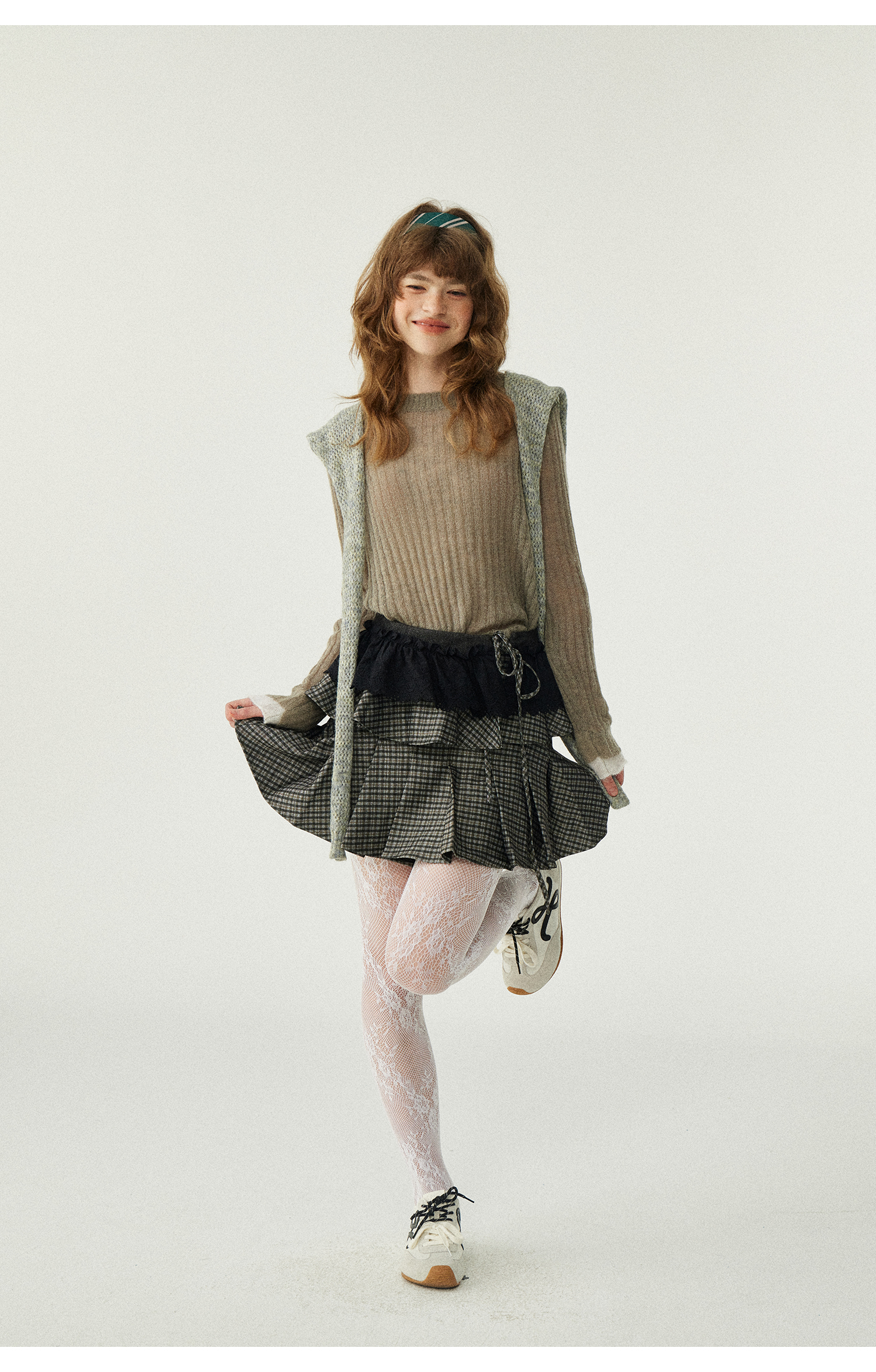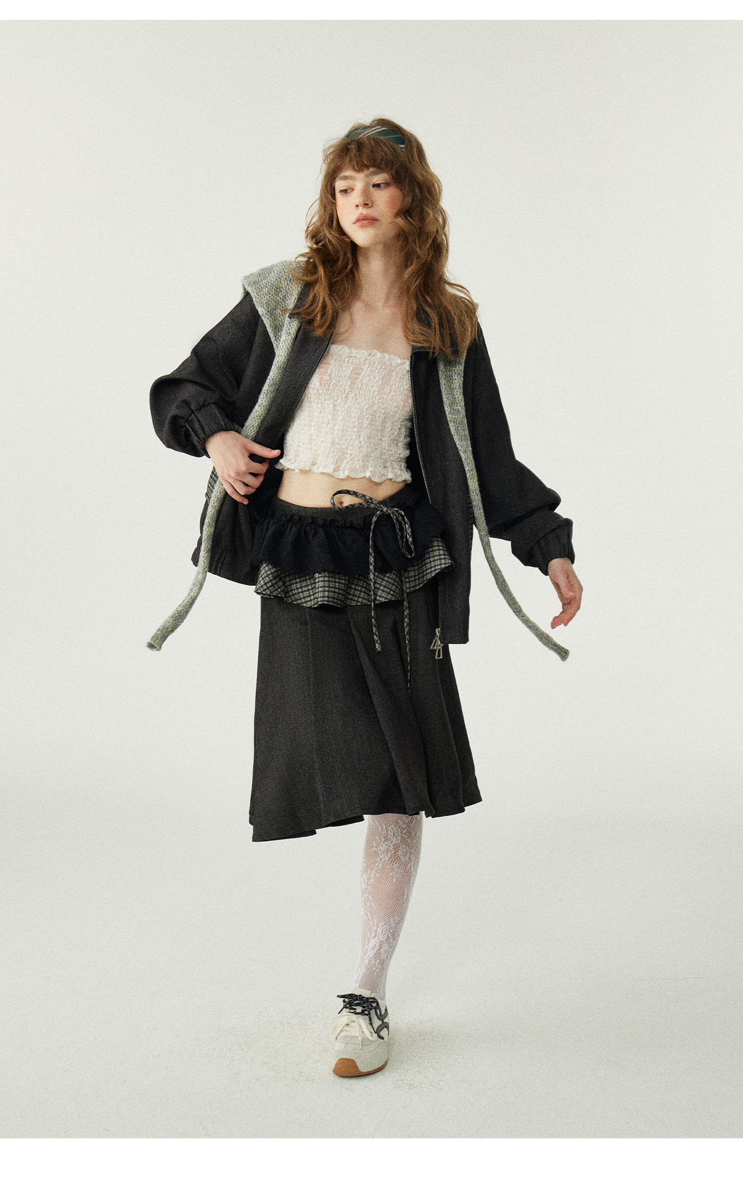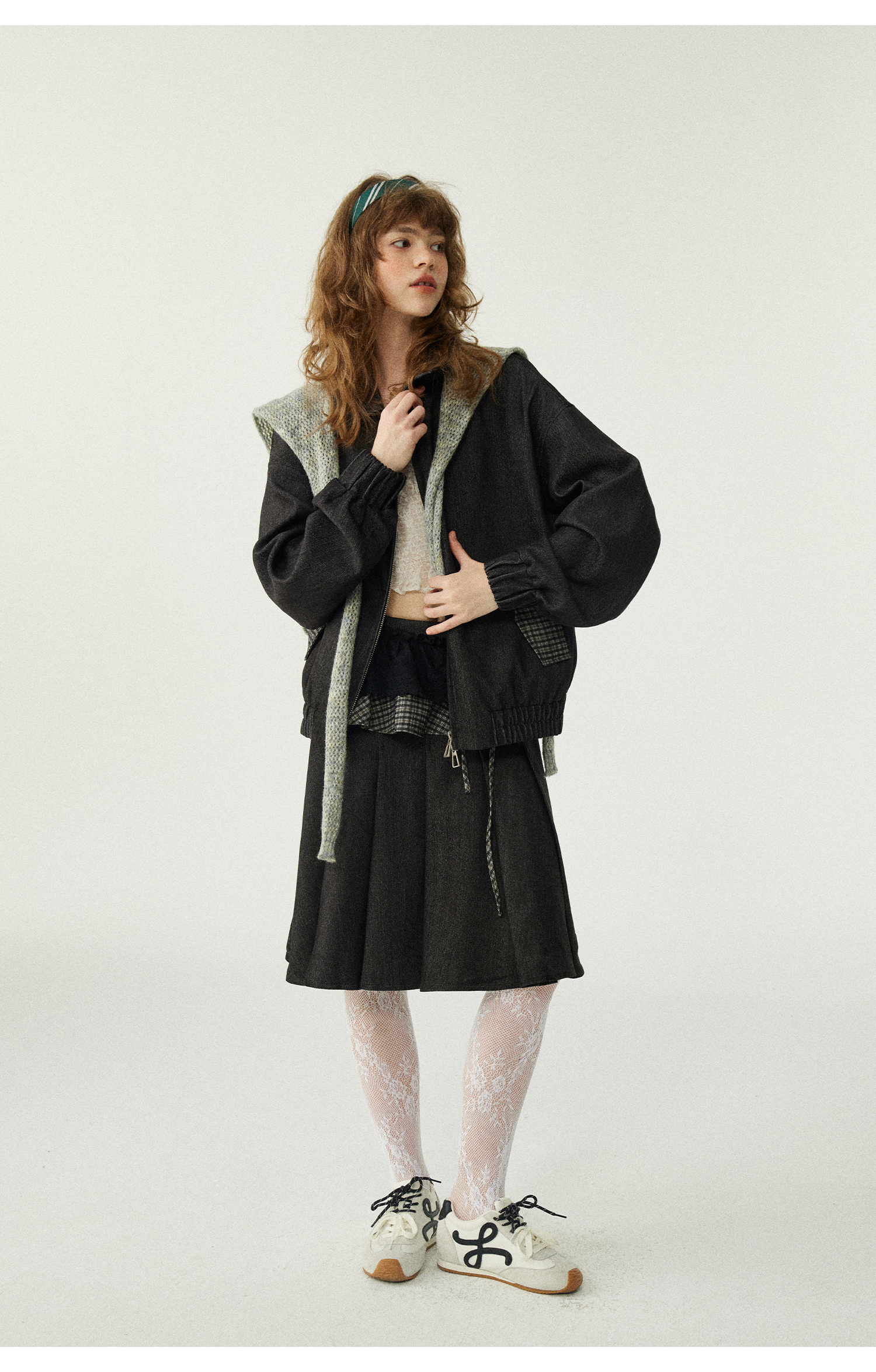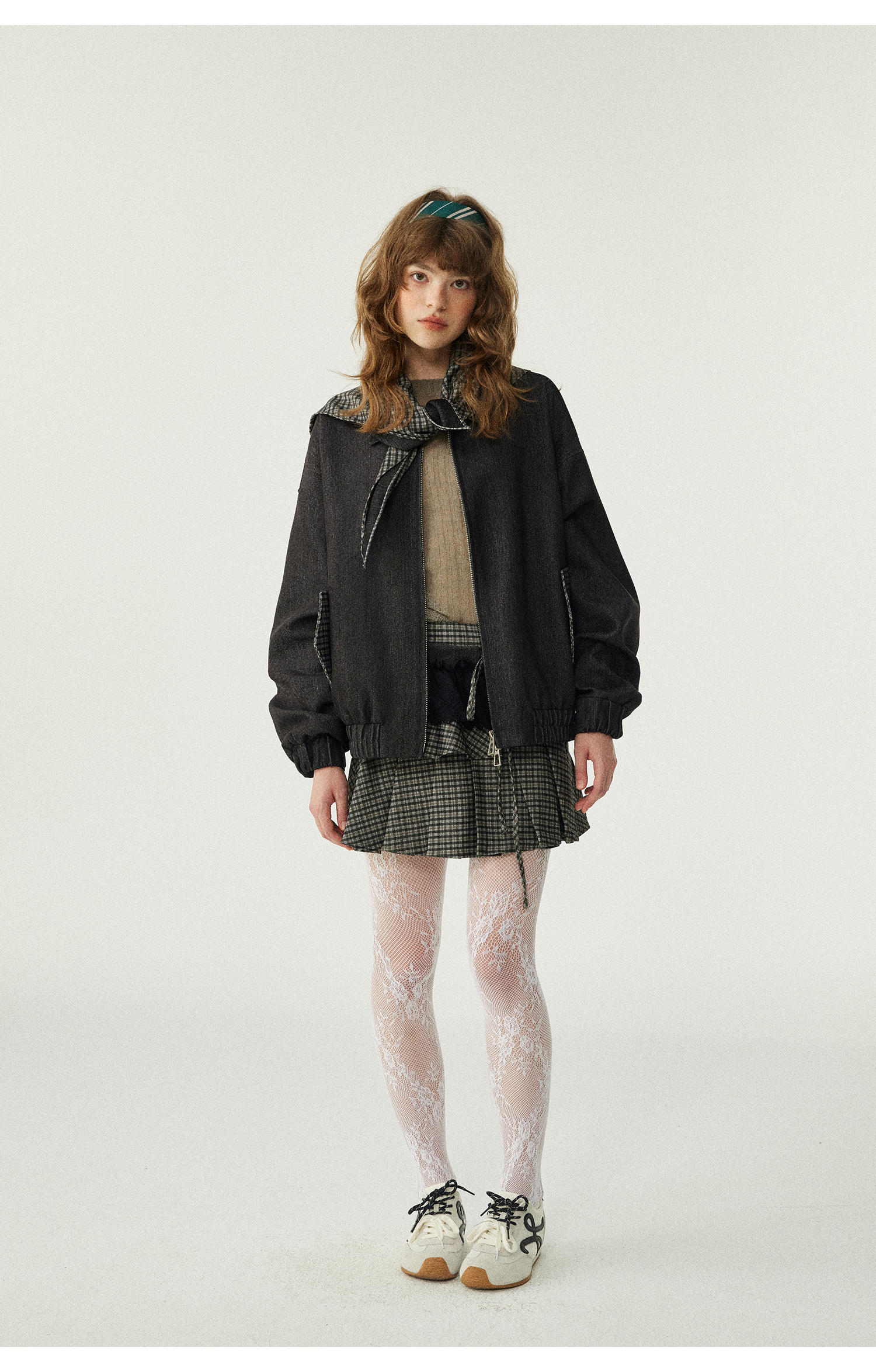 *o-ha-you*【FLKDD2025067】2025秋季新款設計感小眾格紋披風毛呢夾克外套女+半身裙套裝