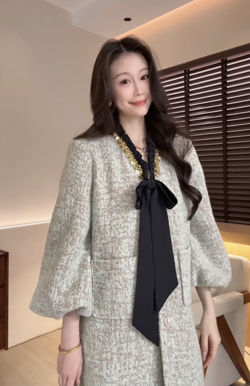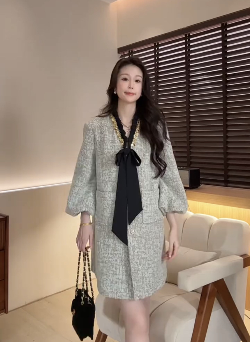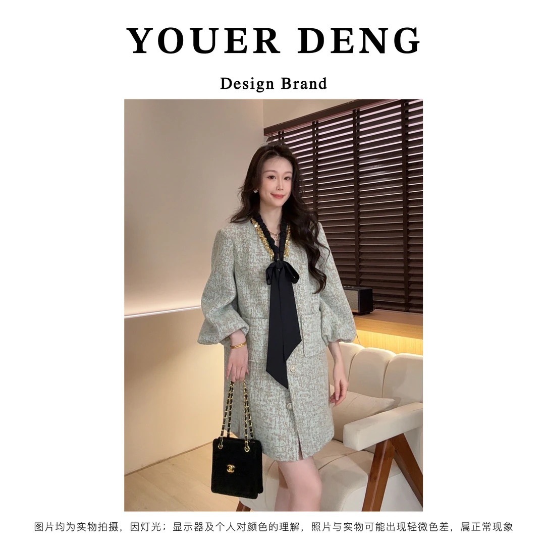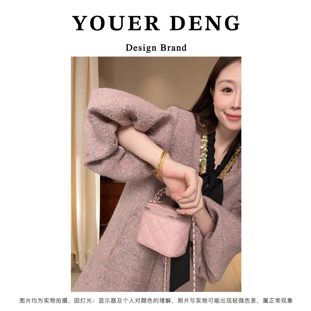 *o-ha-you*【FLKDD2025069】秋冬新款名媛溫柔氣質減齡小香風法式拼接洋裝韓版羊毛呢蝴蝶結寬鬆大衣-2色