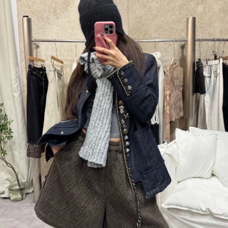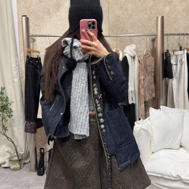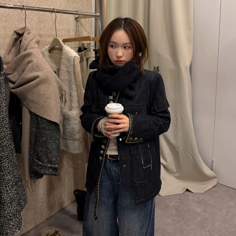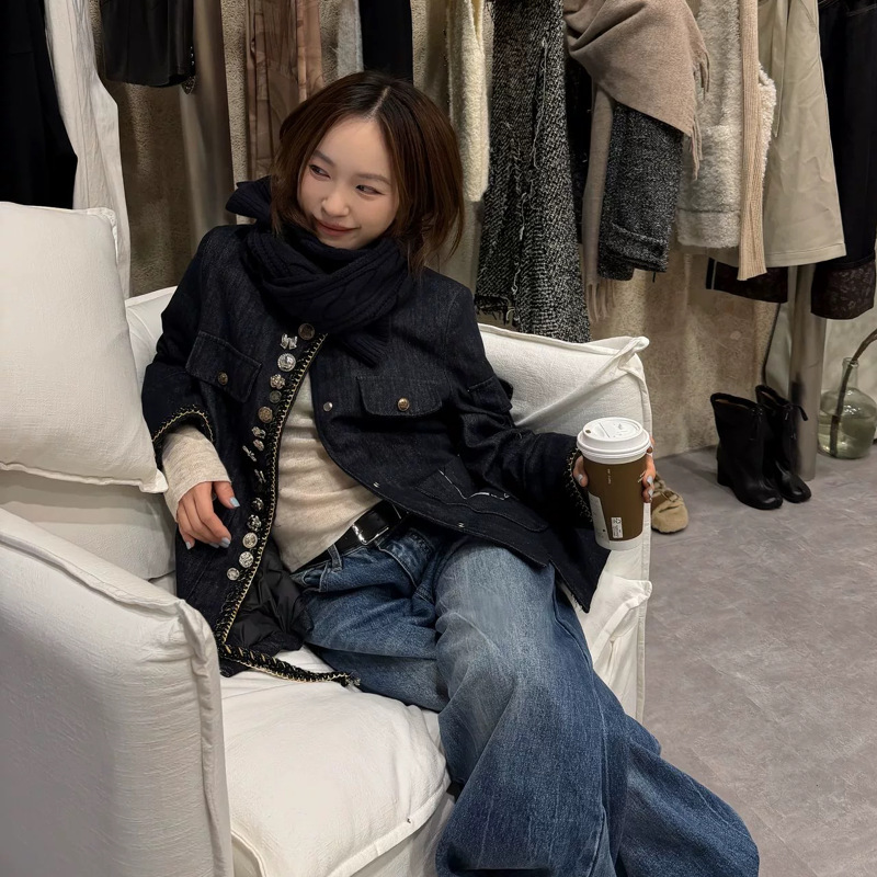 *o-ha-you*【FLKDD2025074】羽絨外套小眾冬季新款鴨絨上衣紐扣裝飾設計感牛仔色外套