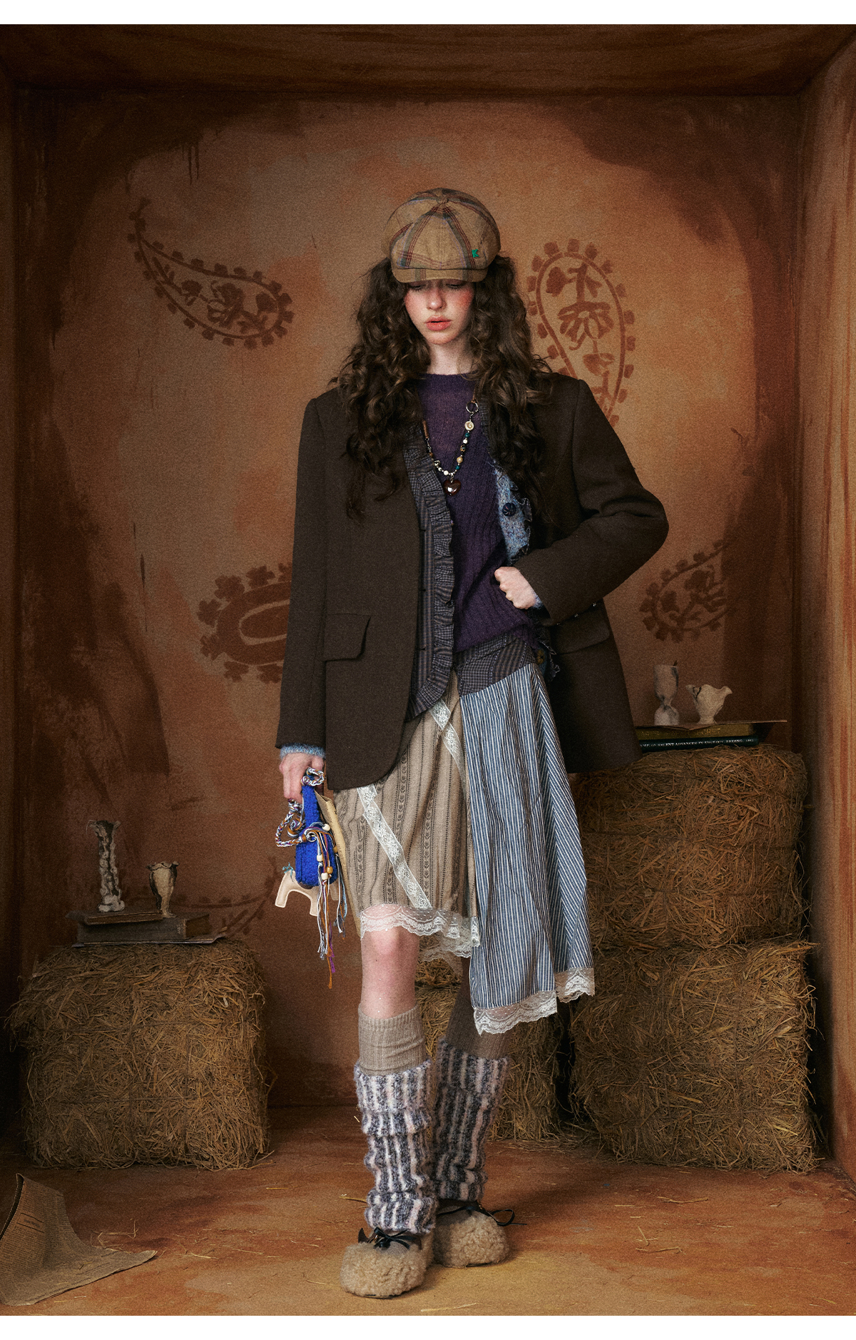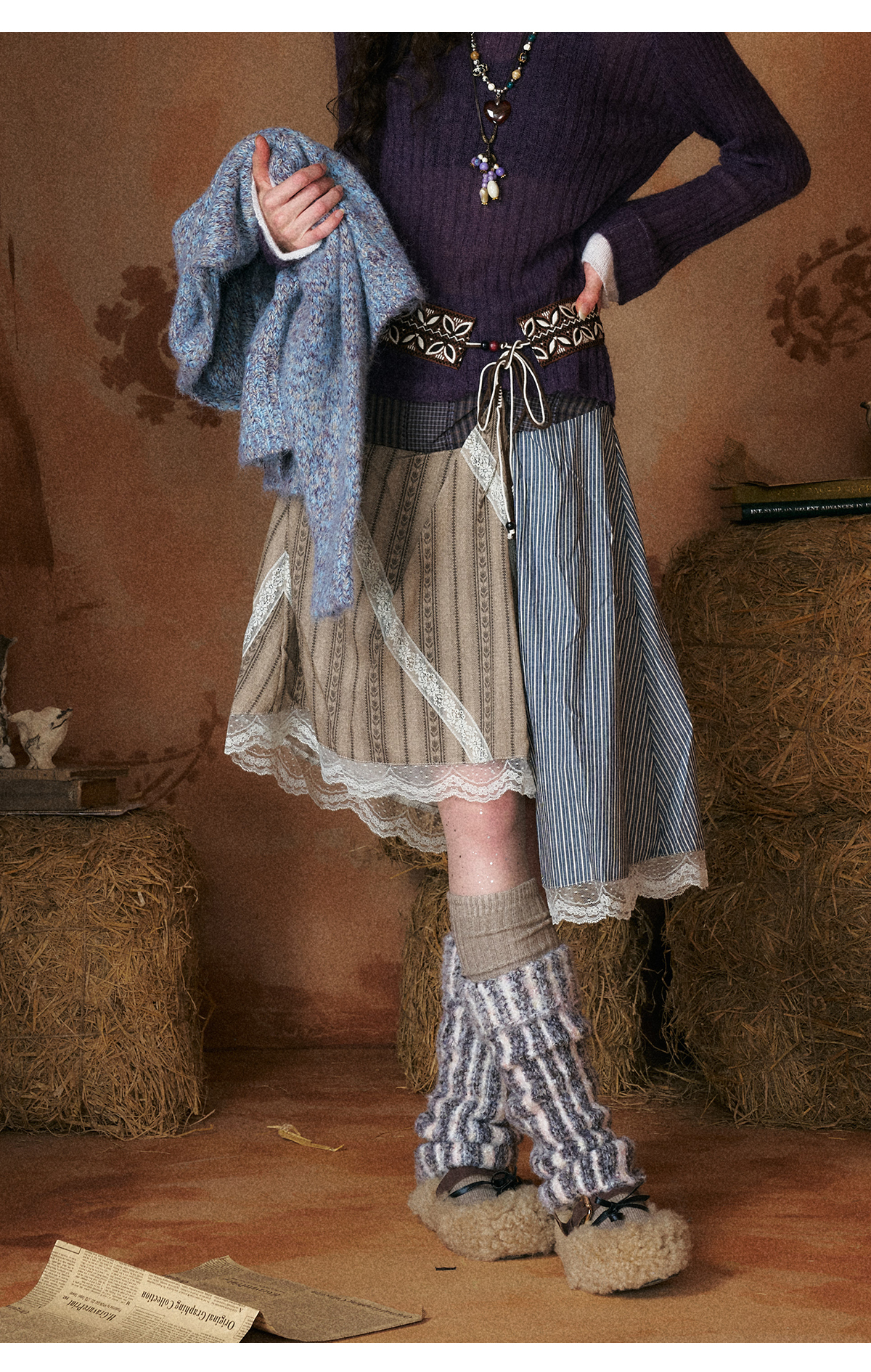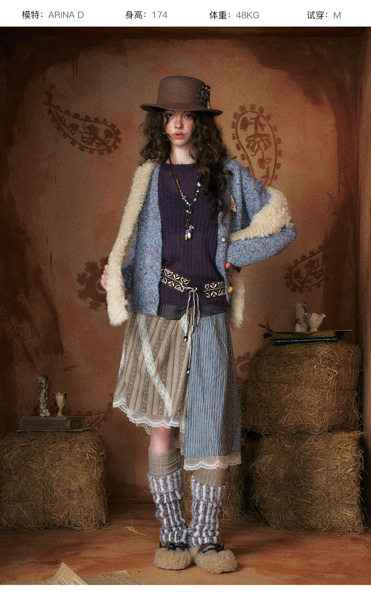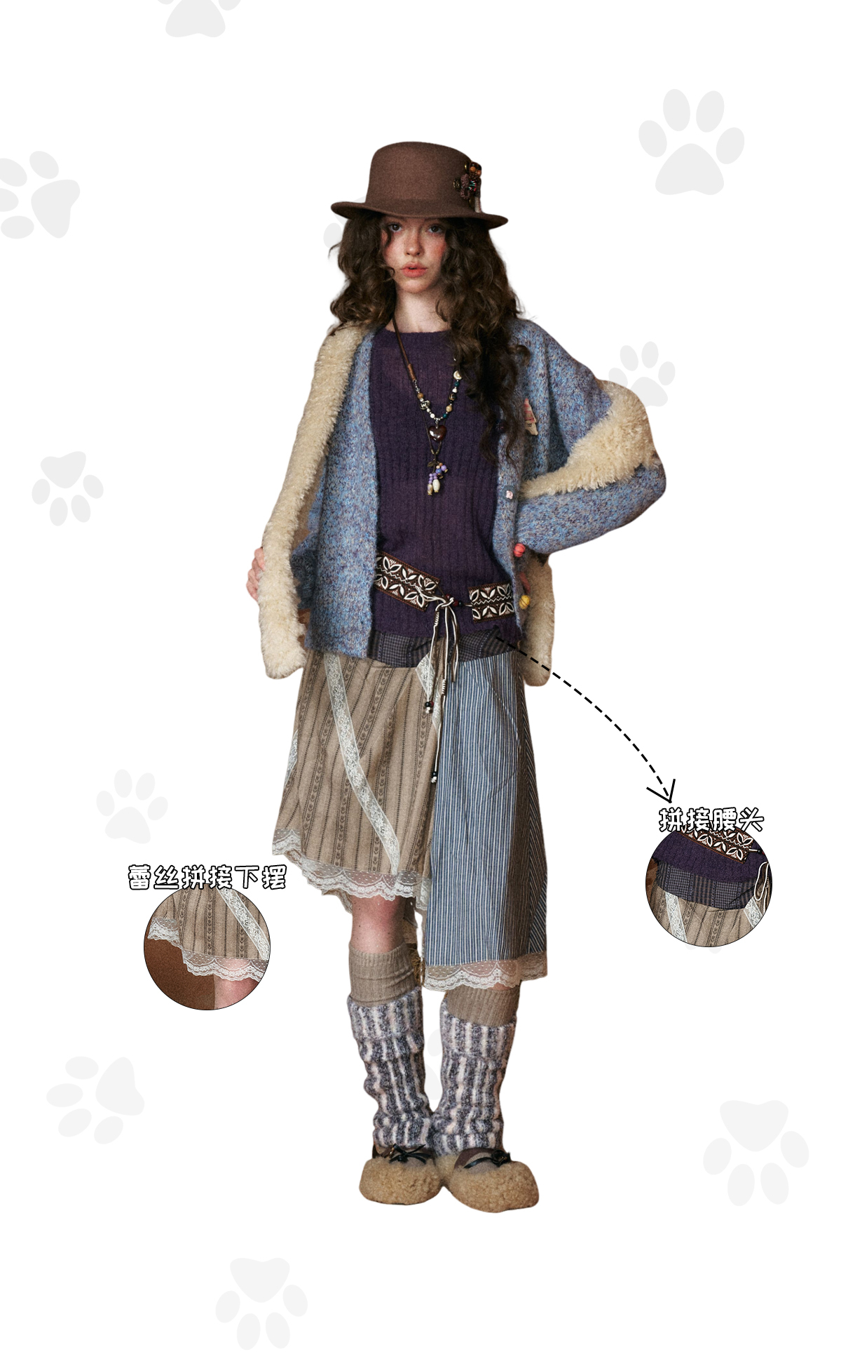 *o-ha-you*【FLKDD2025081】2025秋冬季新款韓版格紋拼接不規則半身裙女設計感小眾裙