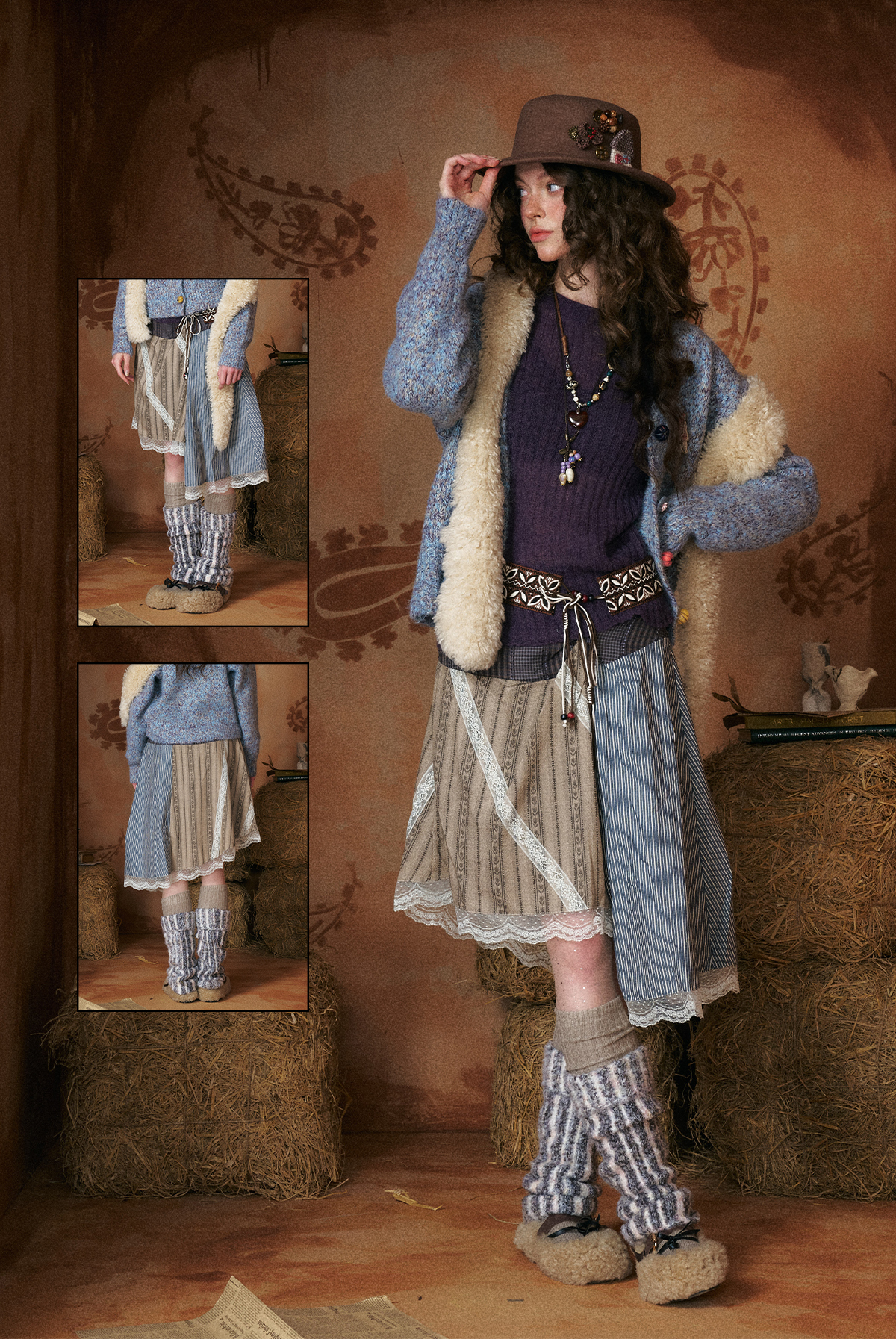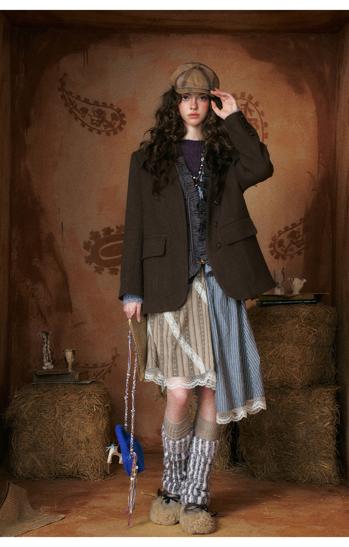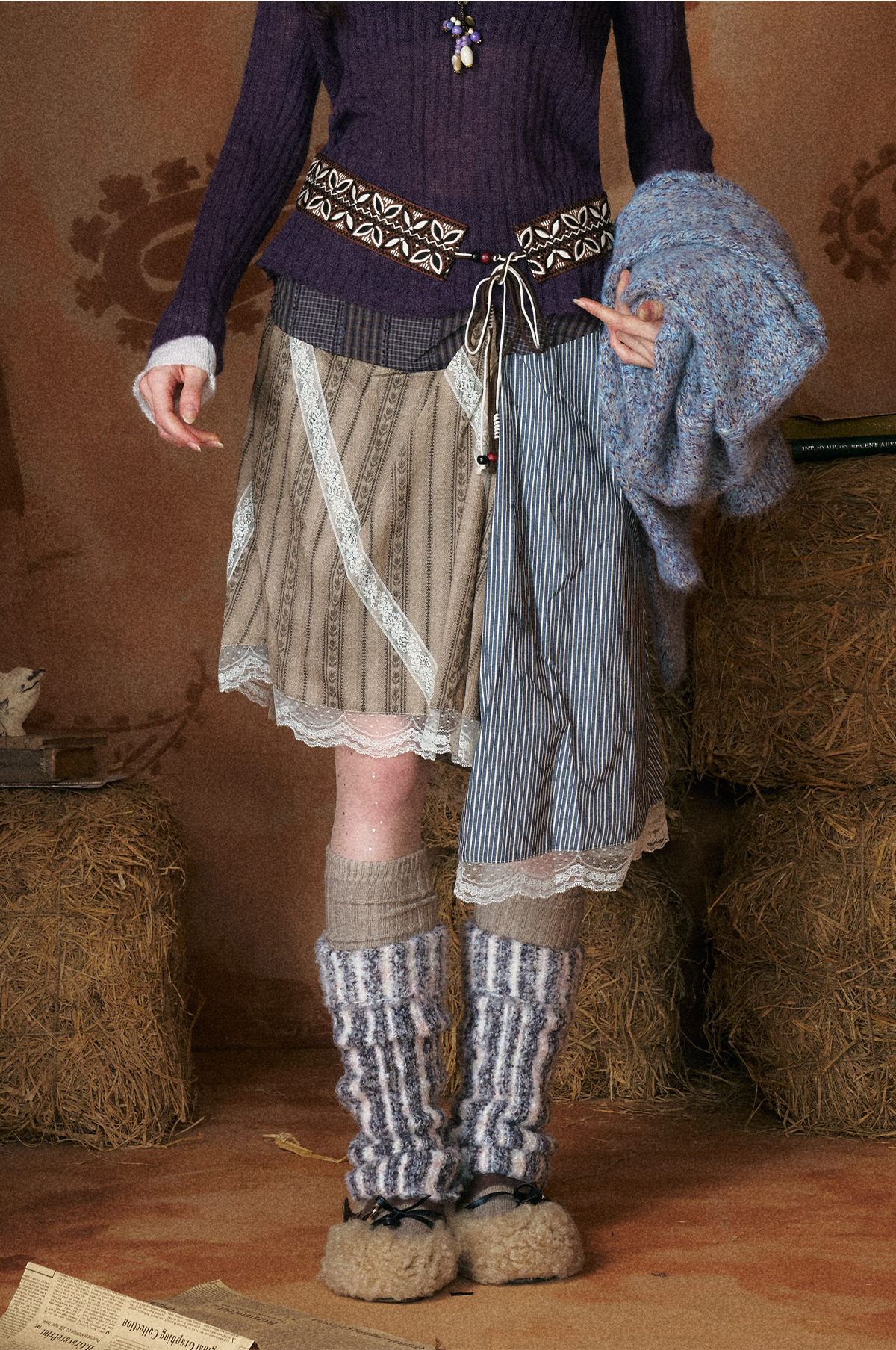 *o-ha-you*【FLKDD2025081】2025秋冬季新款韓版格紋拼接不規則半身裙女設計感小眾裙