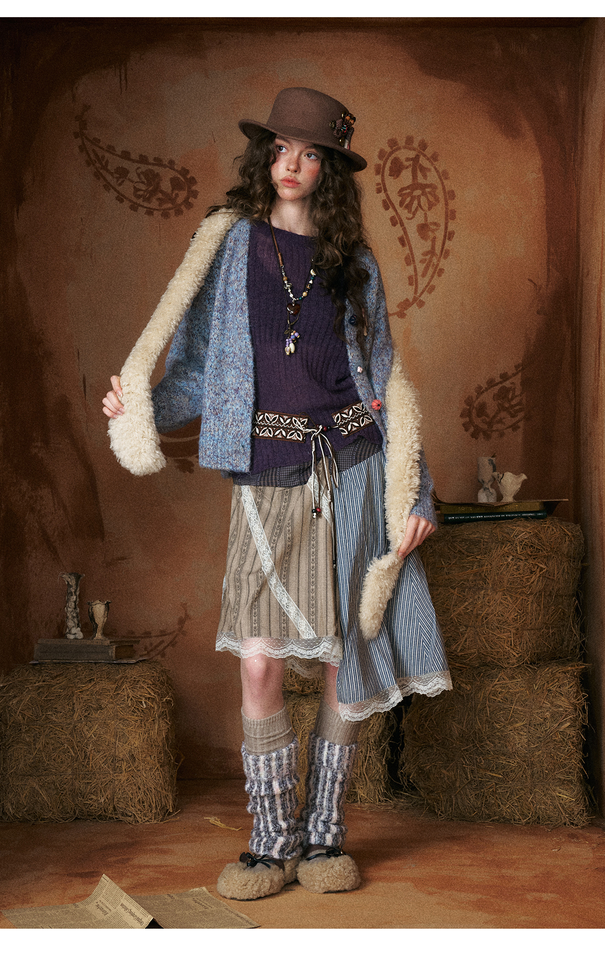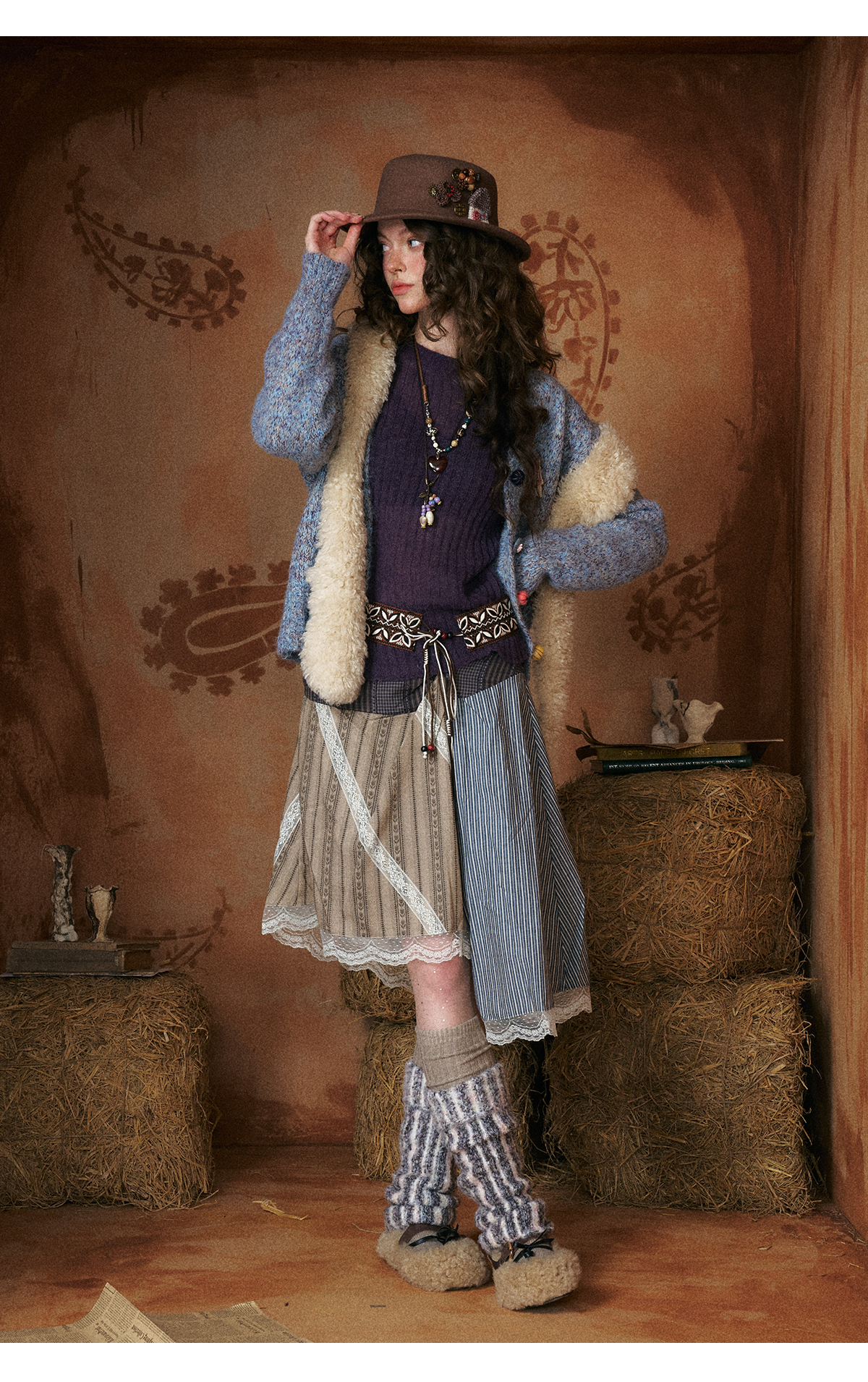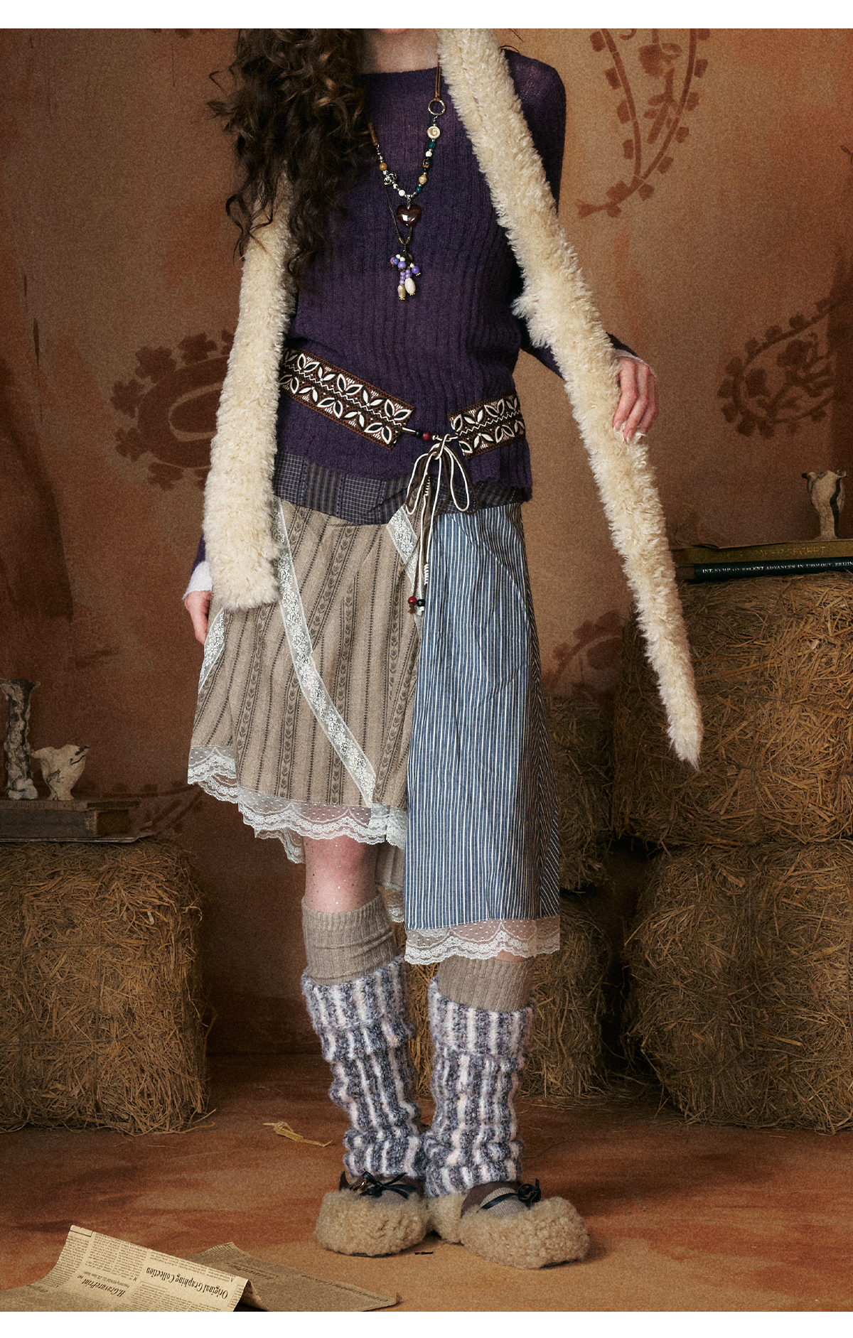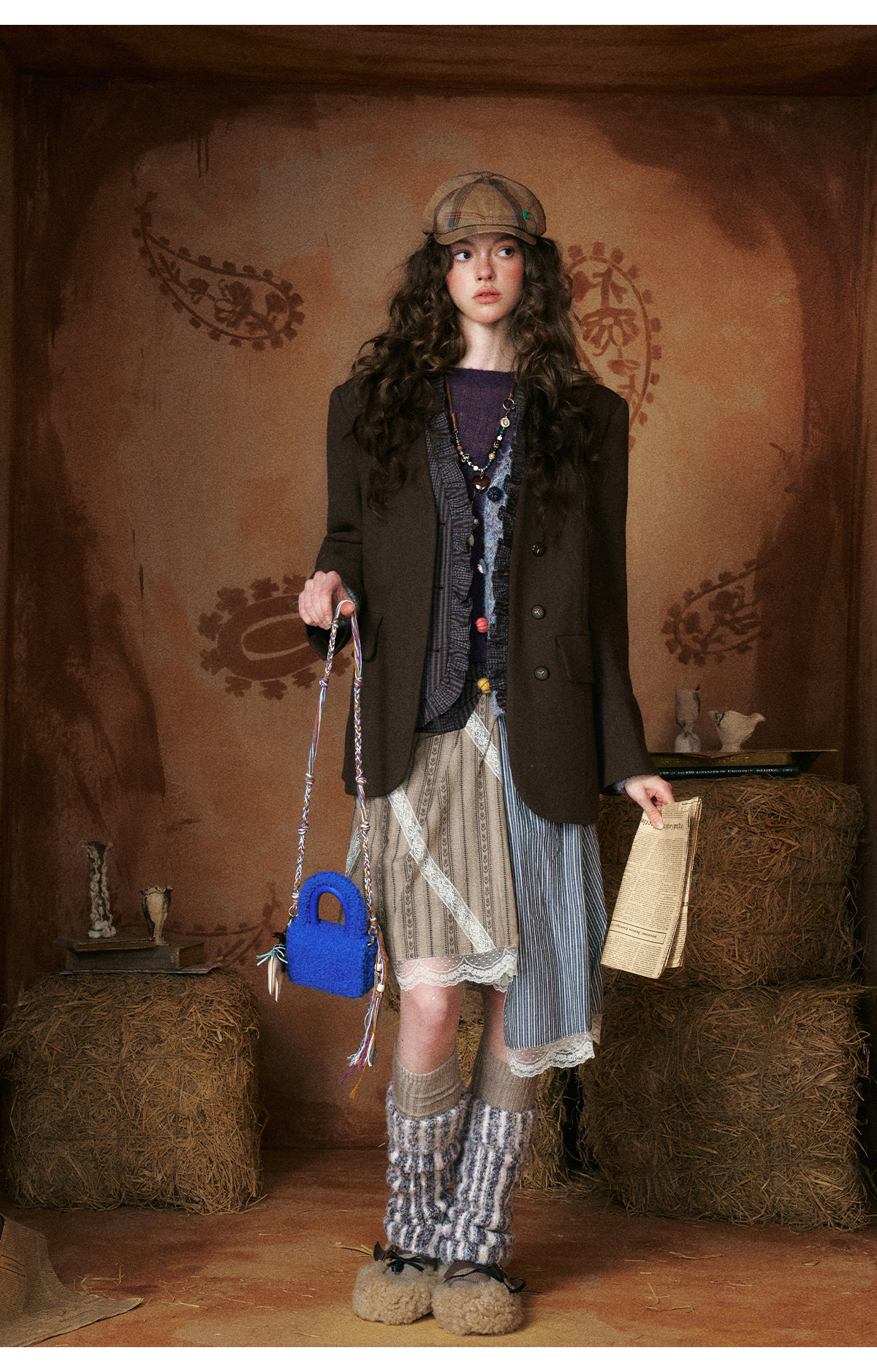 *o-ha-you*【FLKDD2025081】2025秋冬季新款韓版格紋拼接不規則半身裙女設計感小眾裙