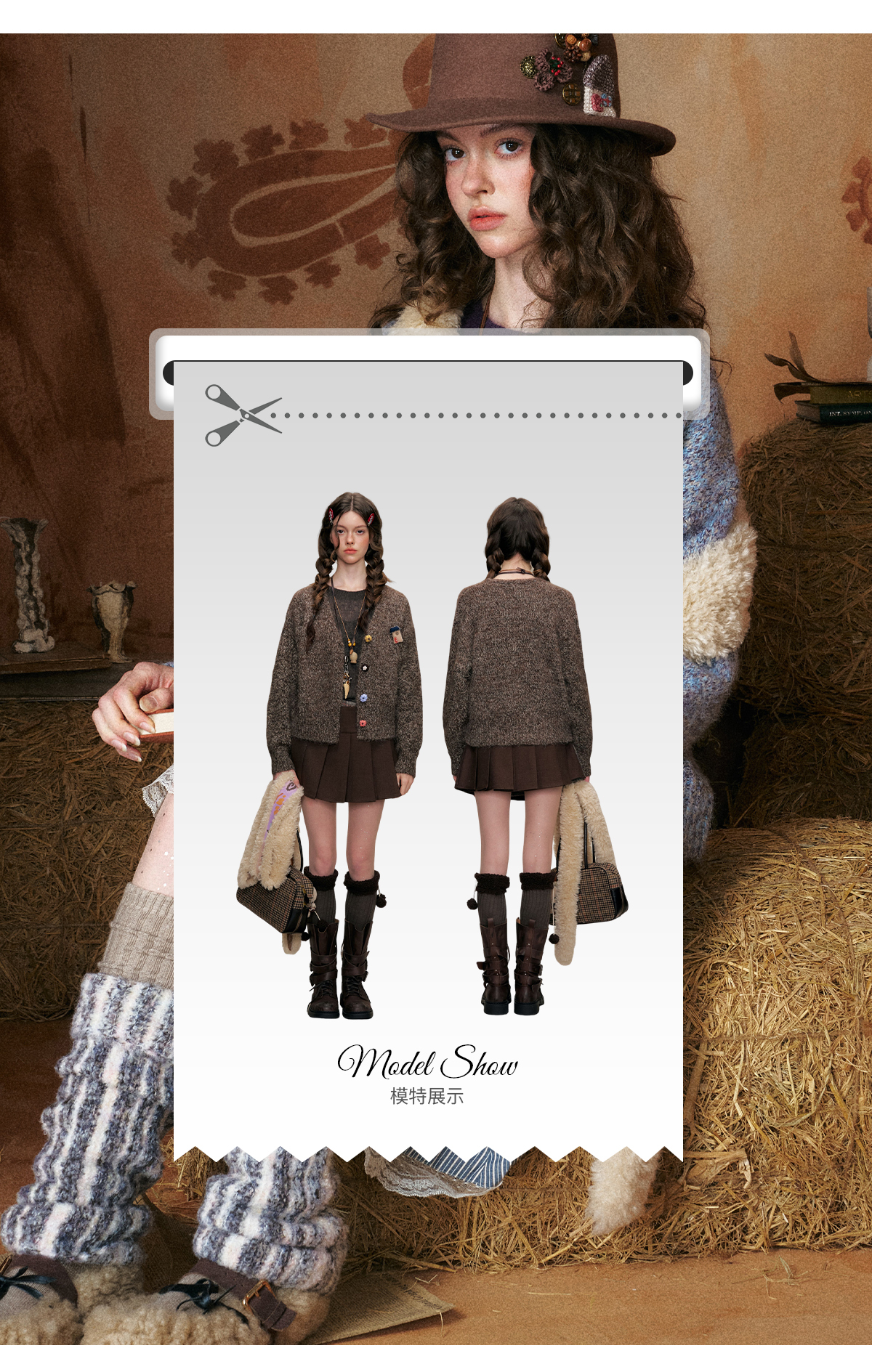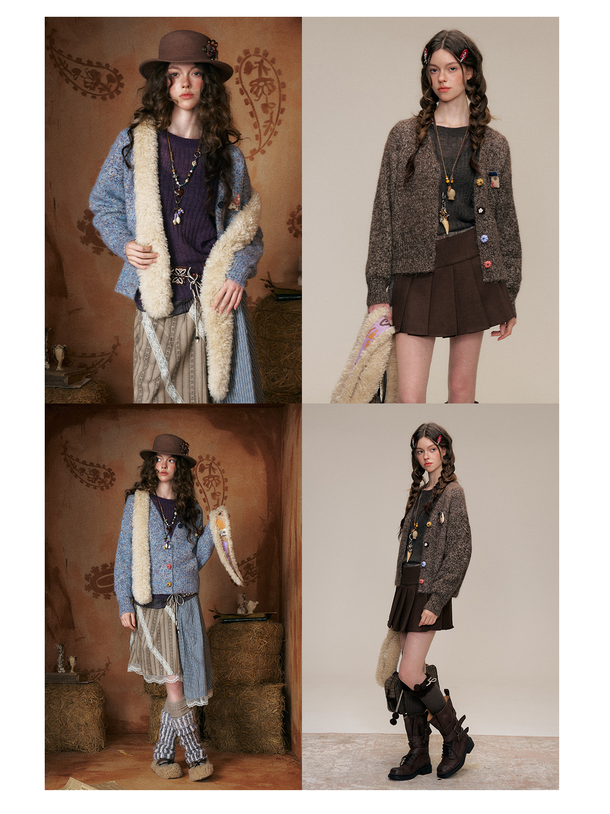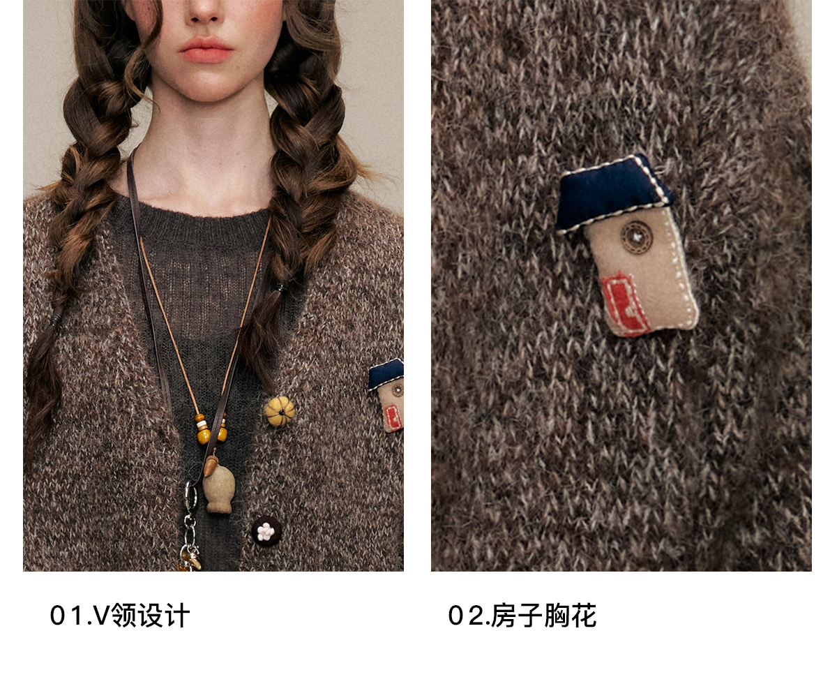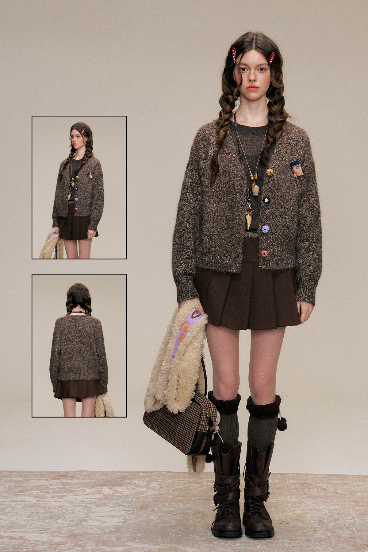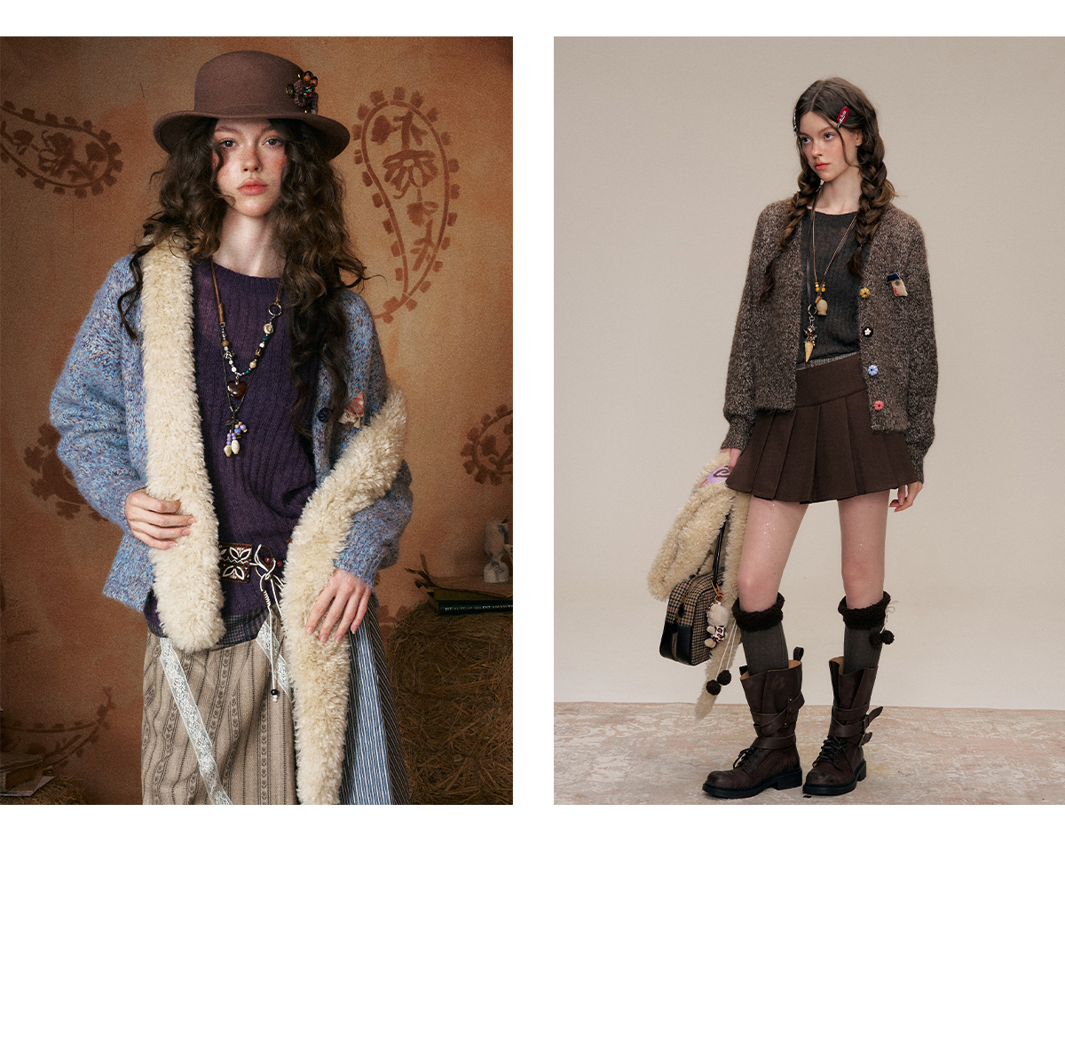 *o-ha-you*【FLKDD2025082】2025秋冬季新款韓版設計感百搭童趣混紗針織毛衣開襟衫女裝-2色
