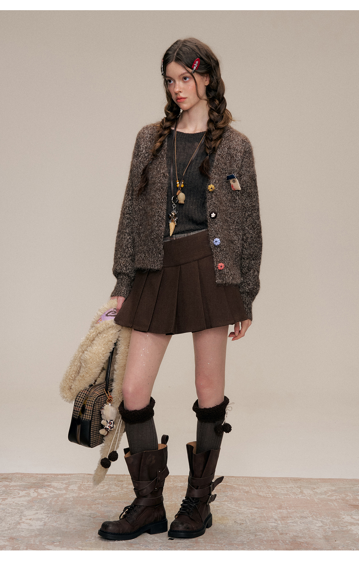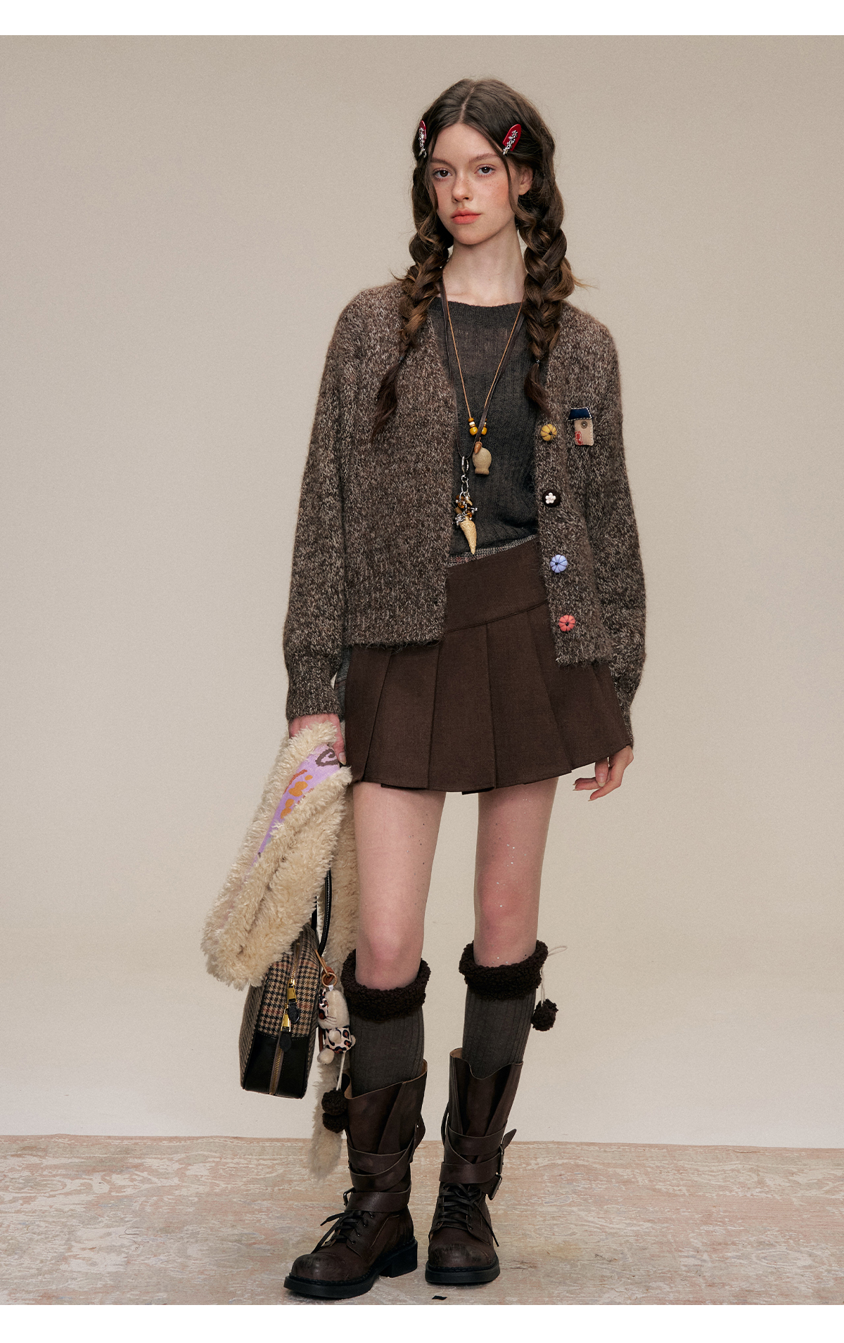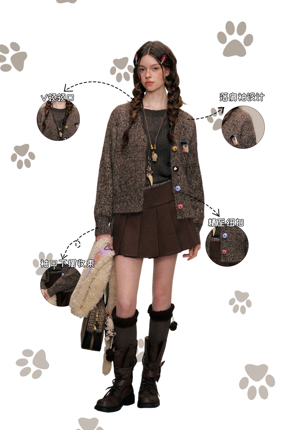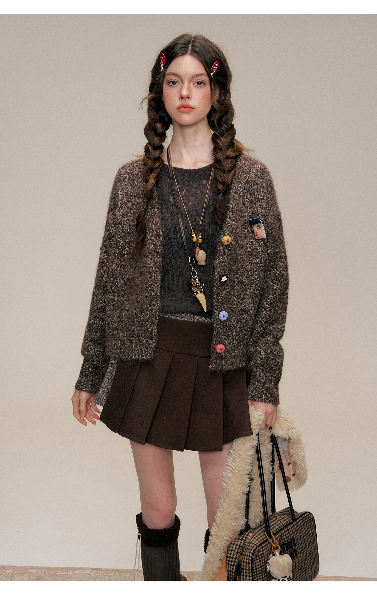 *o-ha-you*【FLKDD2025082】2025秋冬季新款韓版設計感百搭童趣混紗針織毛衣開襟衫女裝-2色