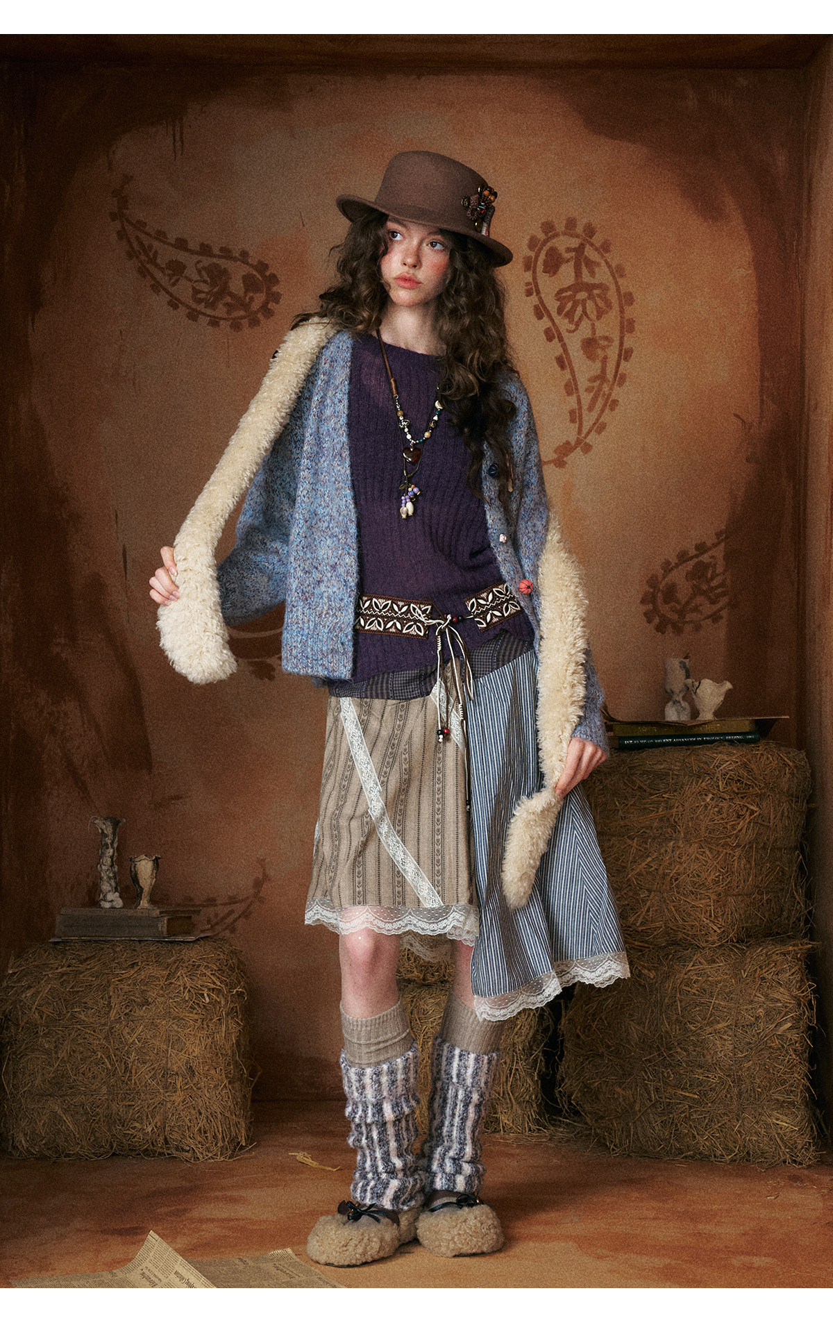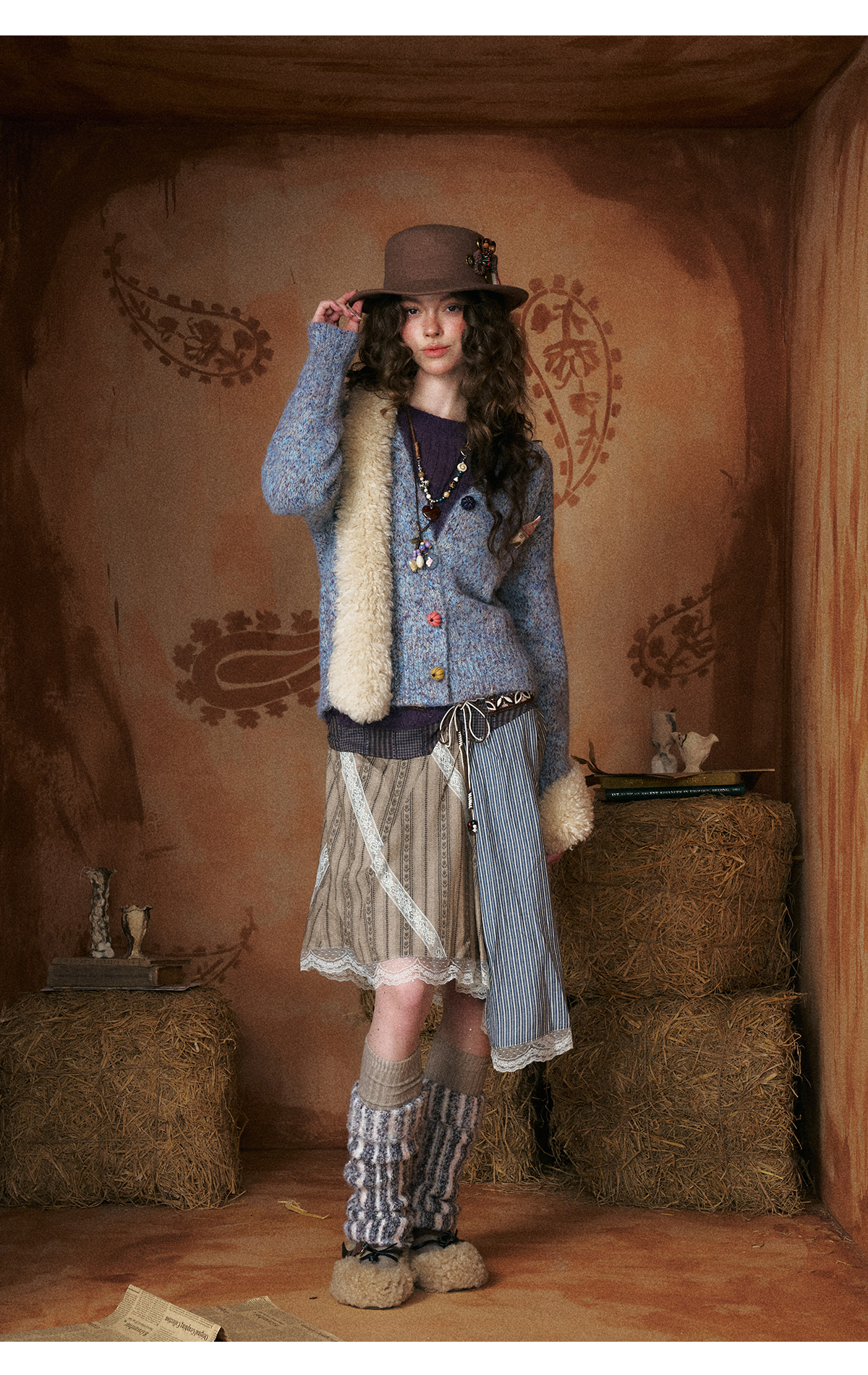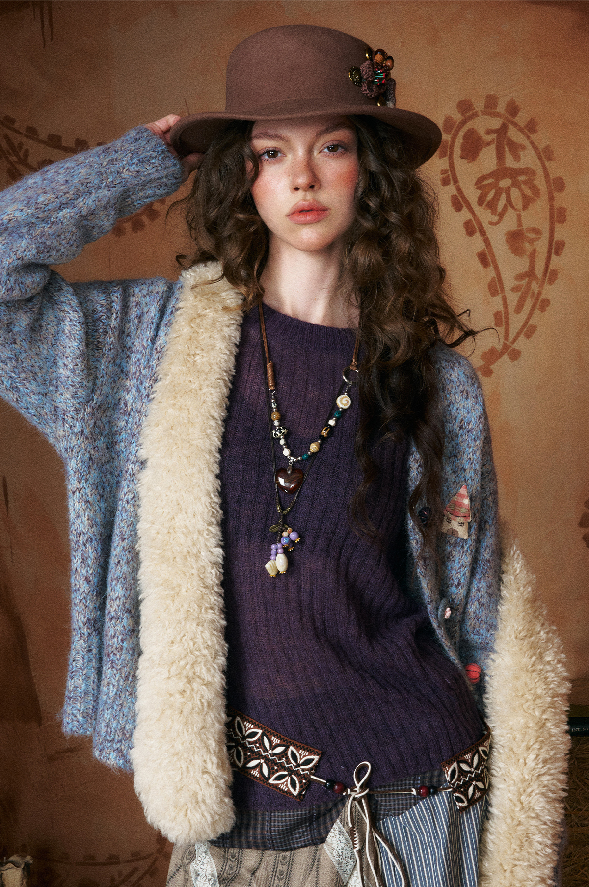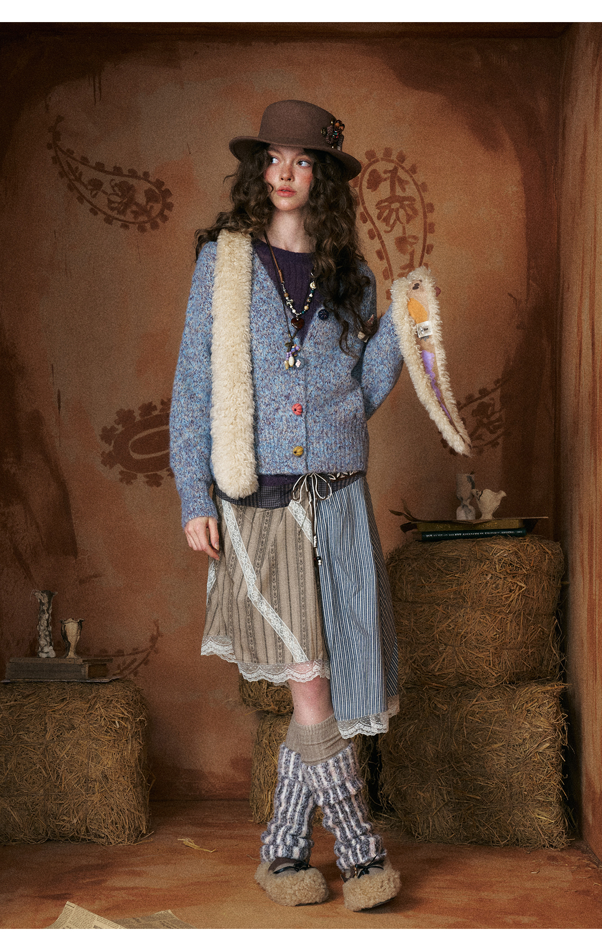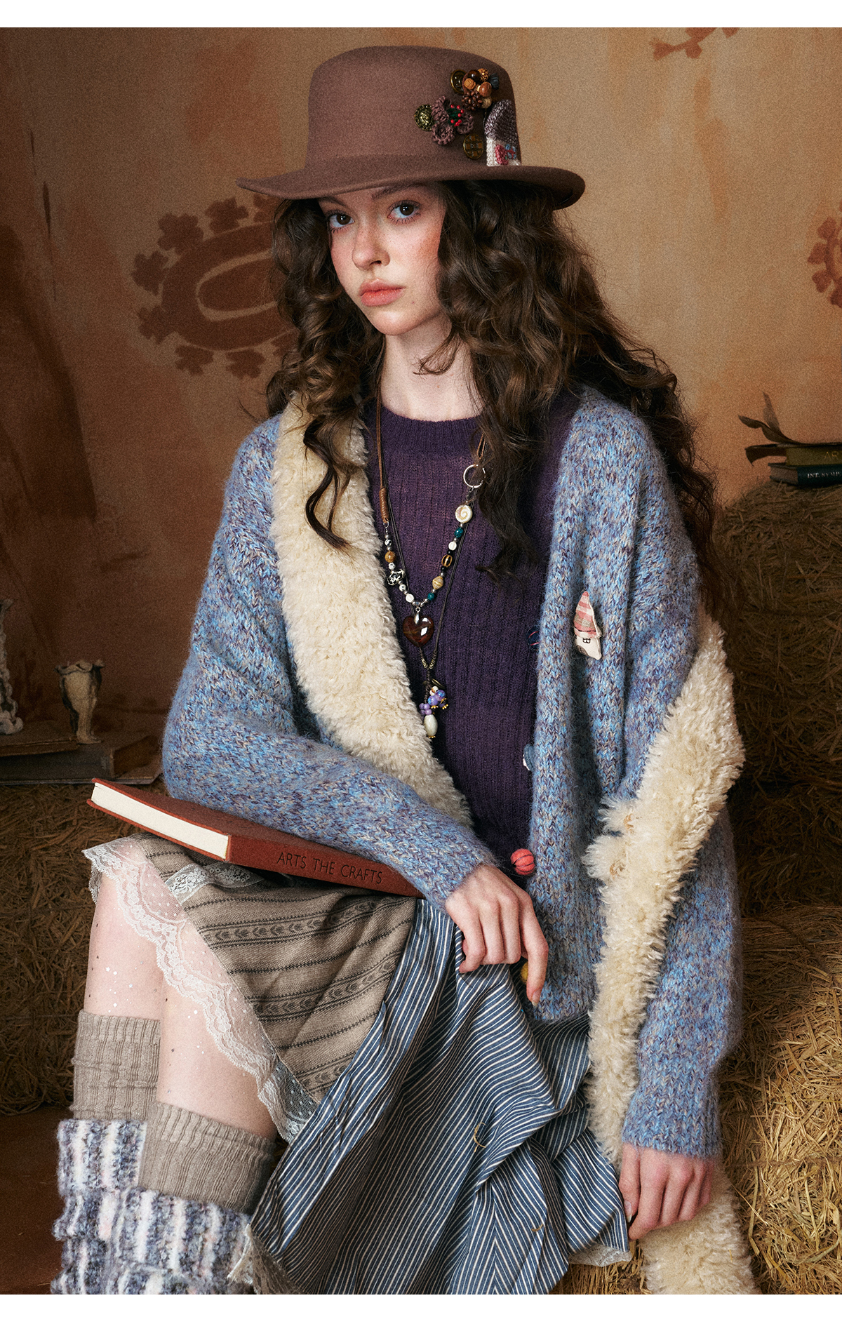 *o-ha-you*【FLKDD2025082】2025秋冬季新款韓版設計感百搭童趣混紗針織毛衣開襟衫女裝-2色
