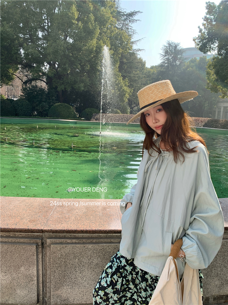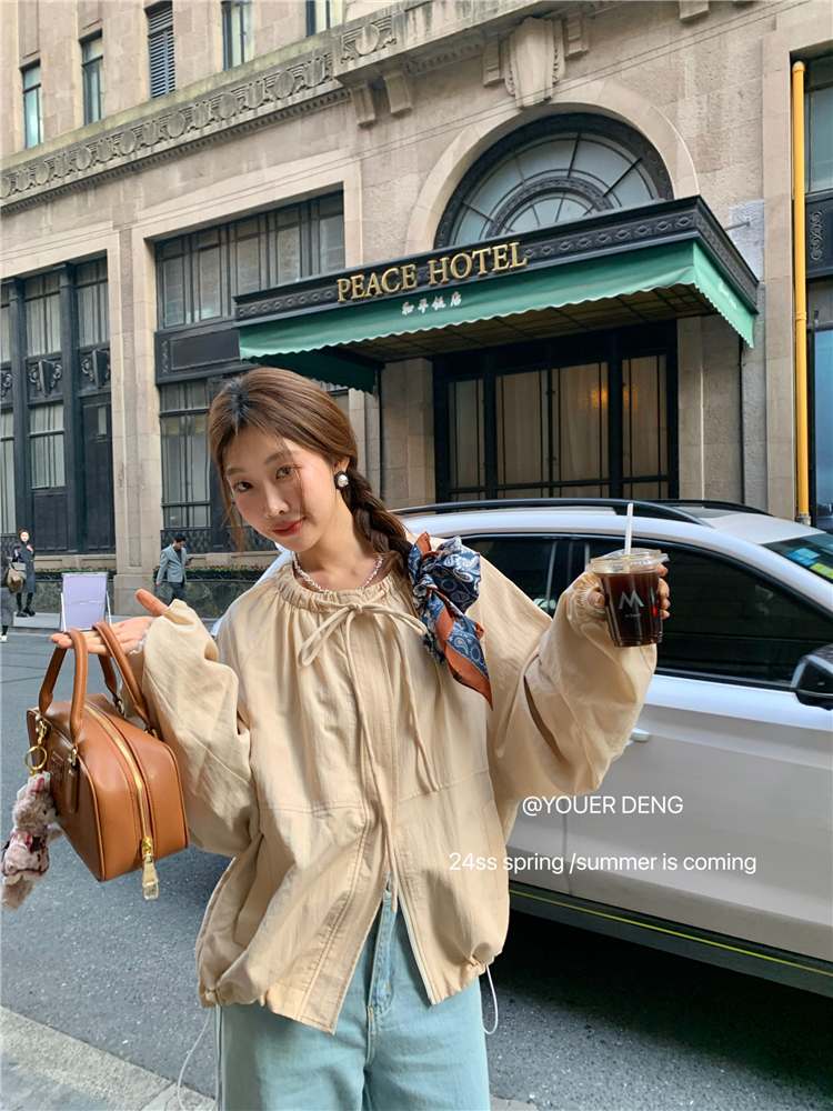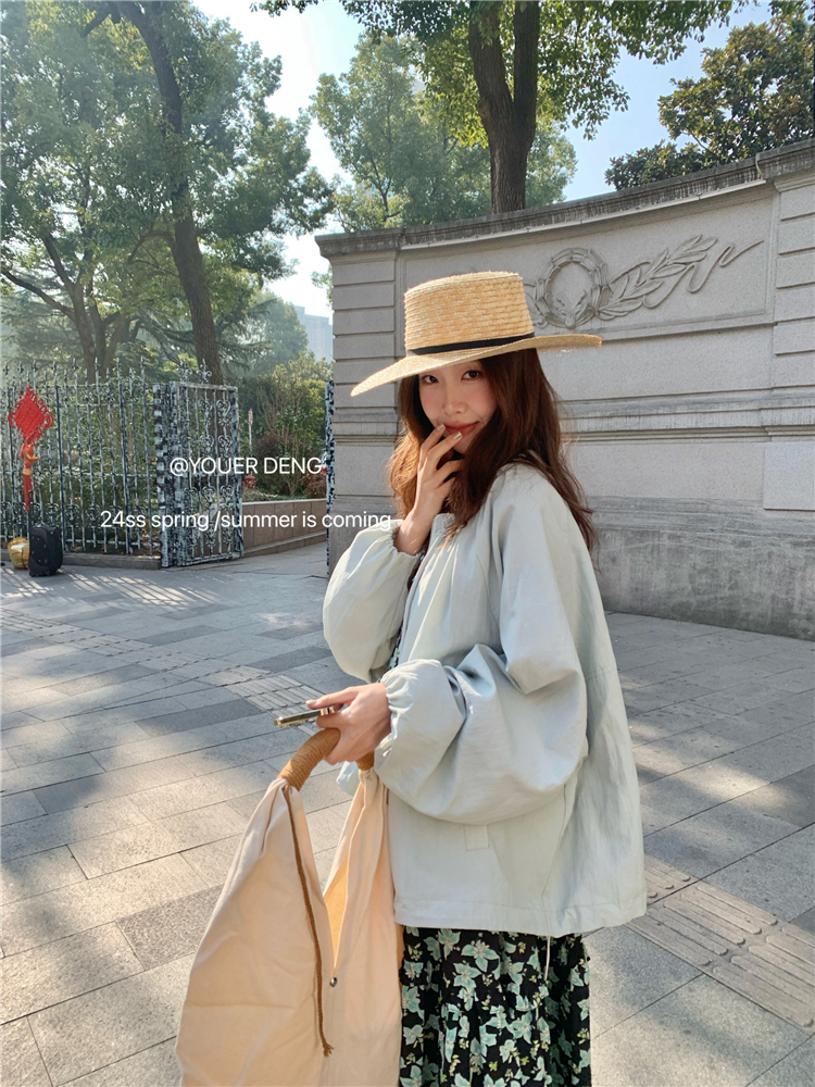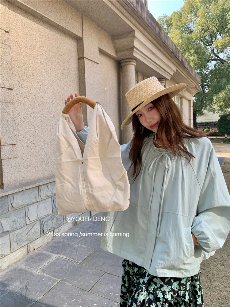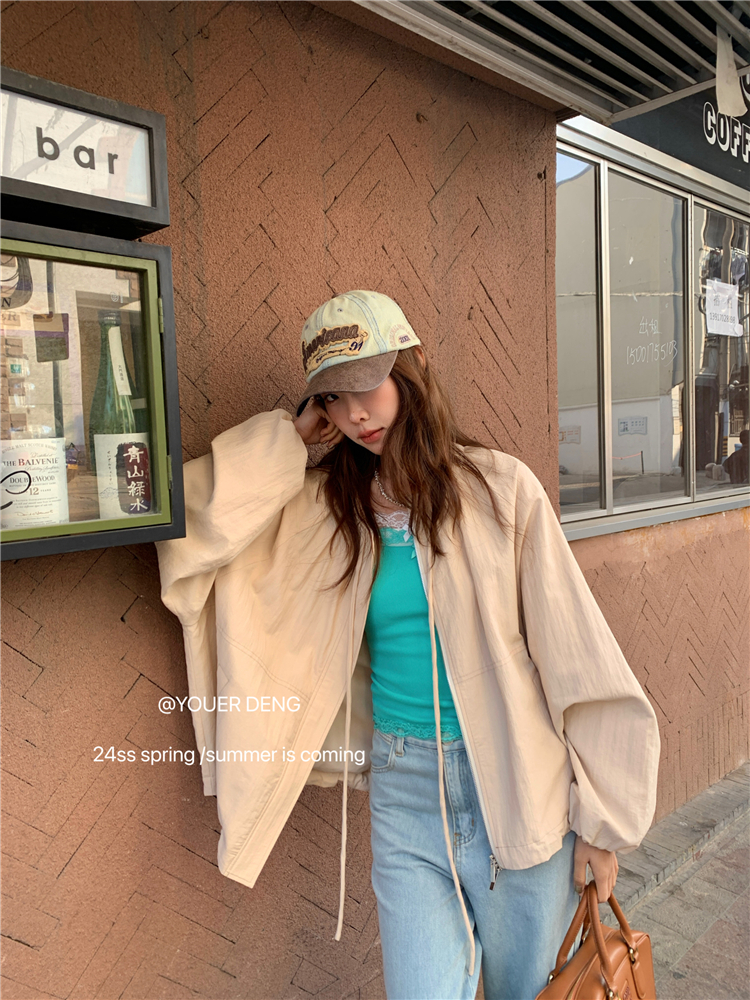 *o-ha-you*【FLKDYA001】春季復古法式蝴蝶結繫帶圓領外套插肩袖拉鍊寬鬆棒球夾克-2色