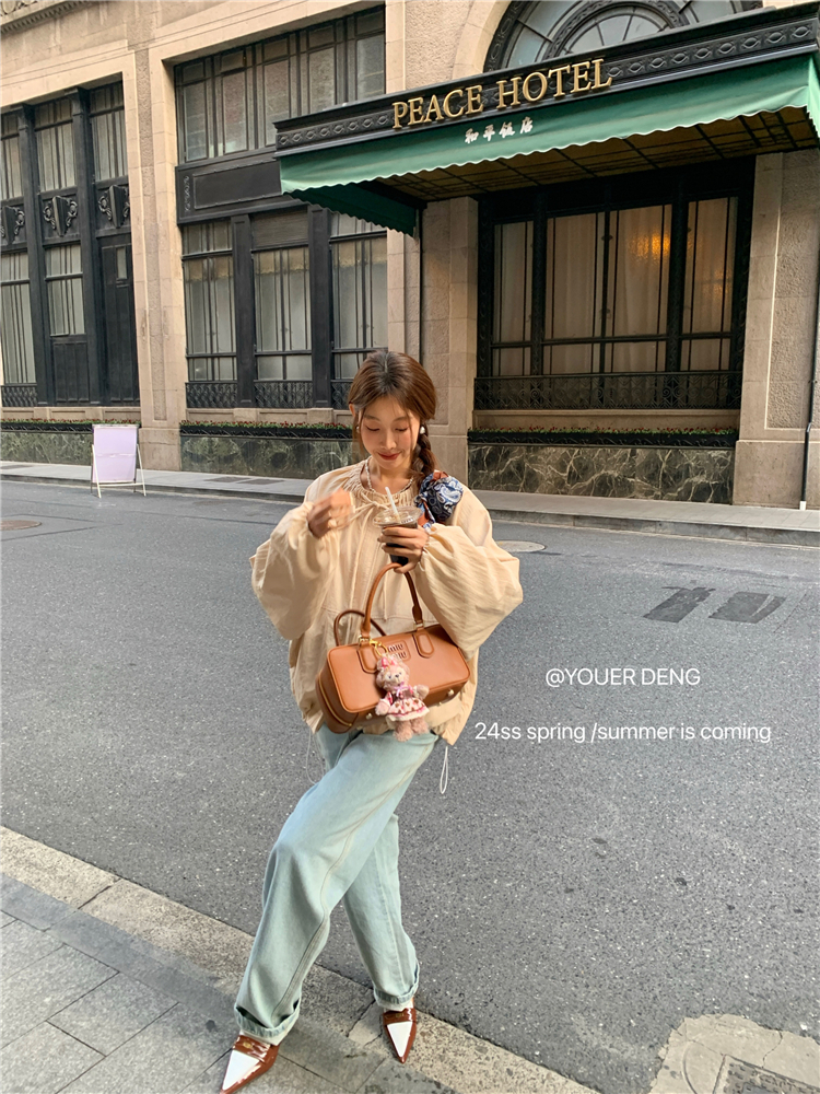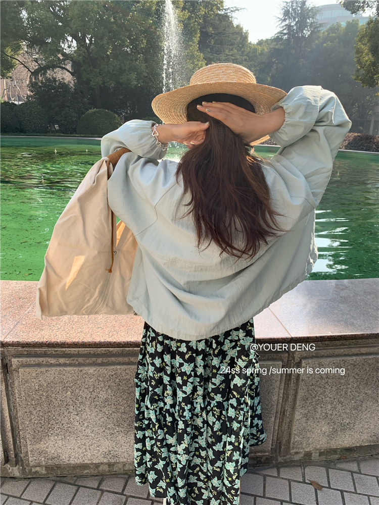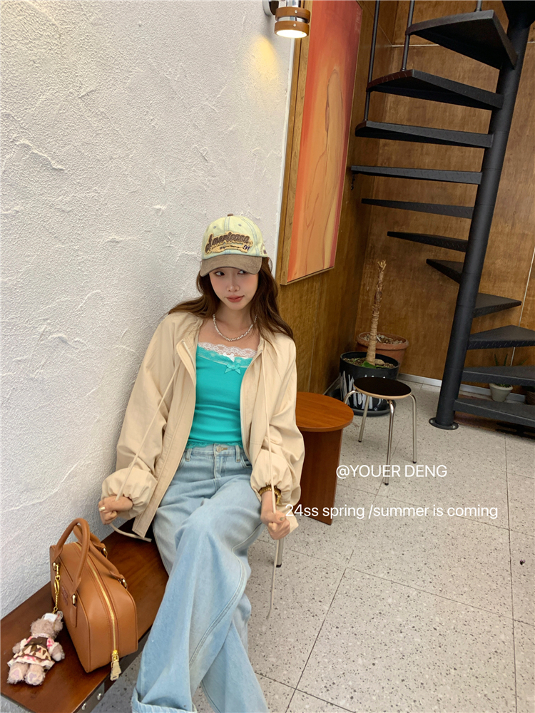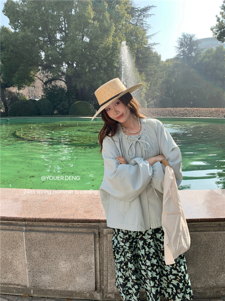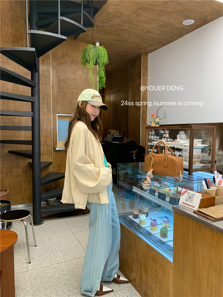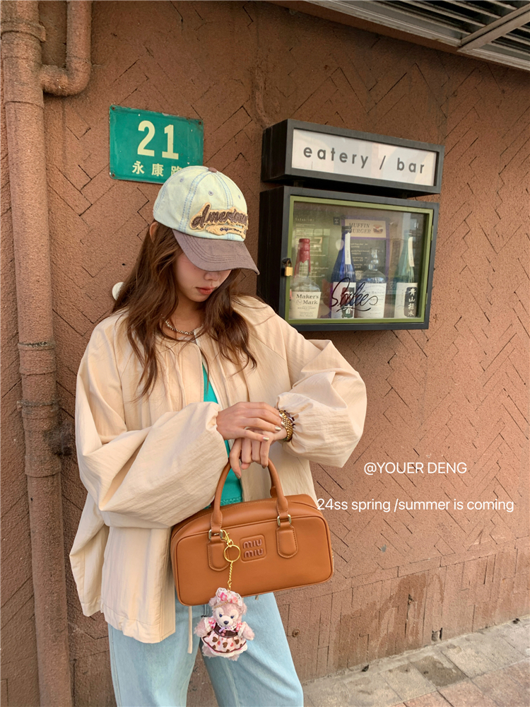 *o-ha-you*【FLKDYA001】春季復古法式蝴蝶結繫帶圓領外套插肩袖拉鍊寬鬆棒球夾克-2色
