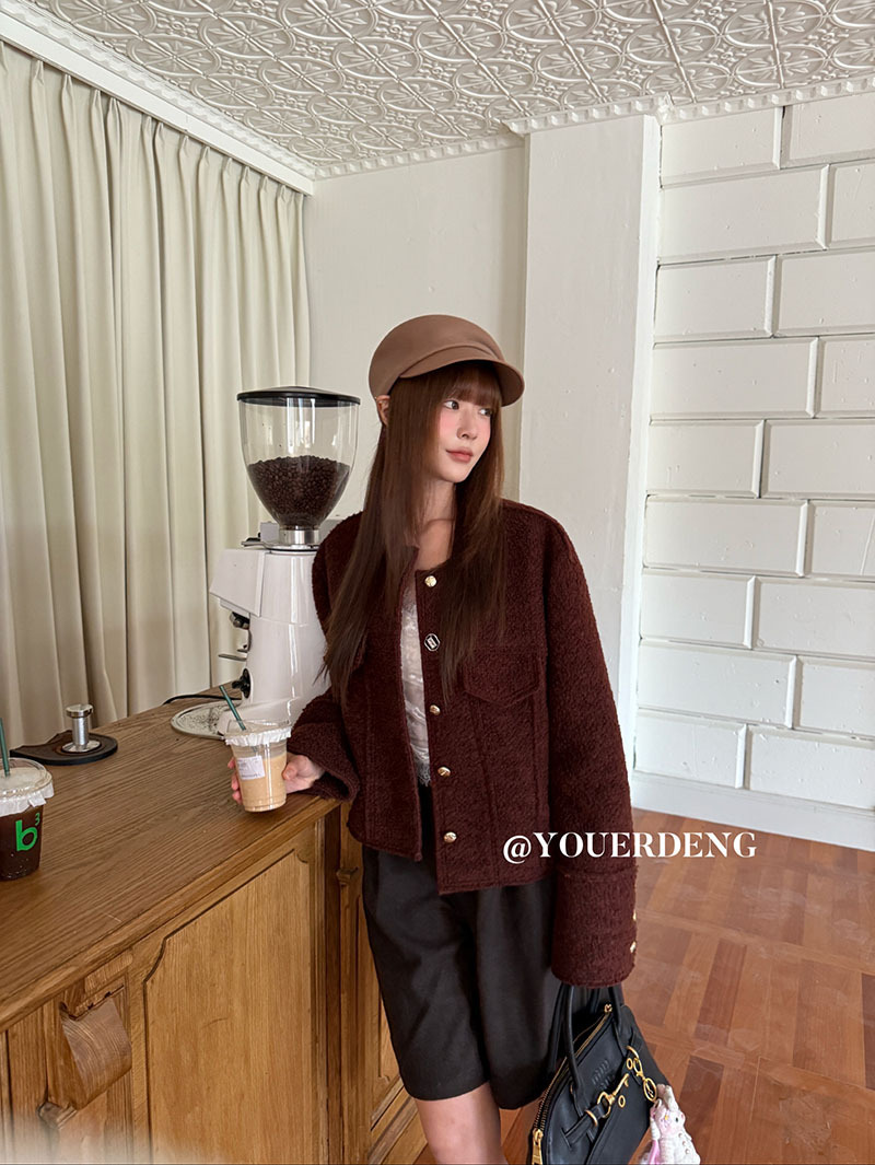 *o-ha-you*【FLKDYB007】港島日落外套羊毛呢上衣加厚機車帥氣優雅小眾設計感冬季