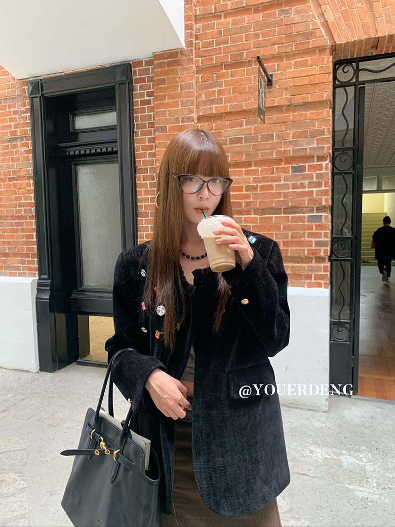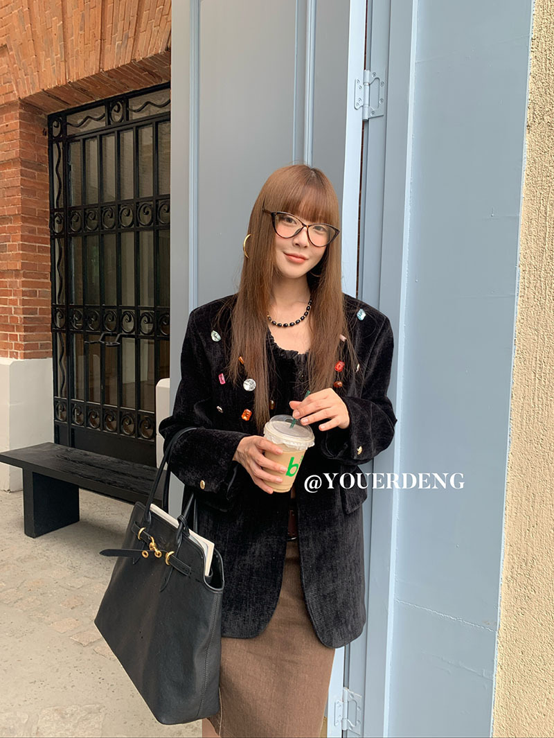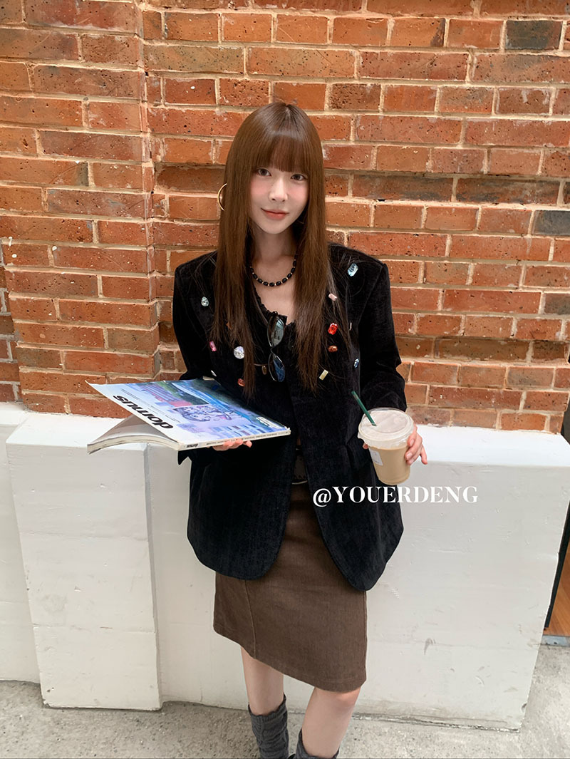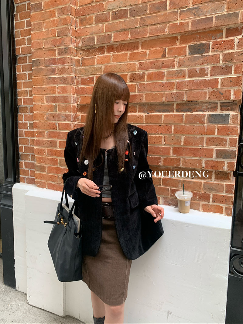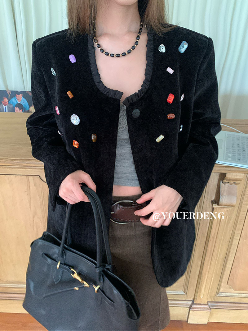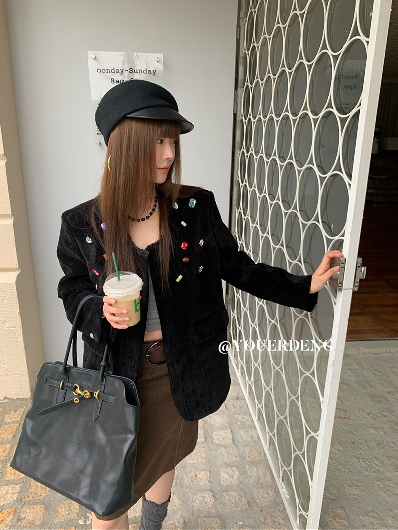 *o-ha-you*【FLKDYB009】2024冬季黑桃A外套毛呢加厚上衣優雅小眾設計感釘水鑽白鴨絨西裝廓形顯瘦保暖西服大衣