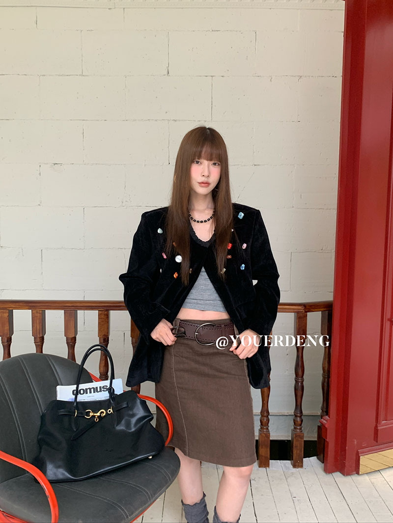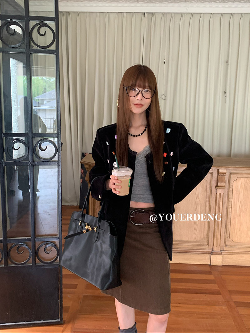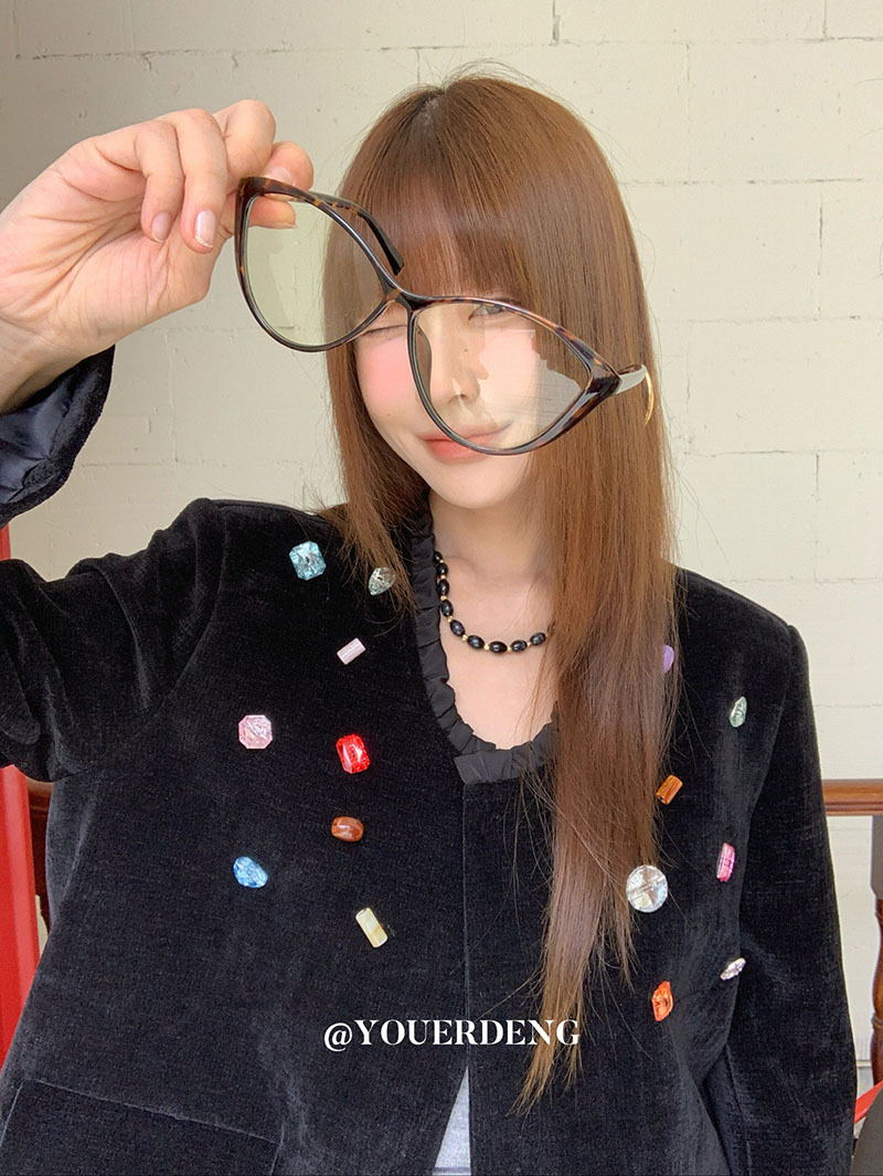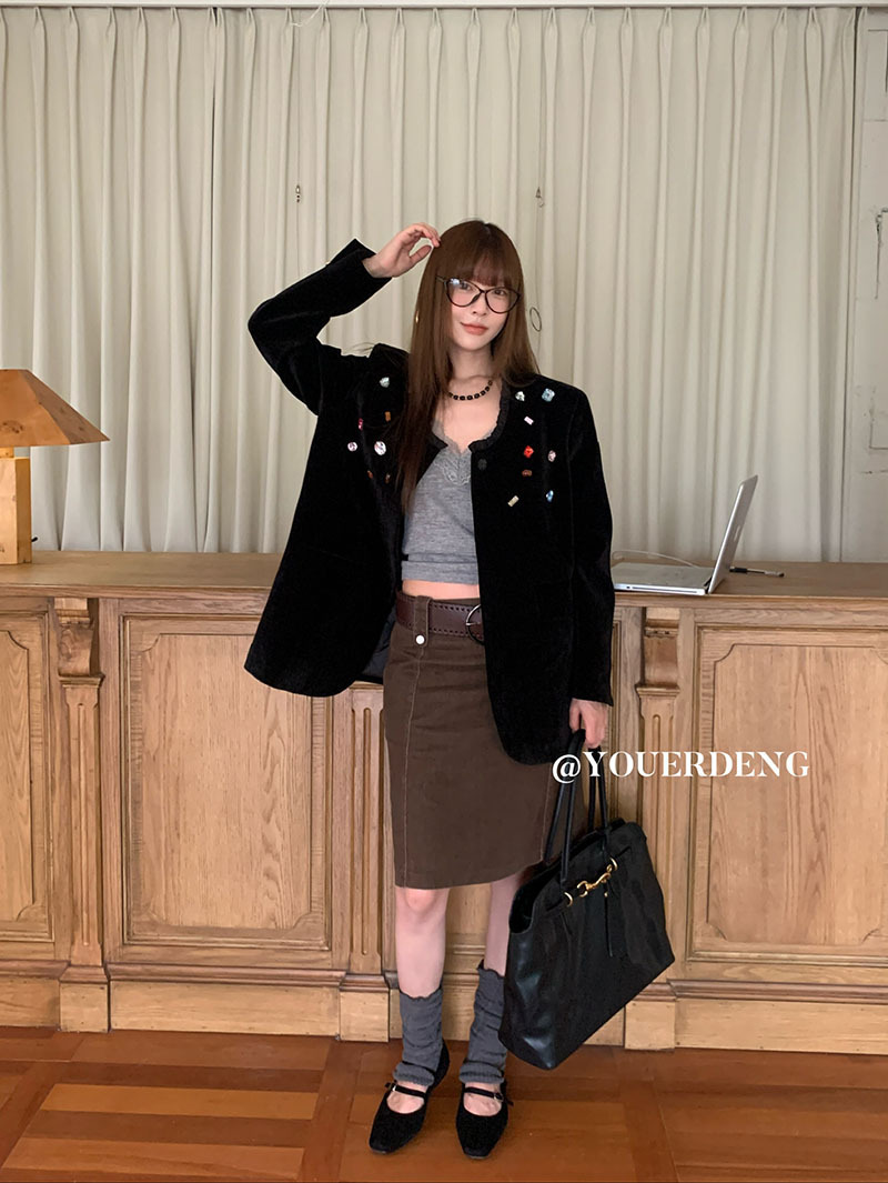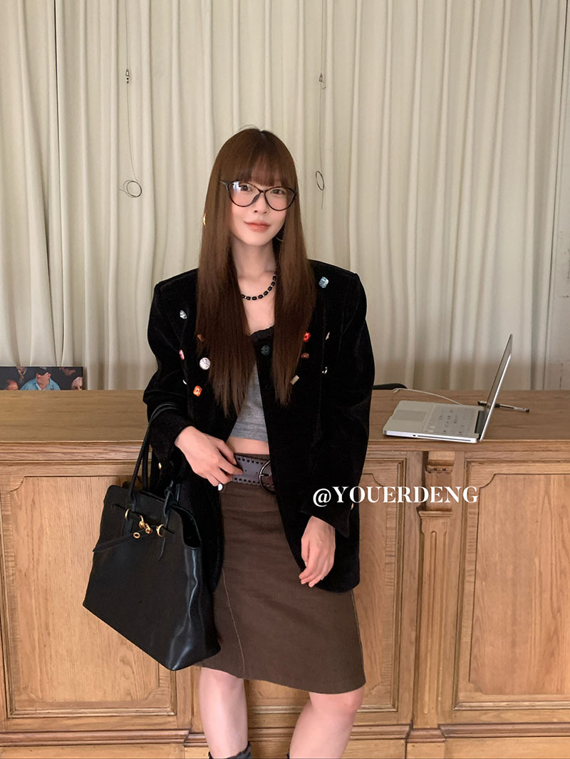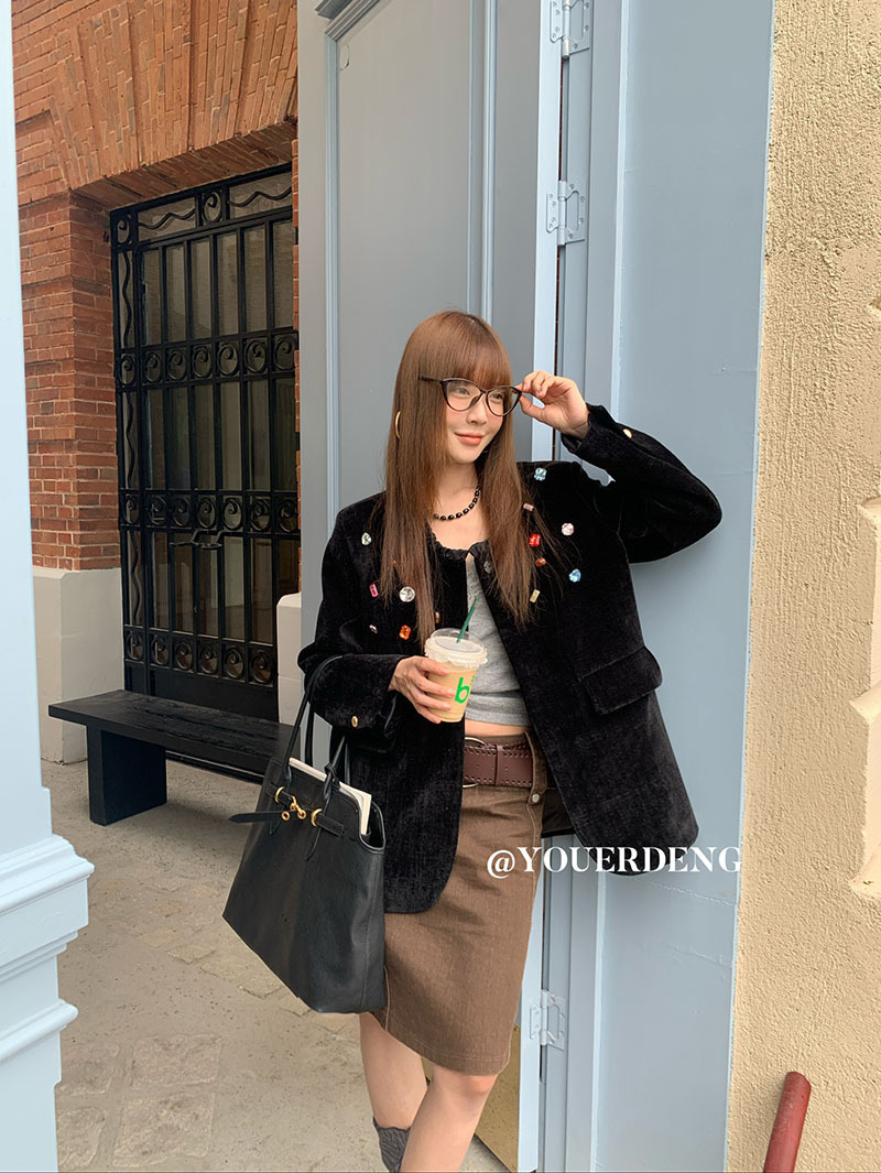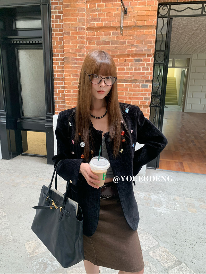 *o-ha-you*【FLKDYB009】2024冬季黑桃A外套毛呢加厚上衣優雅小眾設計感釘水鑽白鴨絨西裝廓形顯瘦保暖西服大衣