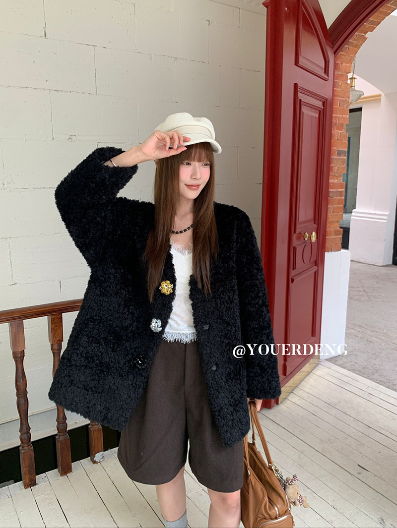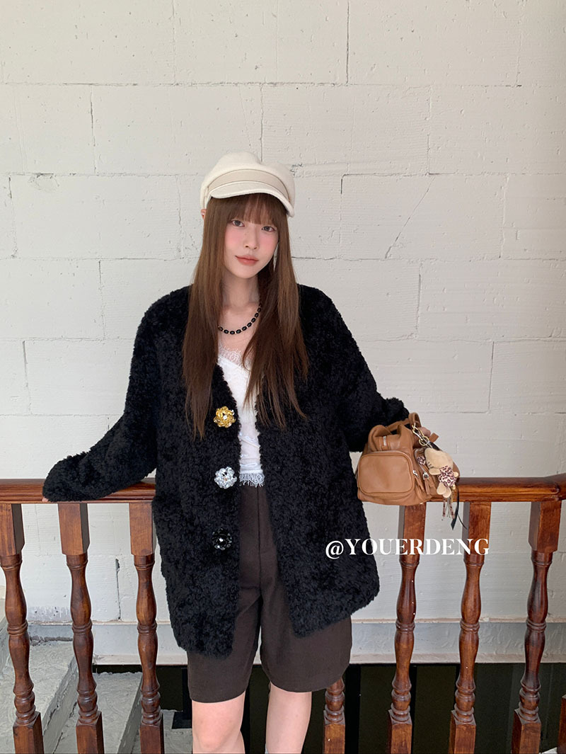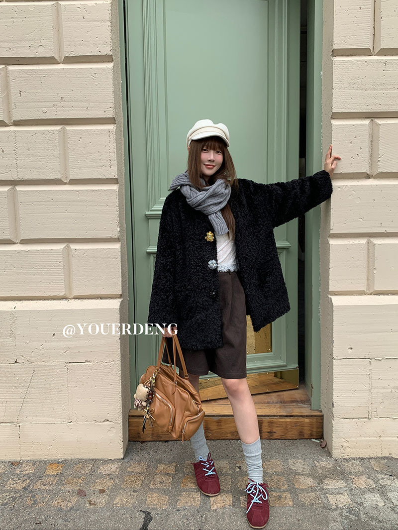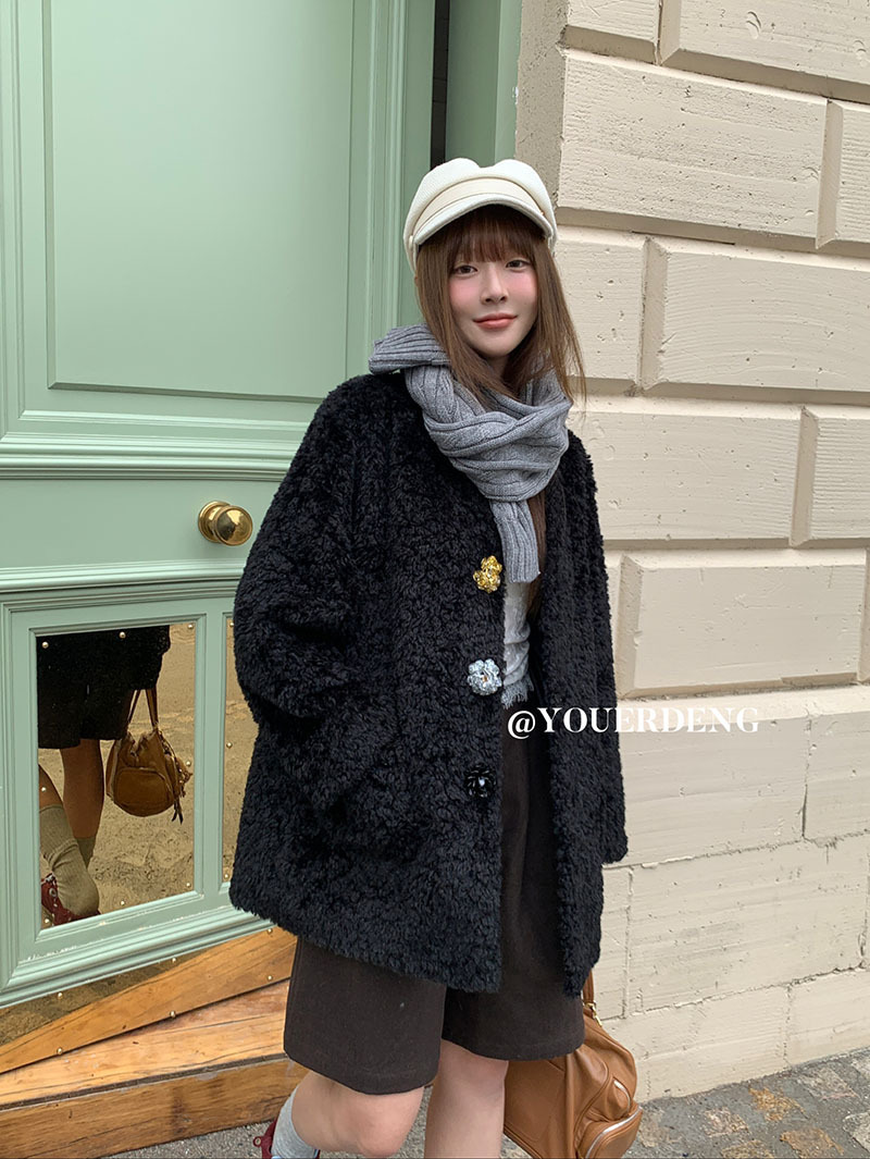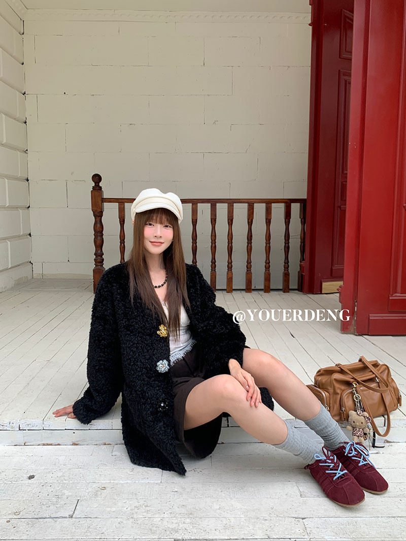 *o-ha-you*【FLKDYB100】黑色幽默毛絨外套加厚毛絨上衣暗黑網紅寬鬆大尺碼女裝冬季