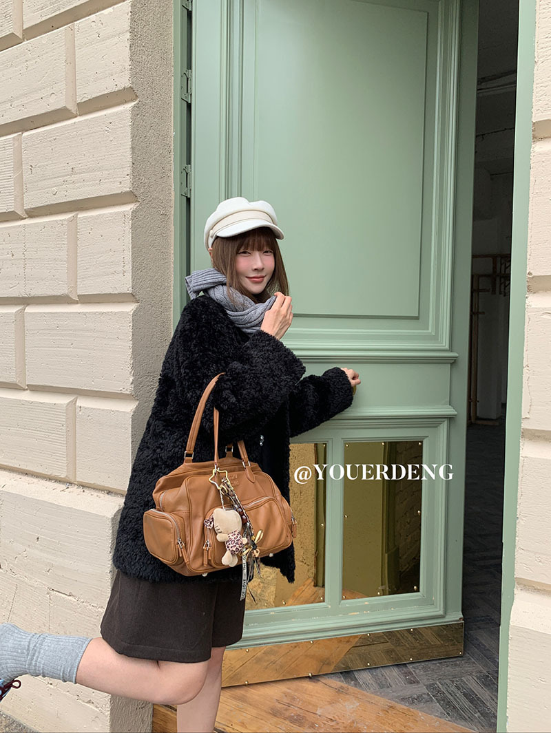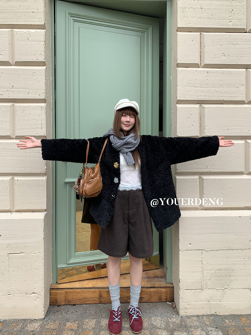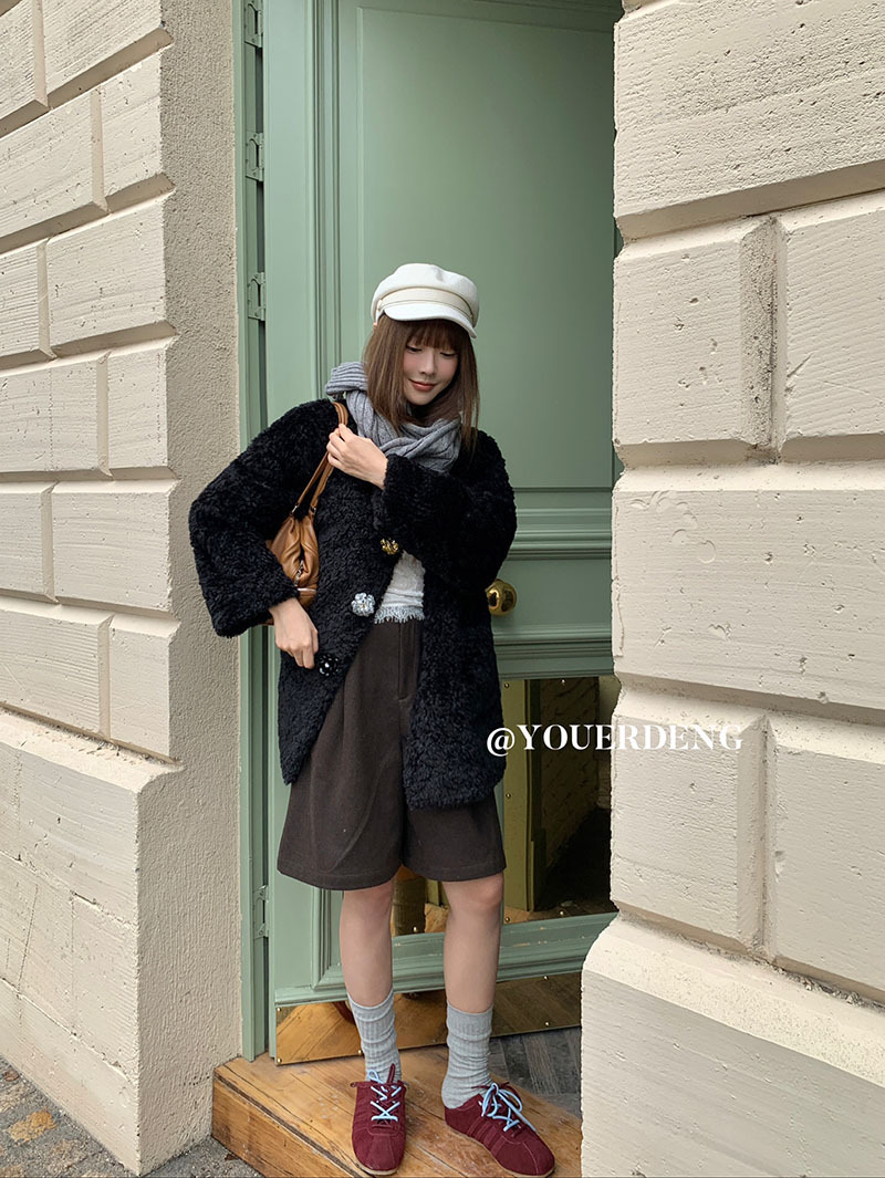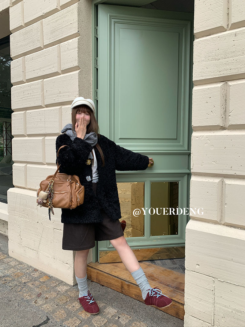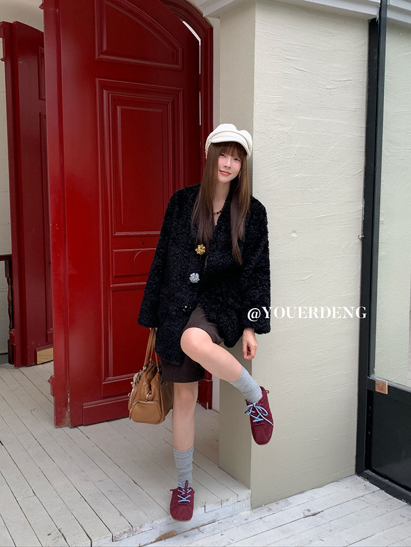 *o-ha-you*【FLKDYB100】黑色幽默毛絨外套加厚毛絨上衣暗黑網紅寬鬆大尺碼女裝冬季