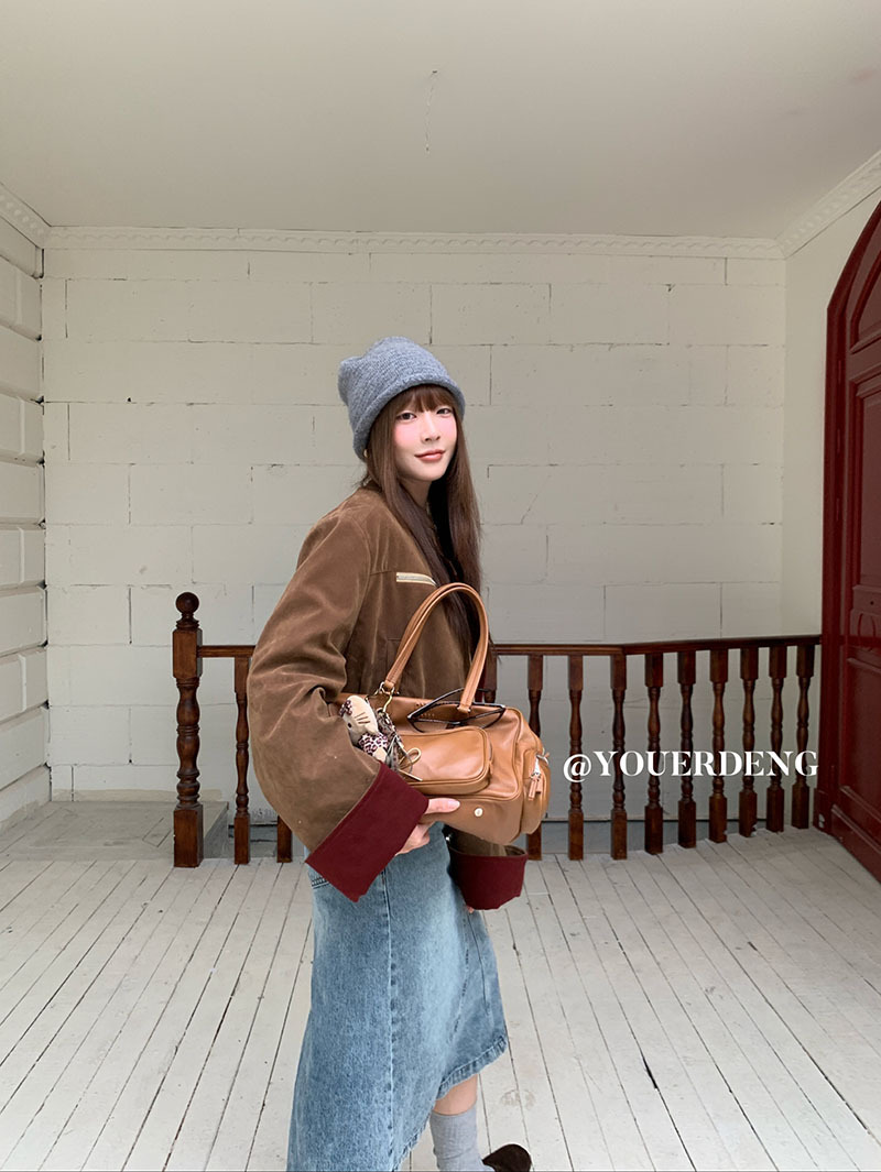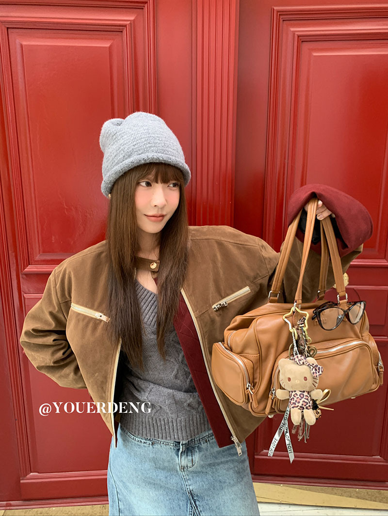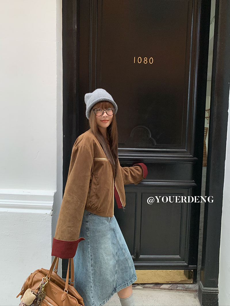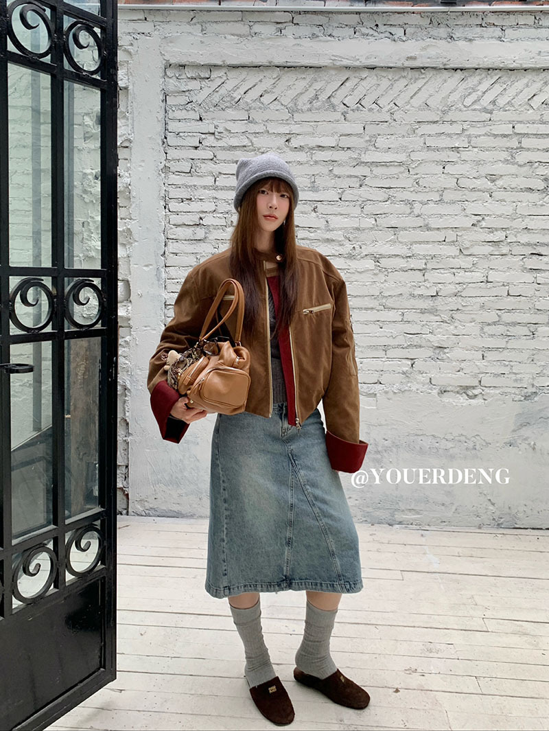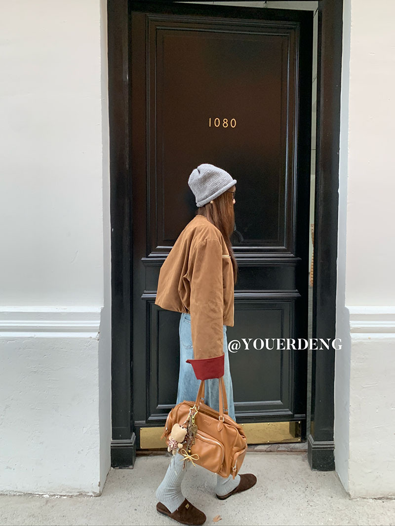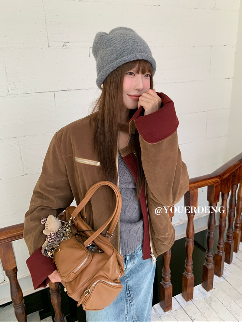 *o-ha-you*【FLKDYB205】摩登教主外套保暖街頭上衣加厚機車夾克飛行服潮冬季新款立領拼接咖色羽絨拉鍊棒球服外套