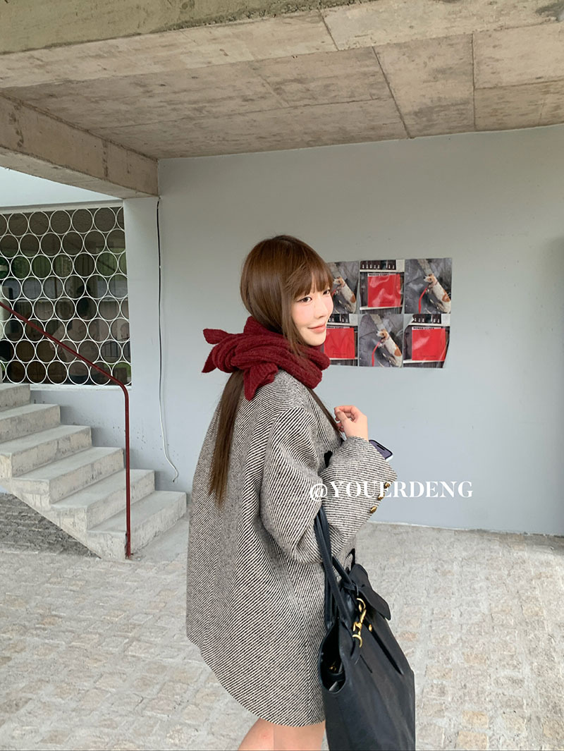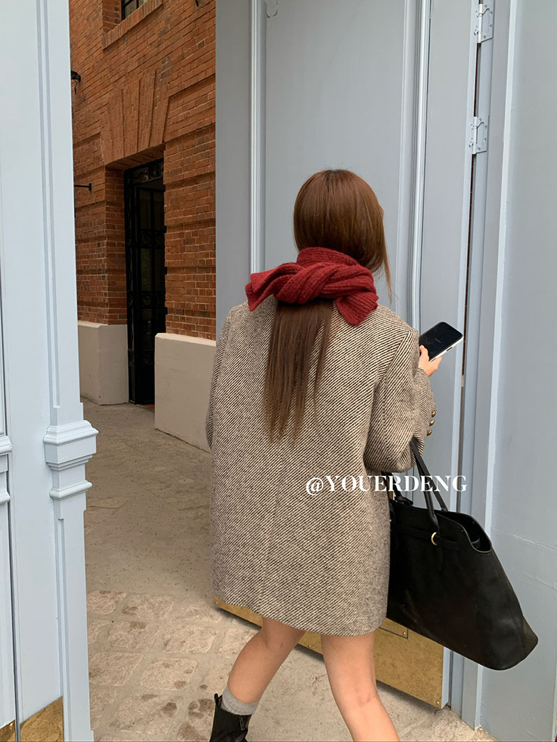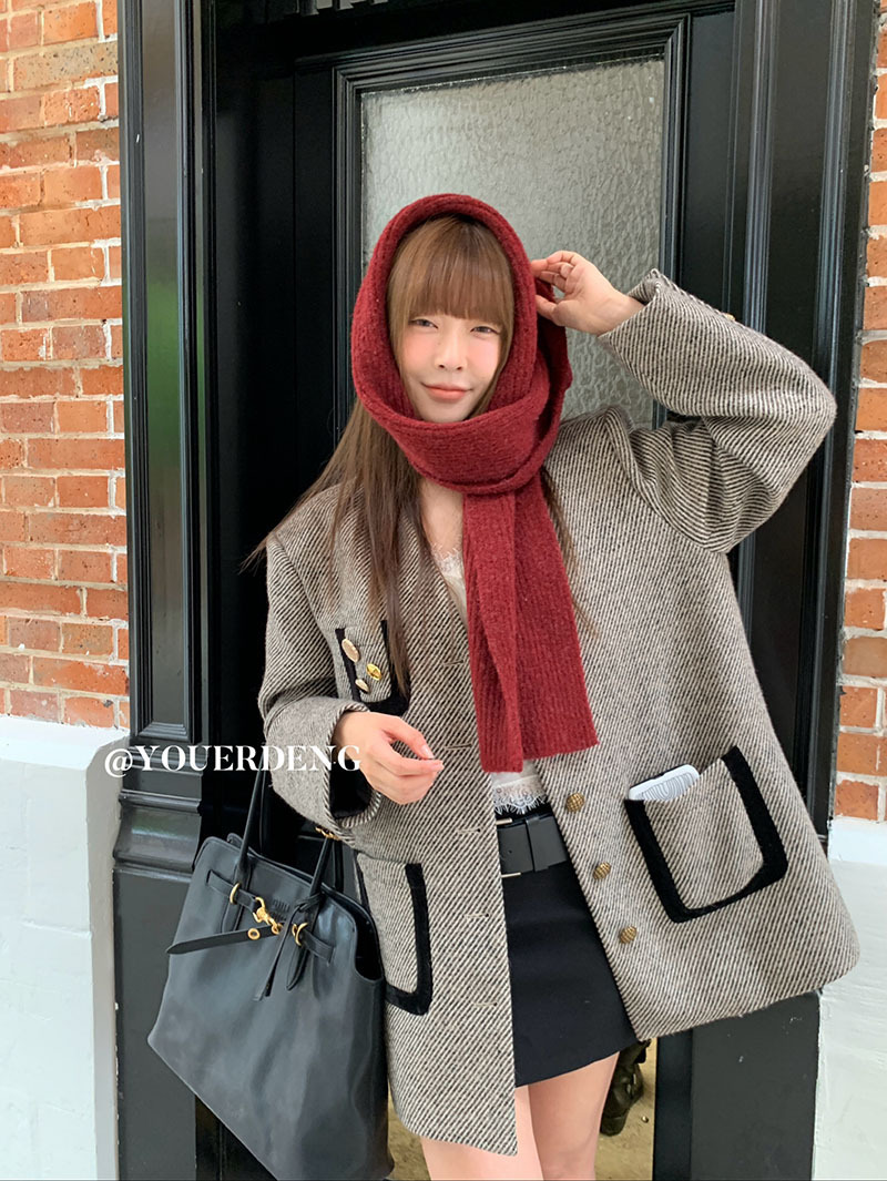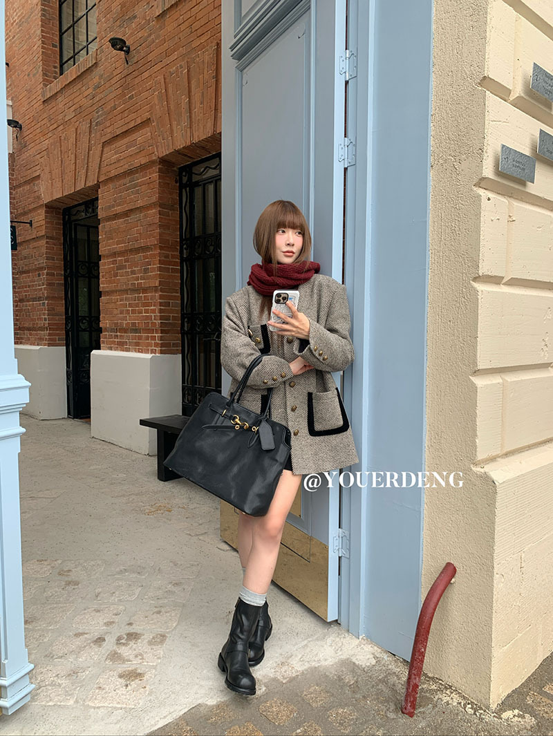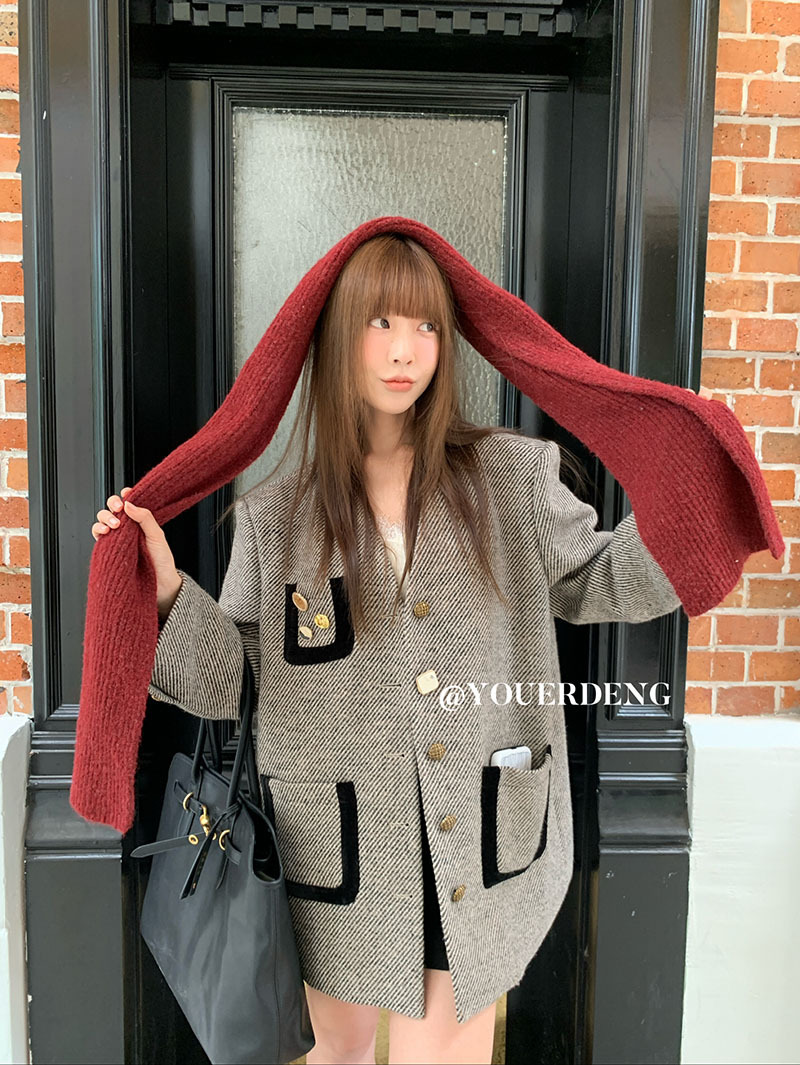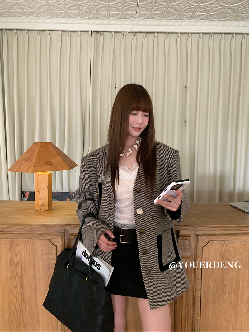 *o-ha-you*【FLKDYB207】V領工裝多口袋金屬扣毛呢廓形西裝外套冬小眾設計感寬鬆大衣邊城往事羊毛呢加厚千鳥格寬鬆優雅