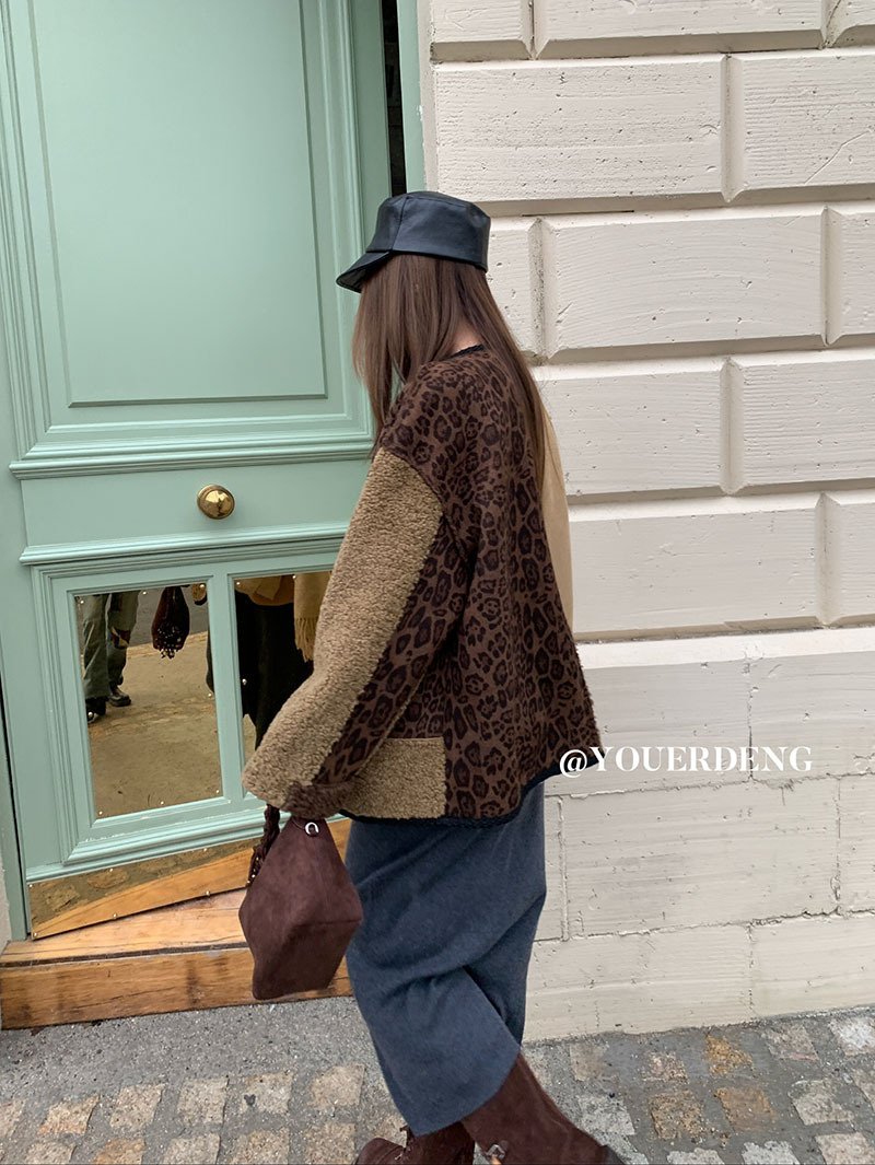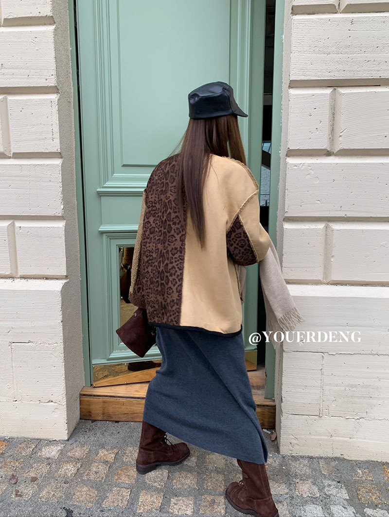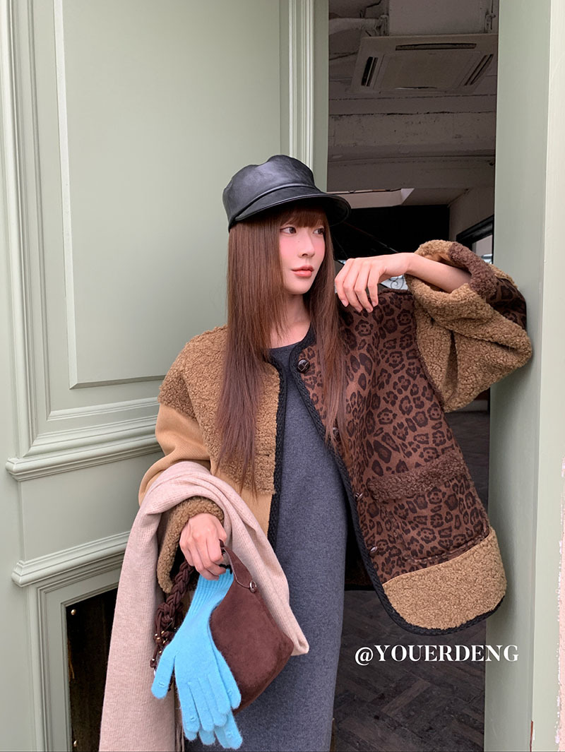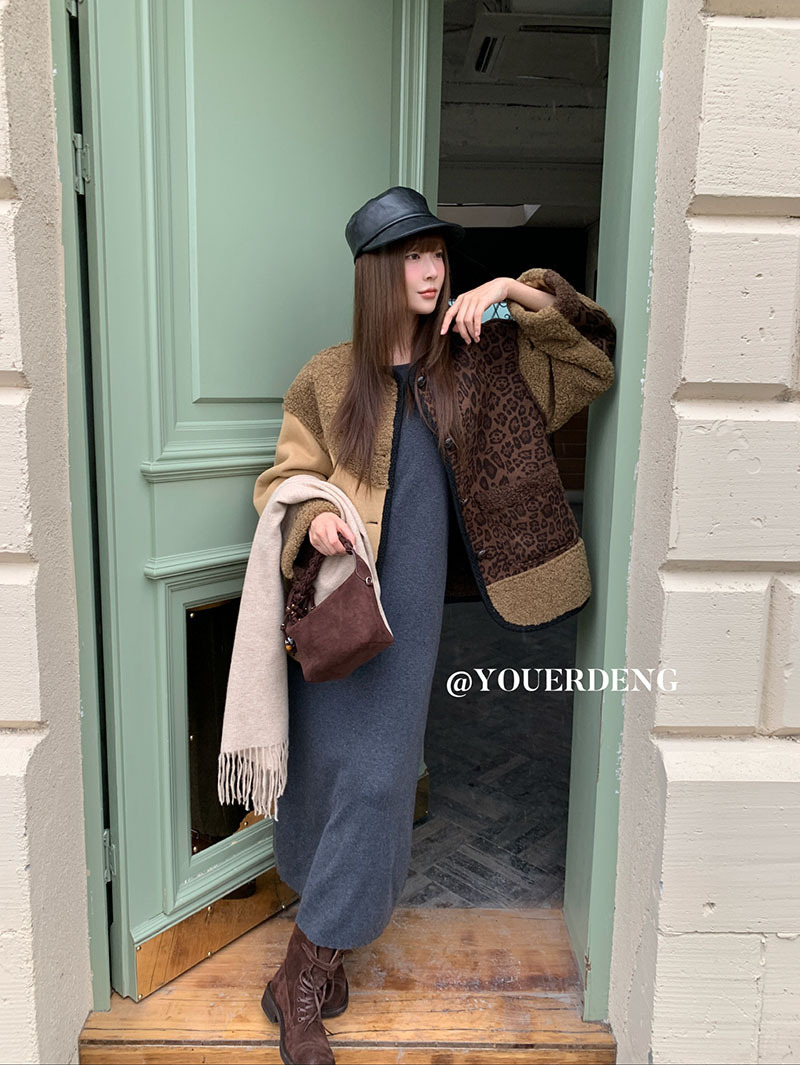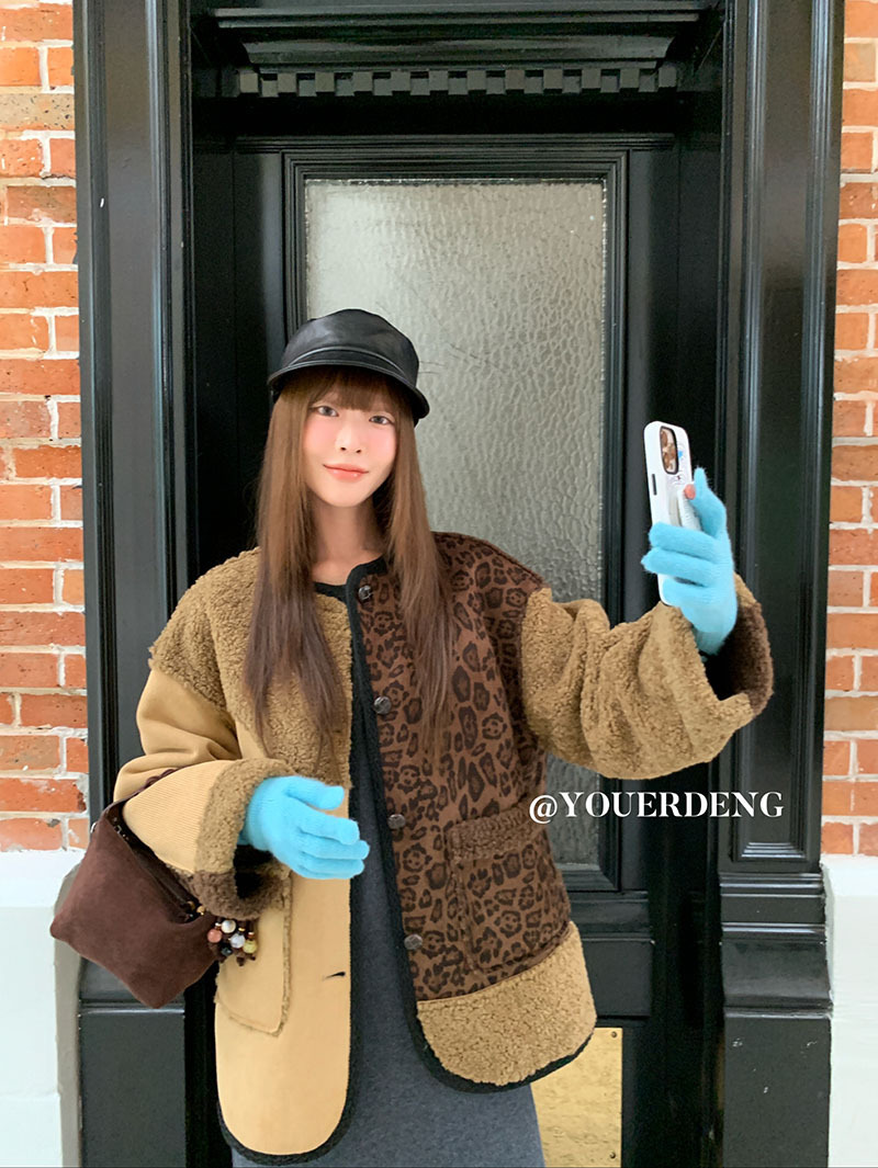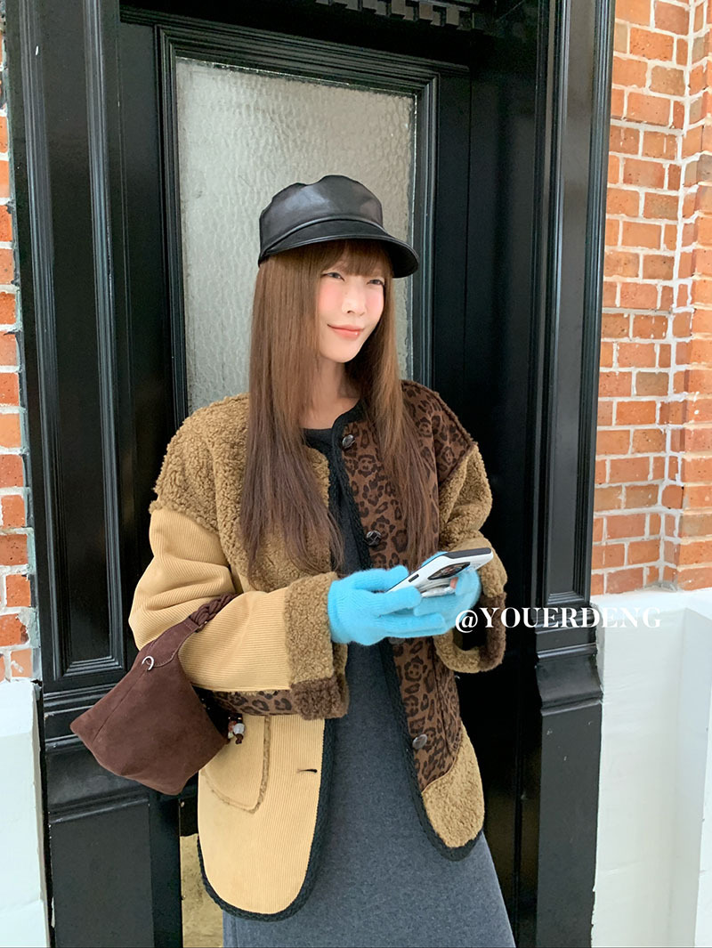 *o-ha-you*【FLKDYB309】冬日摩洛哥外套拼接撞色復古咖色毛呢上衣街頭厚實擋風