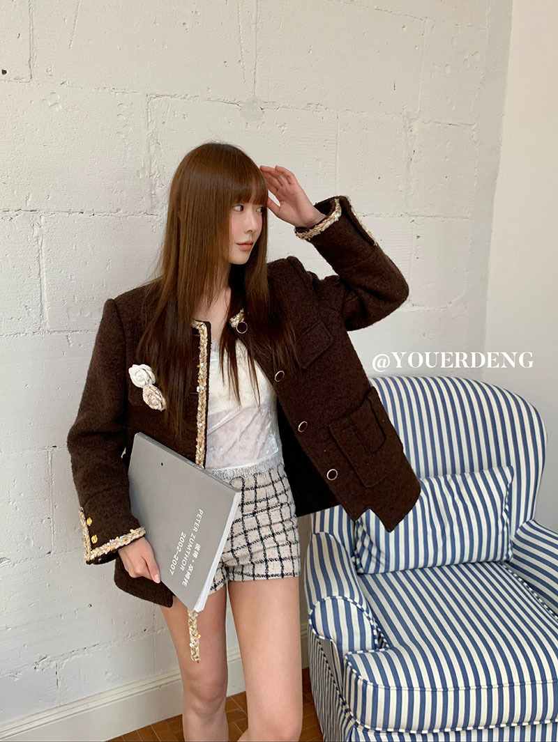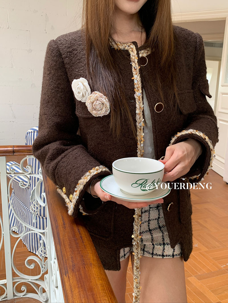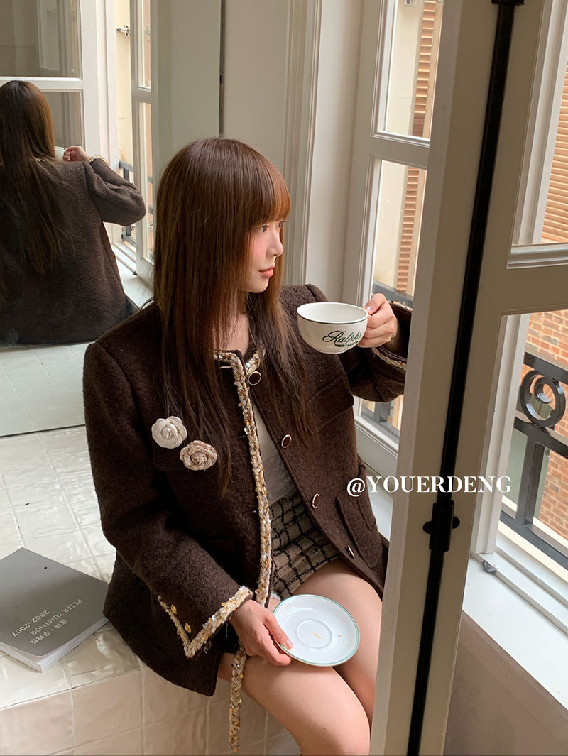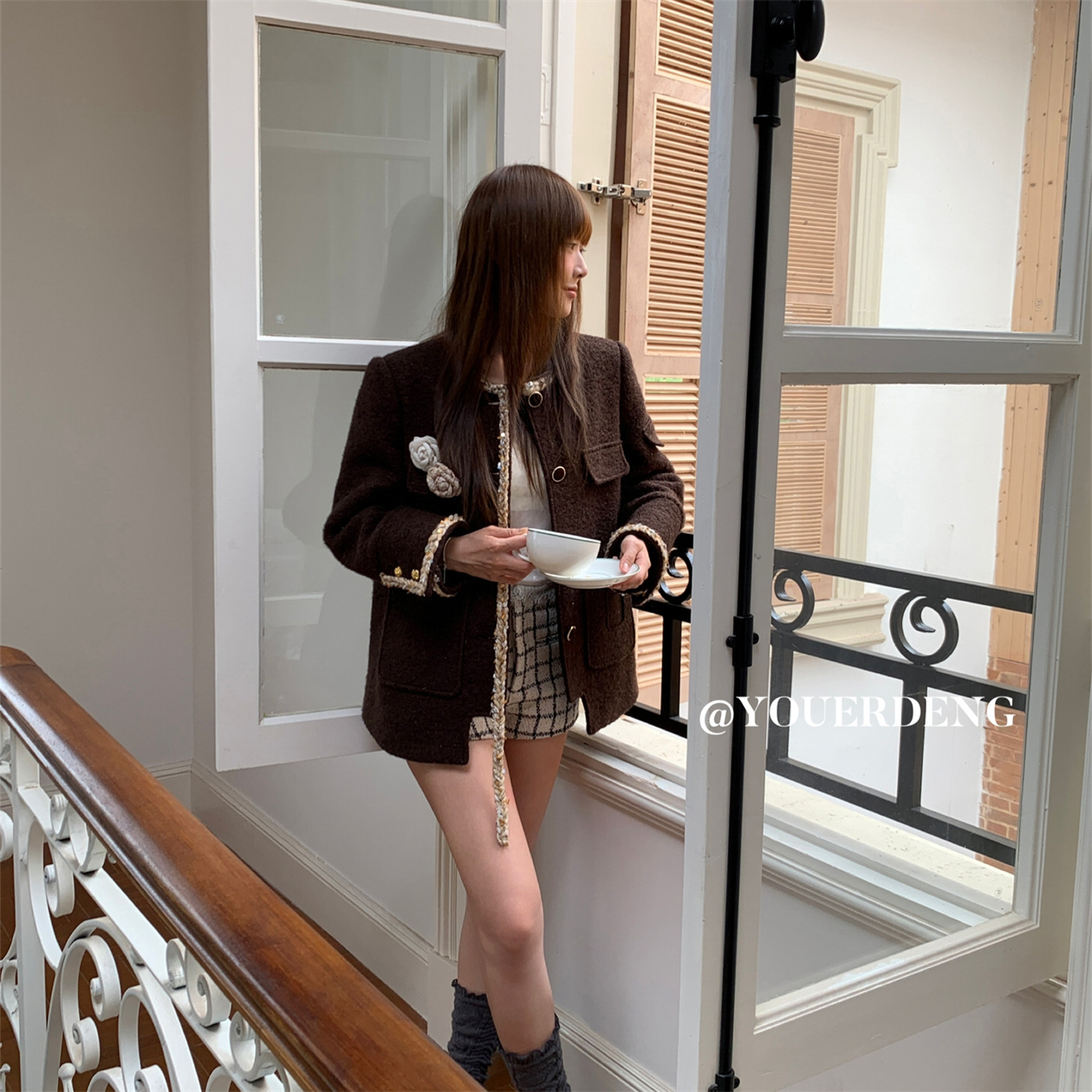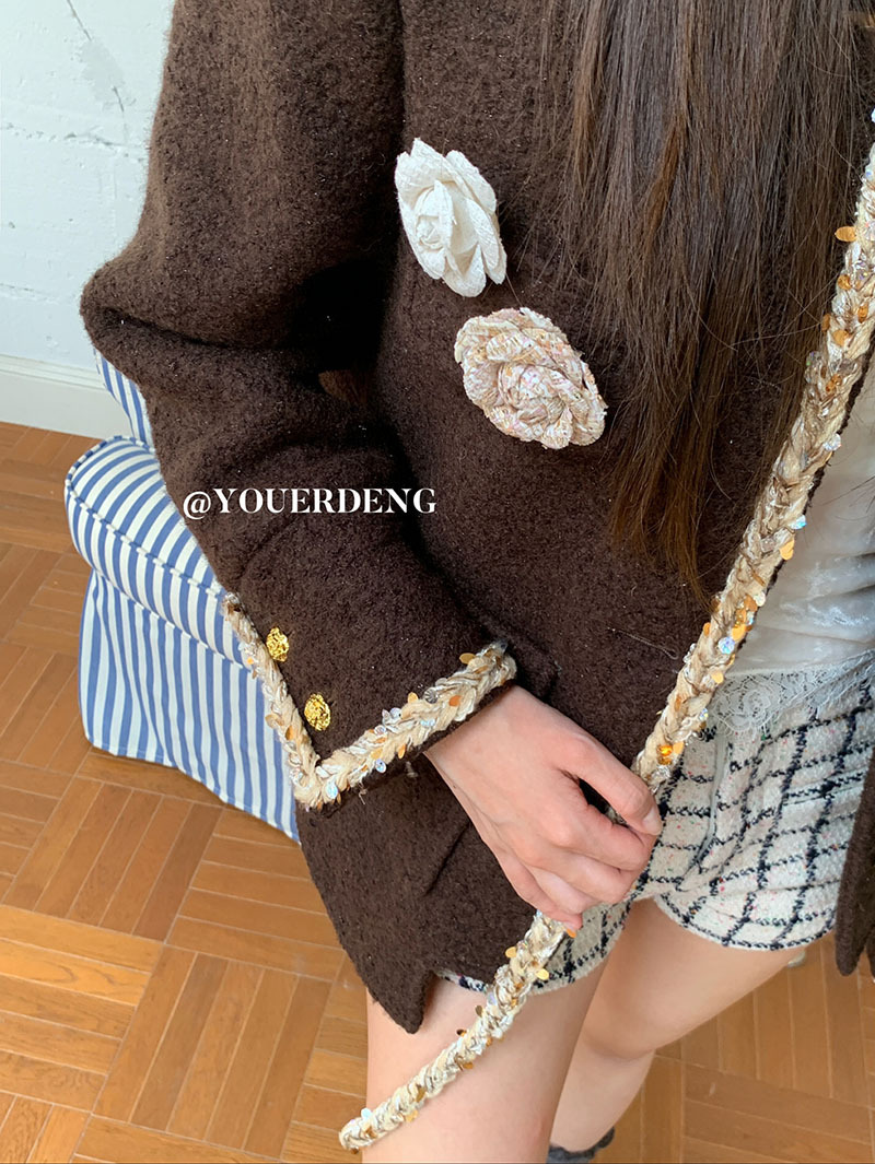 *o-ha-you*【FLKDYB507】蘇麗小姐羽絨外套羊毛呢上衣加厚鴨絨優雅小眾設計感冬季小香風立體花朵工裝多口袋保暖大衣