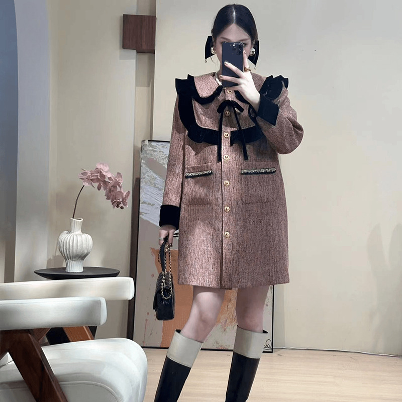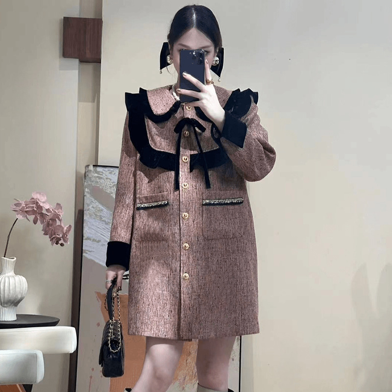 *o-ha-you*【FLKDYU1018】秋木松林連衣裙荷葉領單排扣襯衣裙短裙寬鬆秋季潮洋裝
