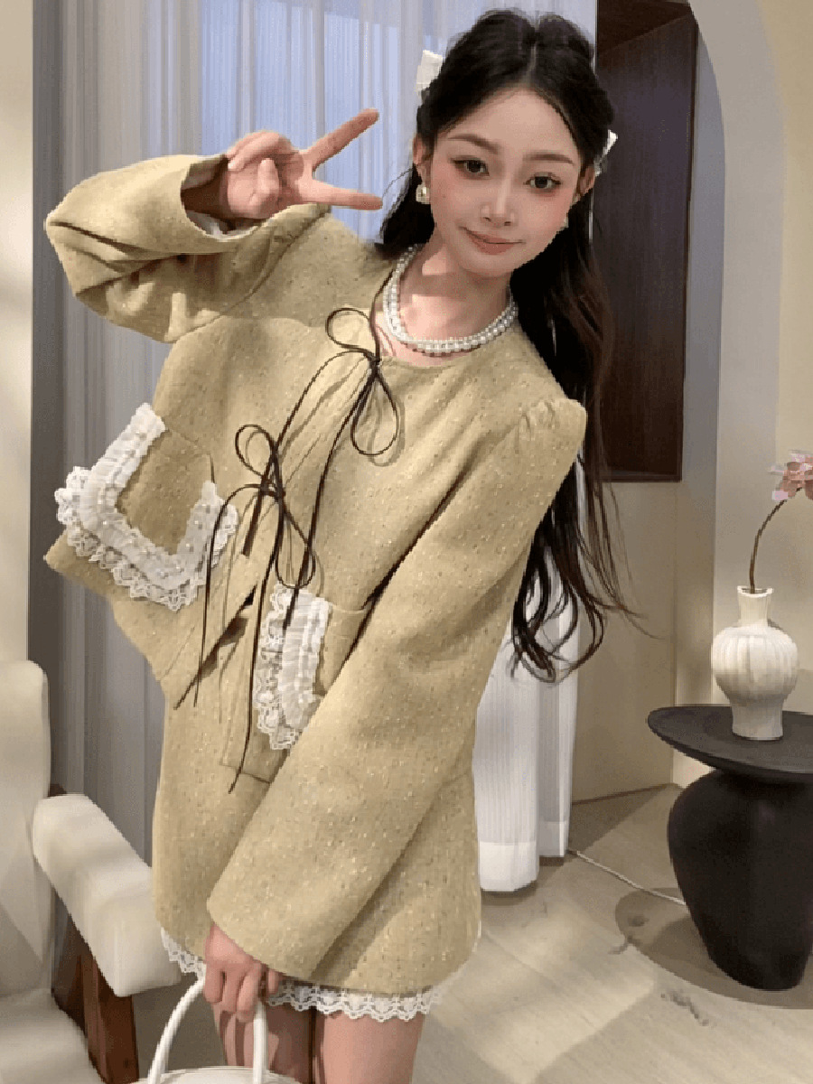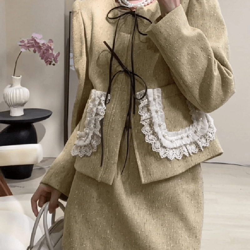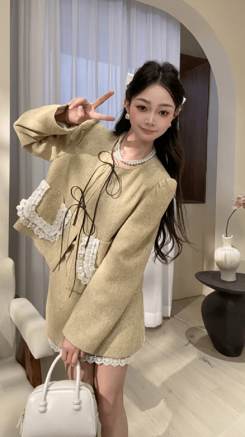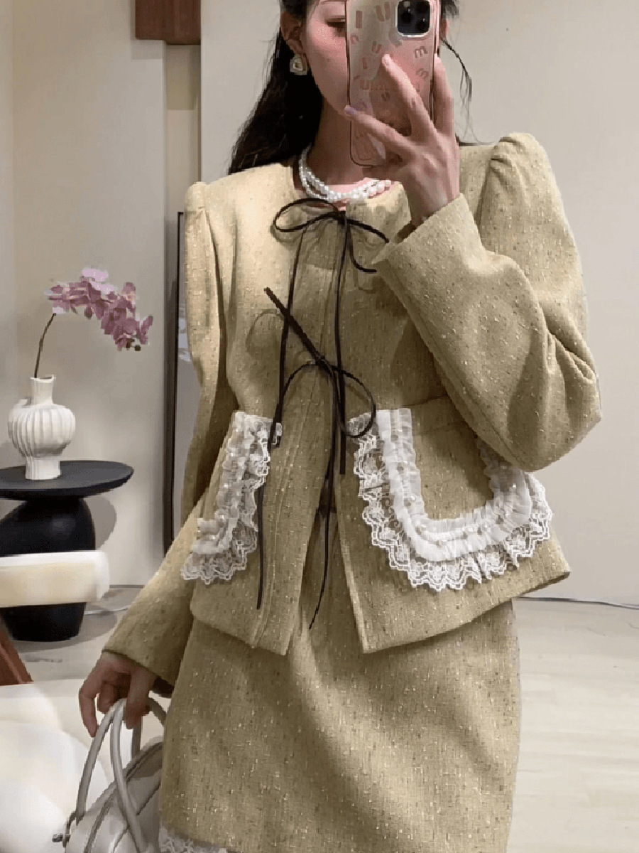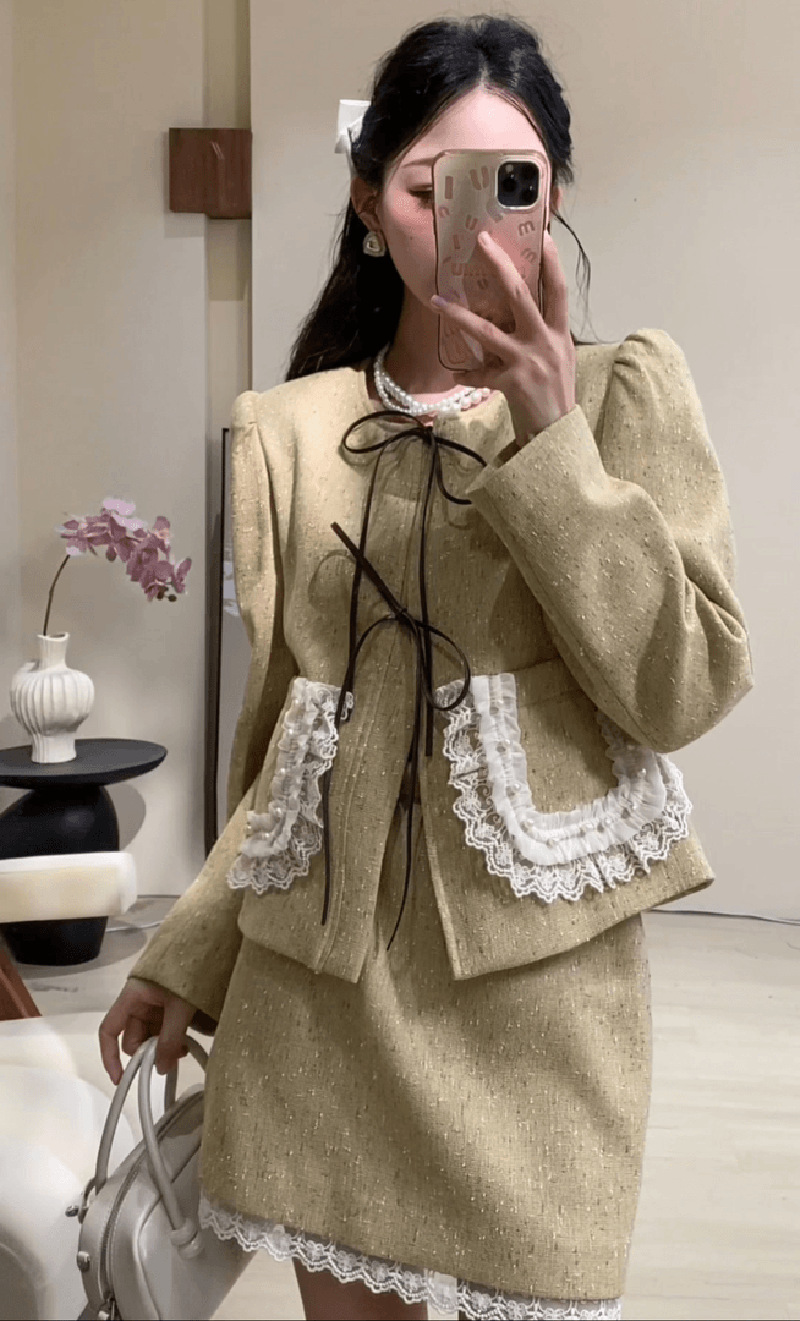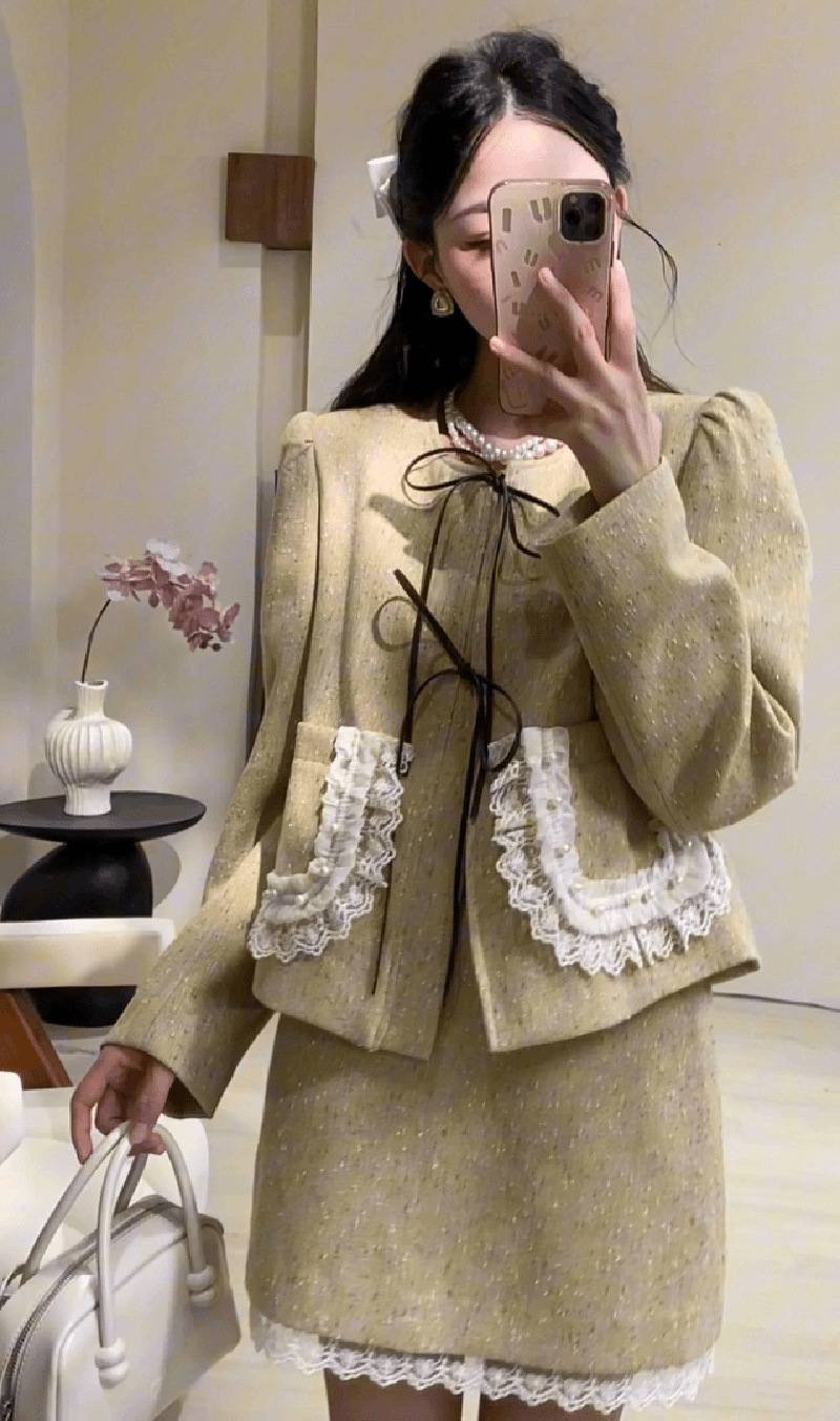 *o-ha-you*【FLKDYU1039】若夢套裝圓領小香風法式優雅半身裙兩件套秋季潮牌小眾
