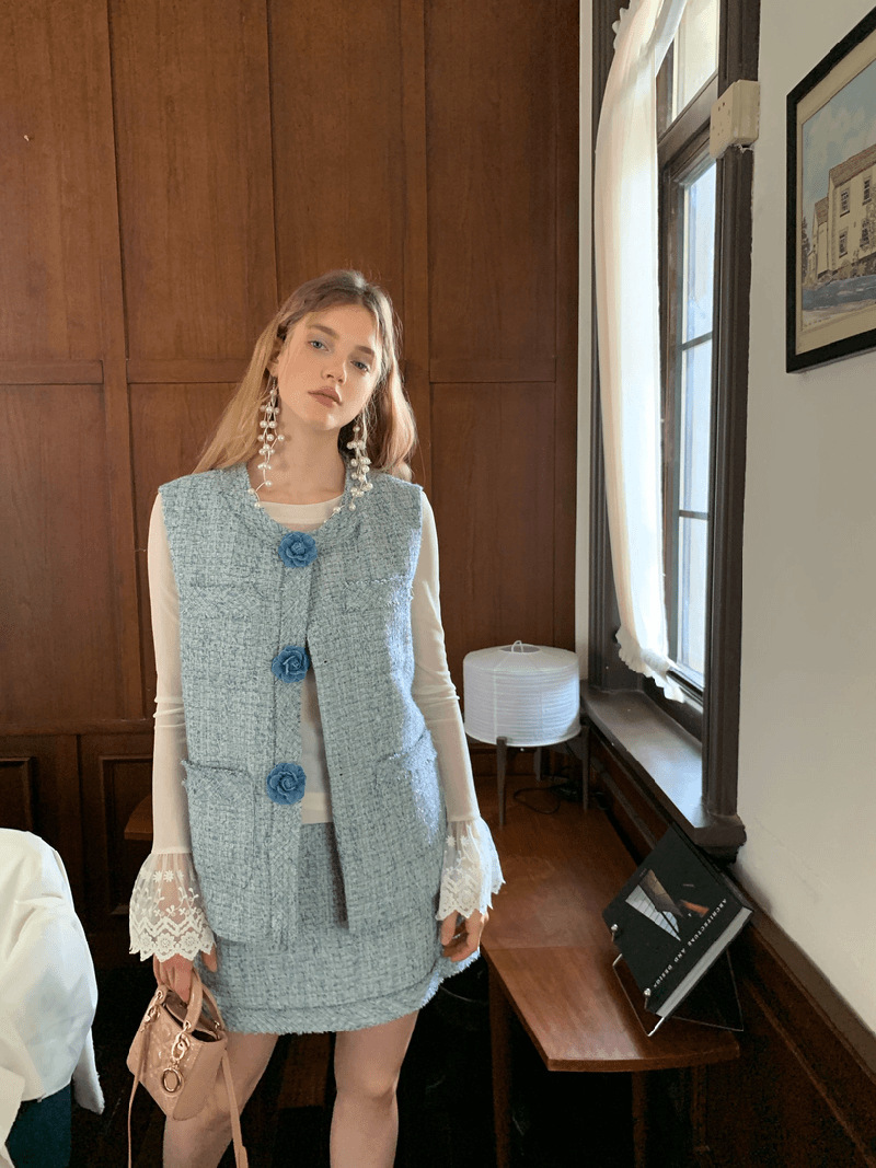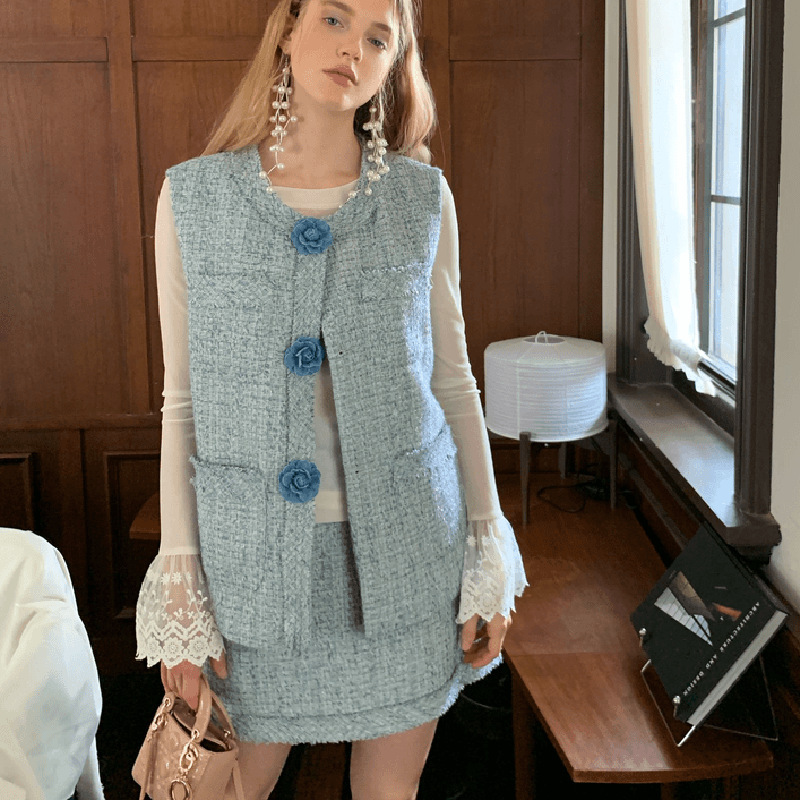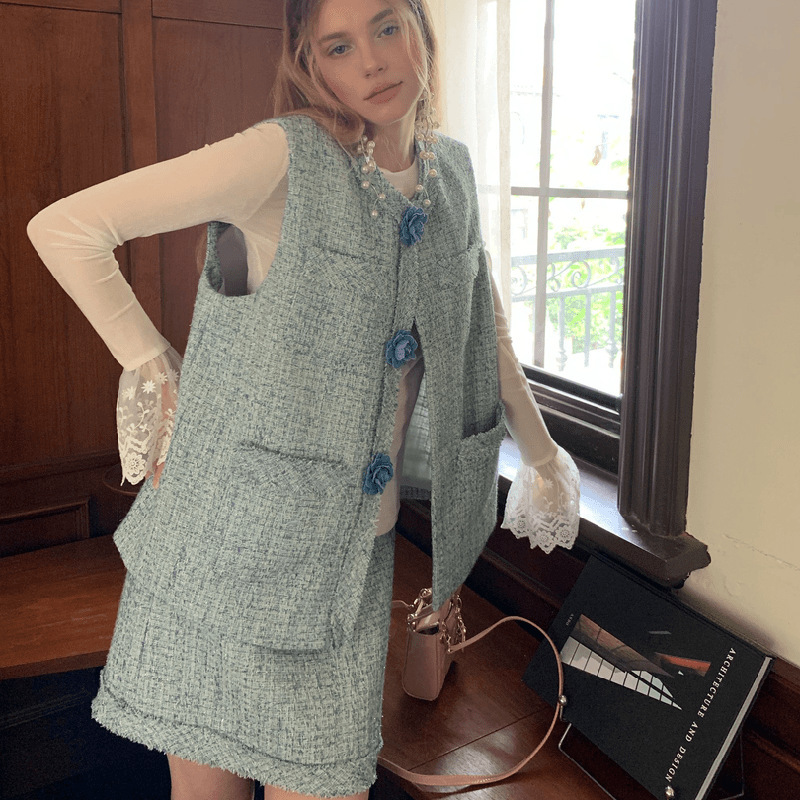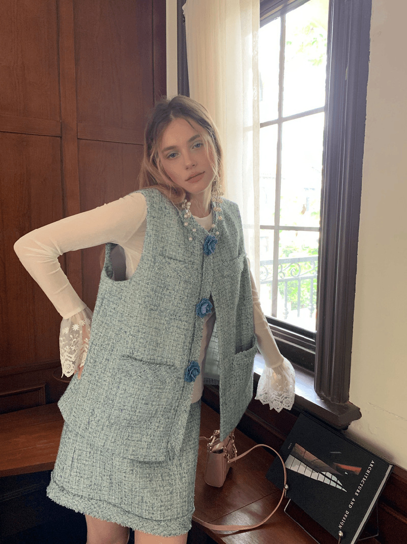 *o-ha-you*【FLKDYU303】舊時光套裝綠色花朵小香風優雅小眾設計氣質公主兩件套